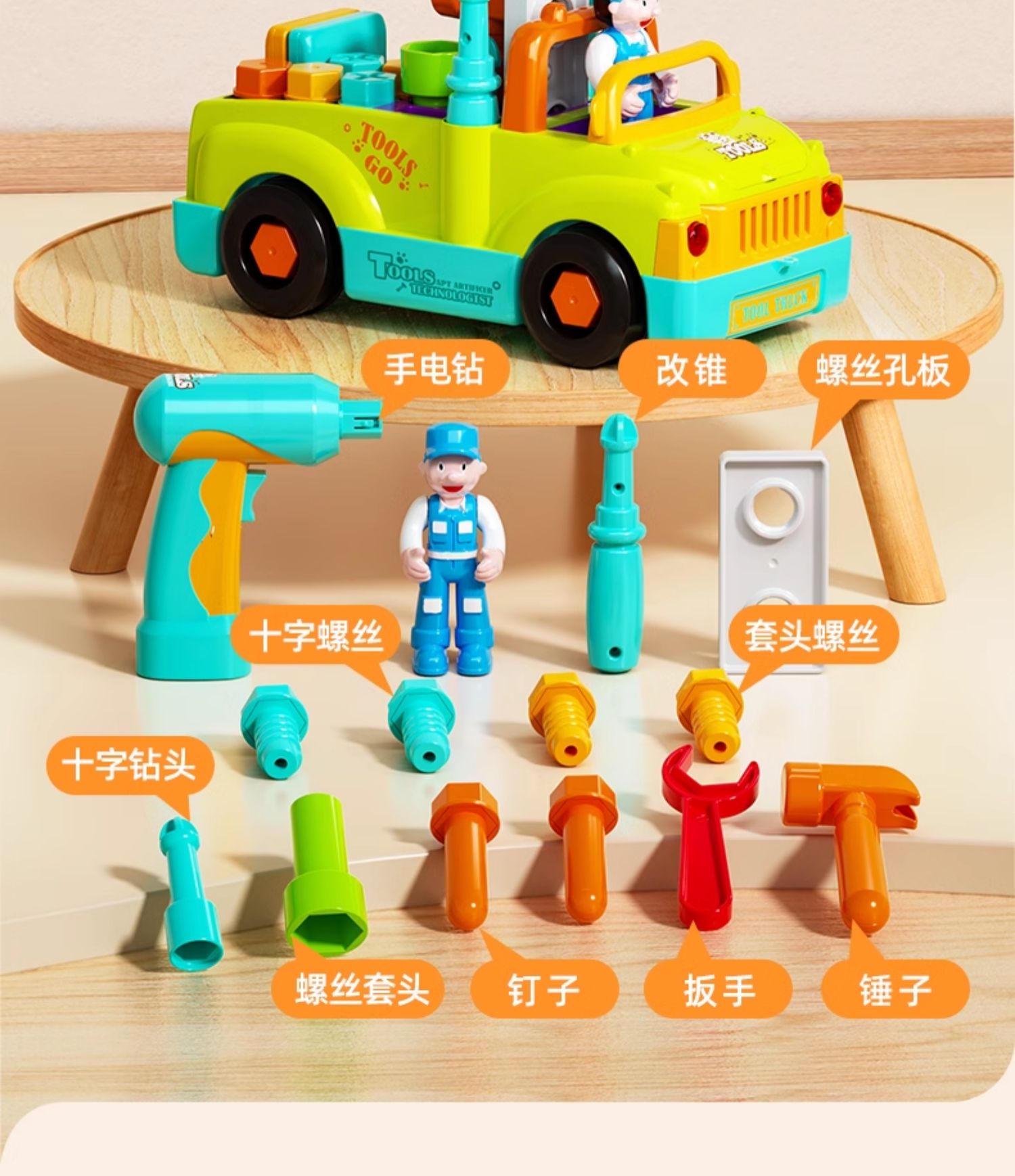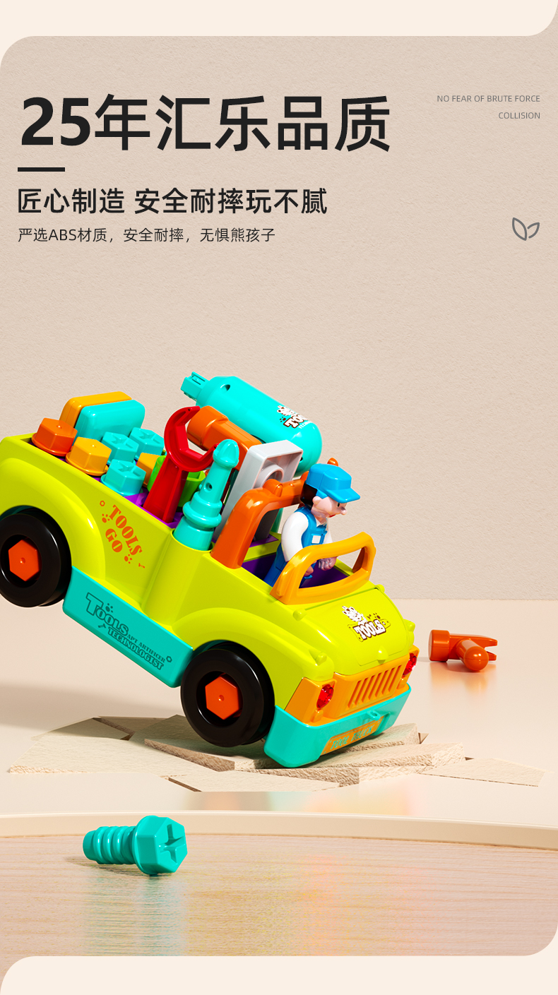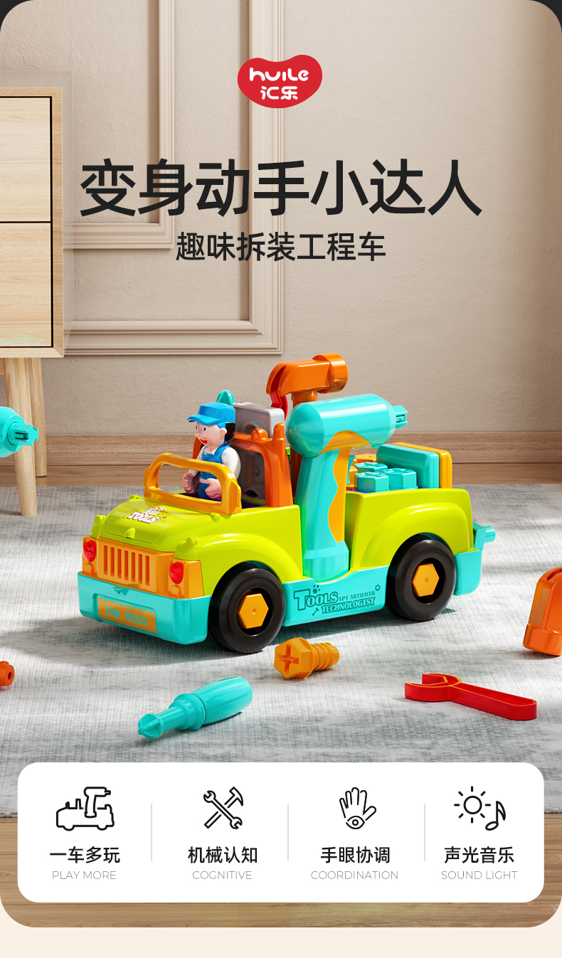 【汇乐早教拆装工具车】儿童机械启蒙新玩法 解锁卡车救护车消防车 搭配有趣声光 双向小电钻 亲子互动乐翻天!