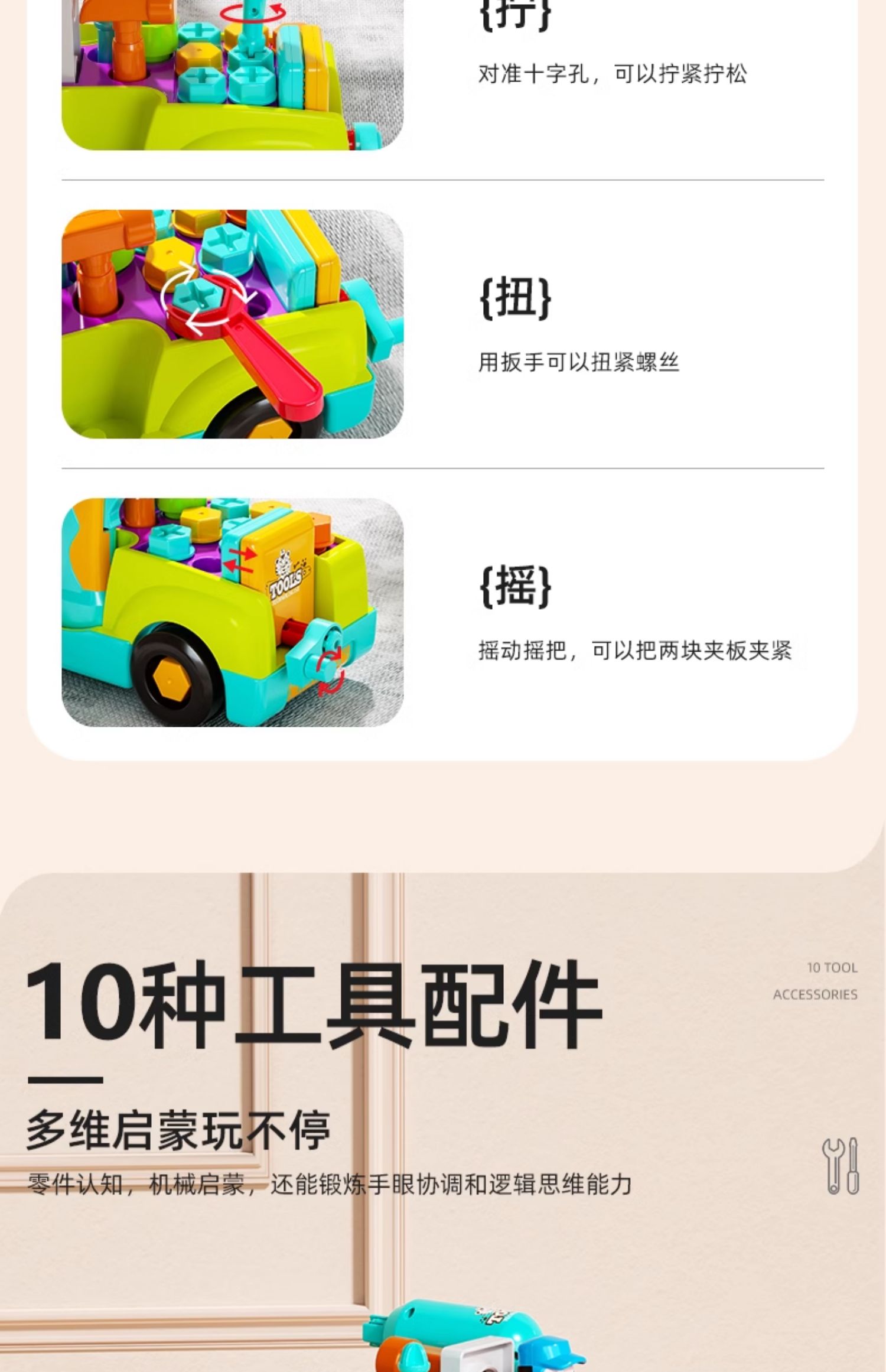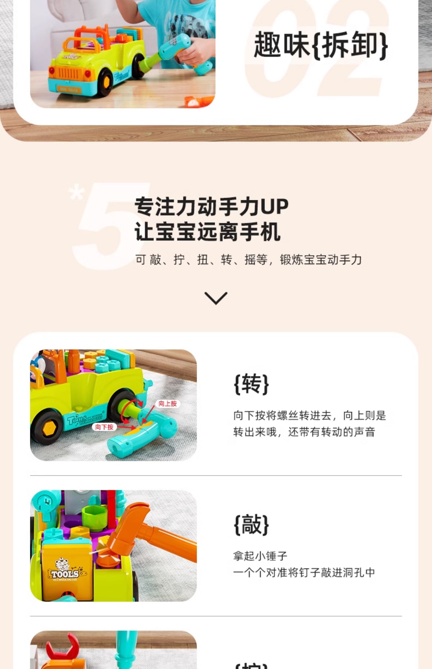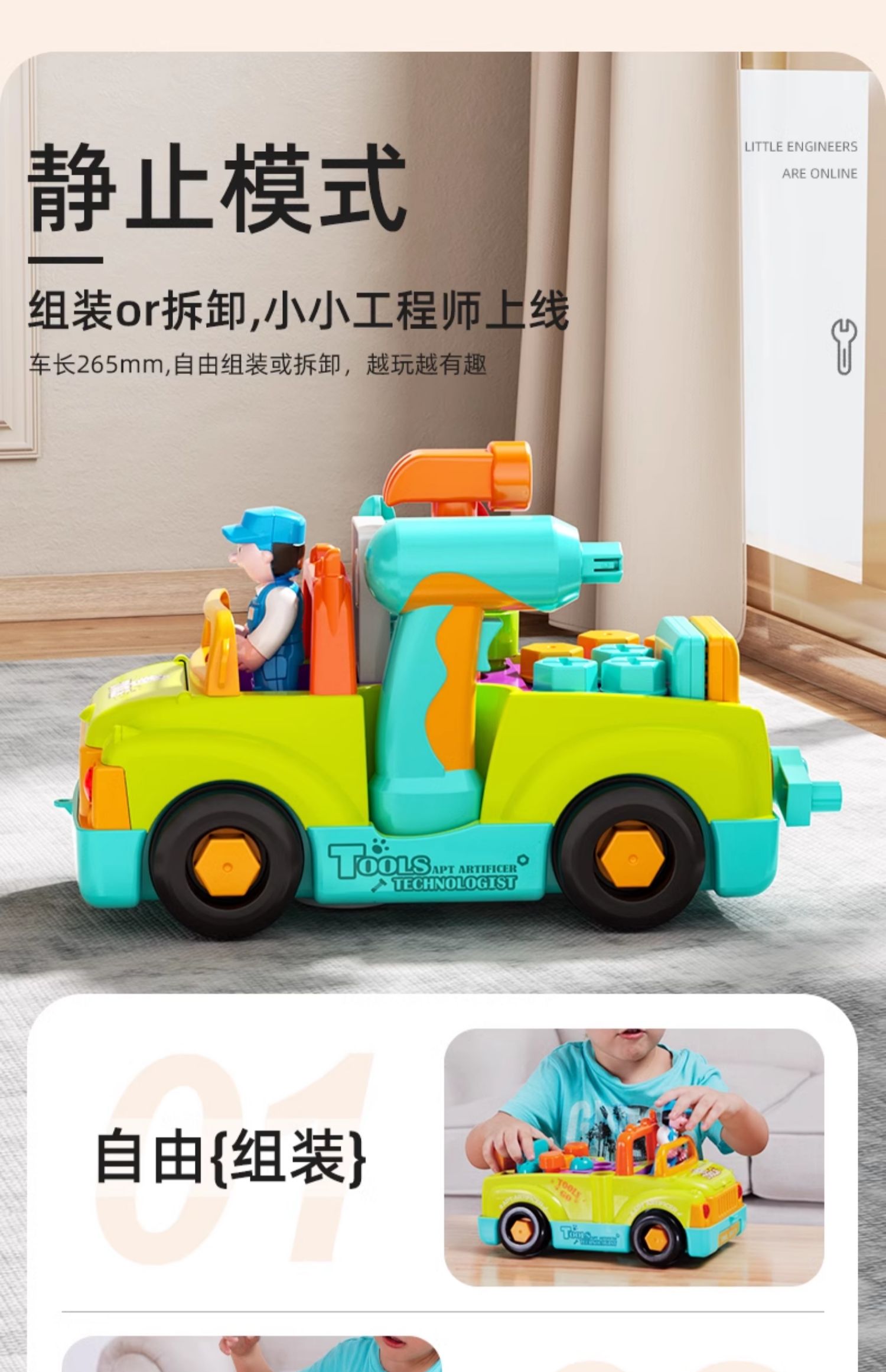 【汇乐早教拆装工具车】儿童机械启蒙新玩法 解锁卡车救护车消防车 搭配有趣声光 双向小电钻 亲子互动乐翻天!
