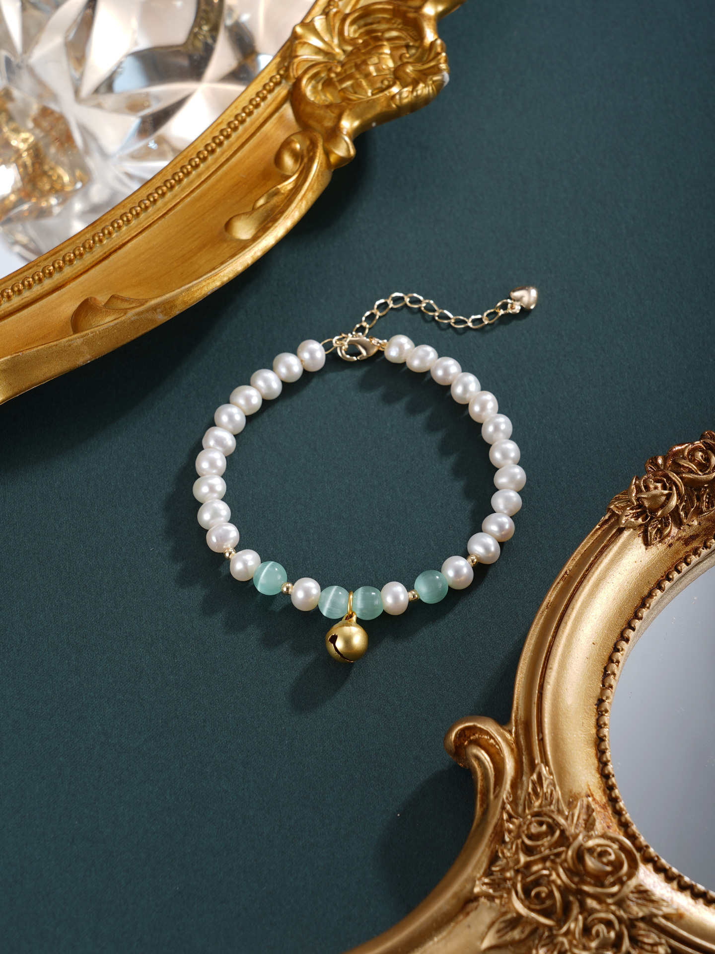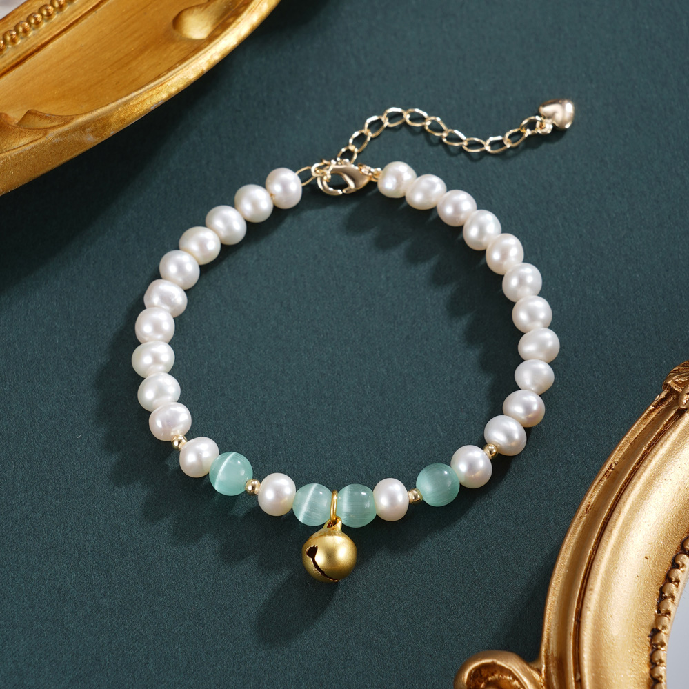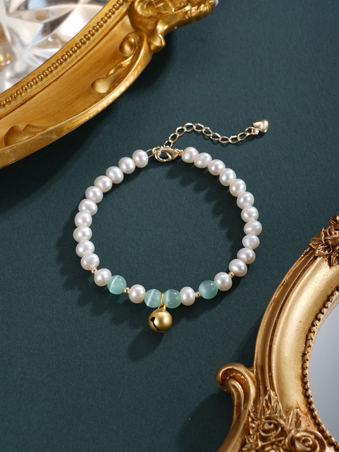 子佩集【无念清响】珍珠惜王妃手链【ZZSL007】5.5-6mm珠镀金铃铛猫眼石2601
