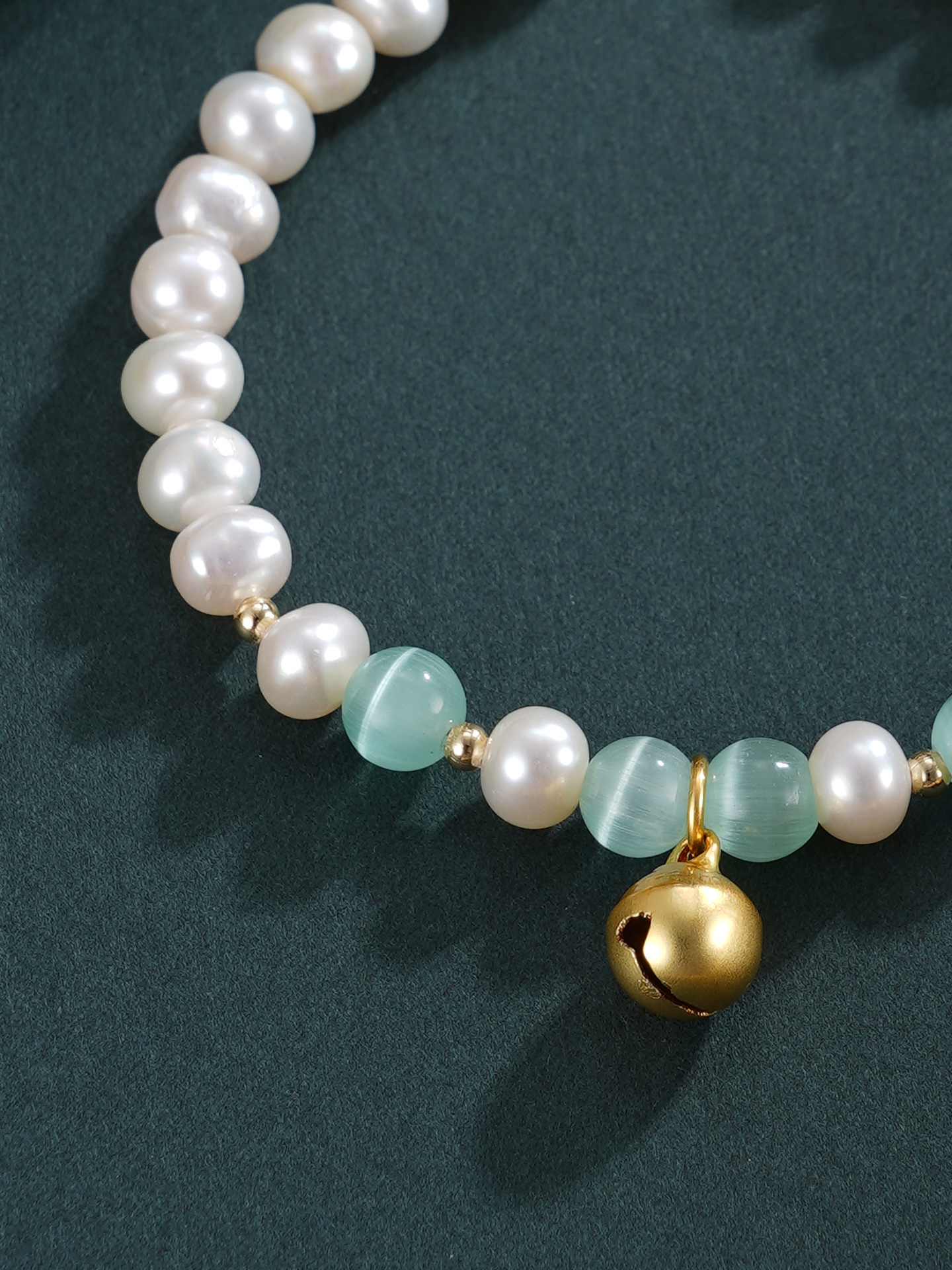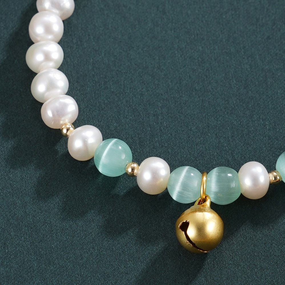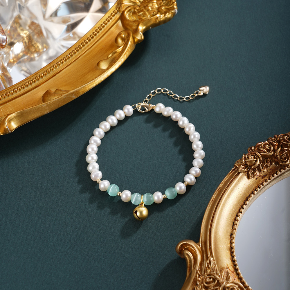 子佩集【无念清响】珍珠惜王妃手链【ZZSL007】5.5-6mm珠镀金铃铛猫眼石2601