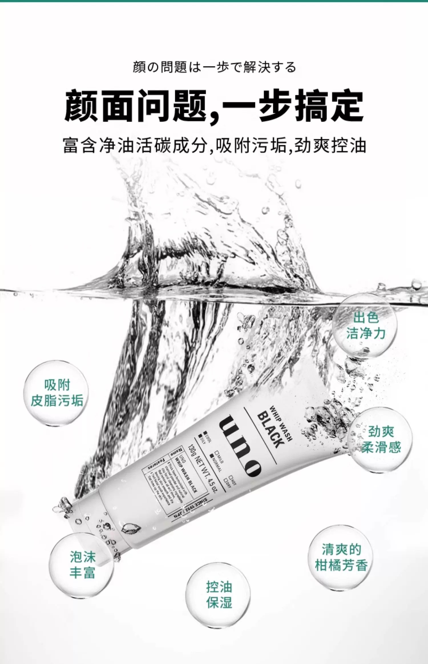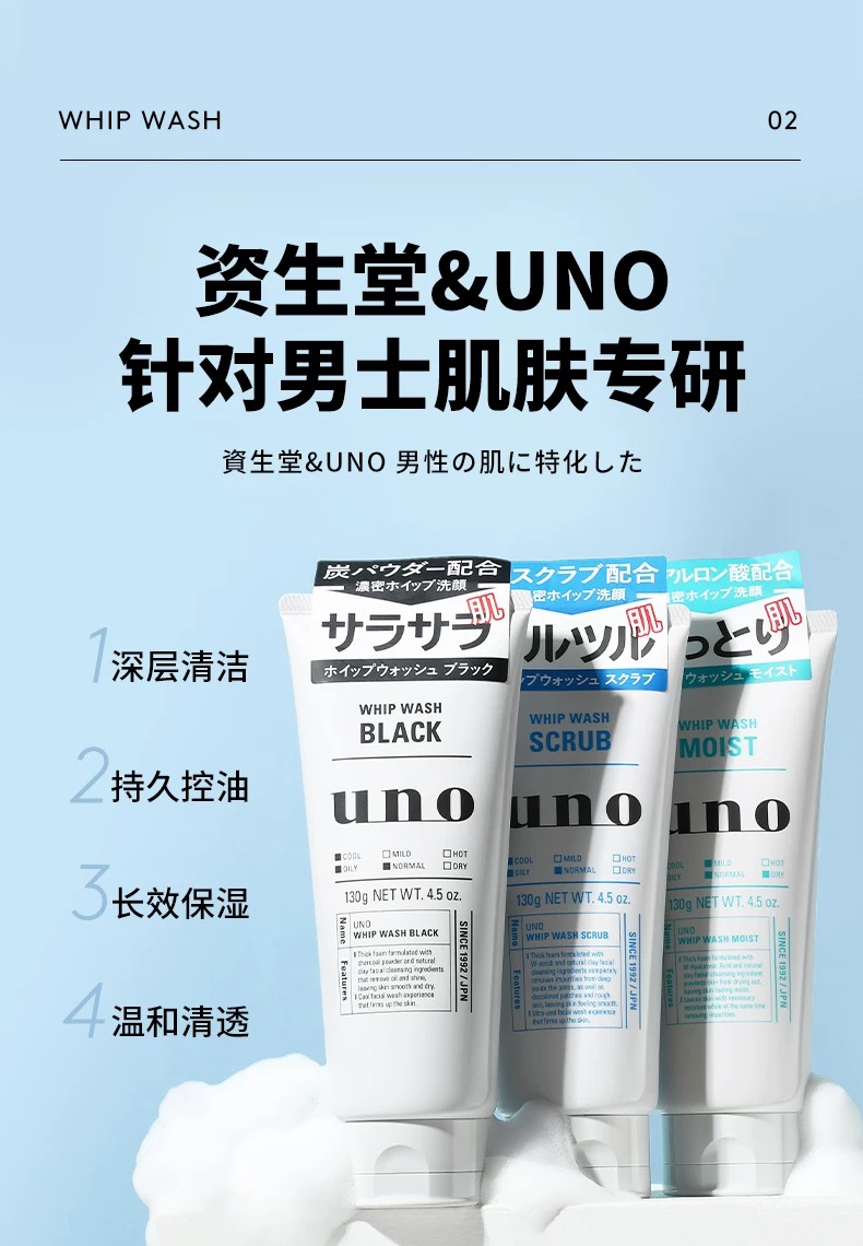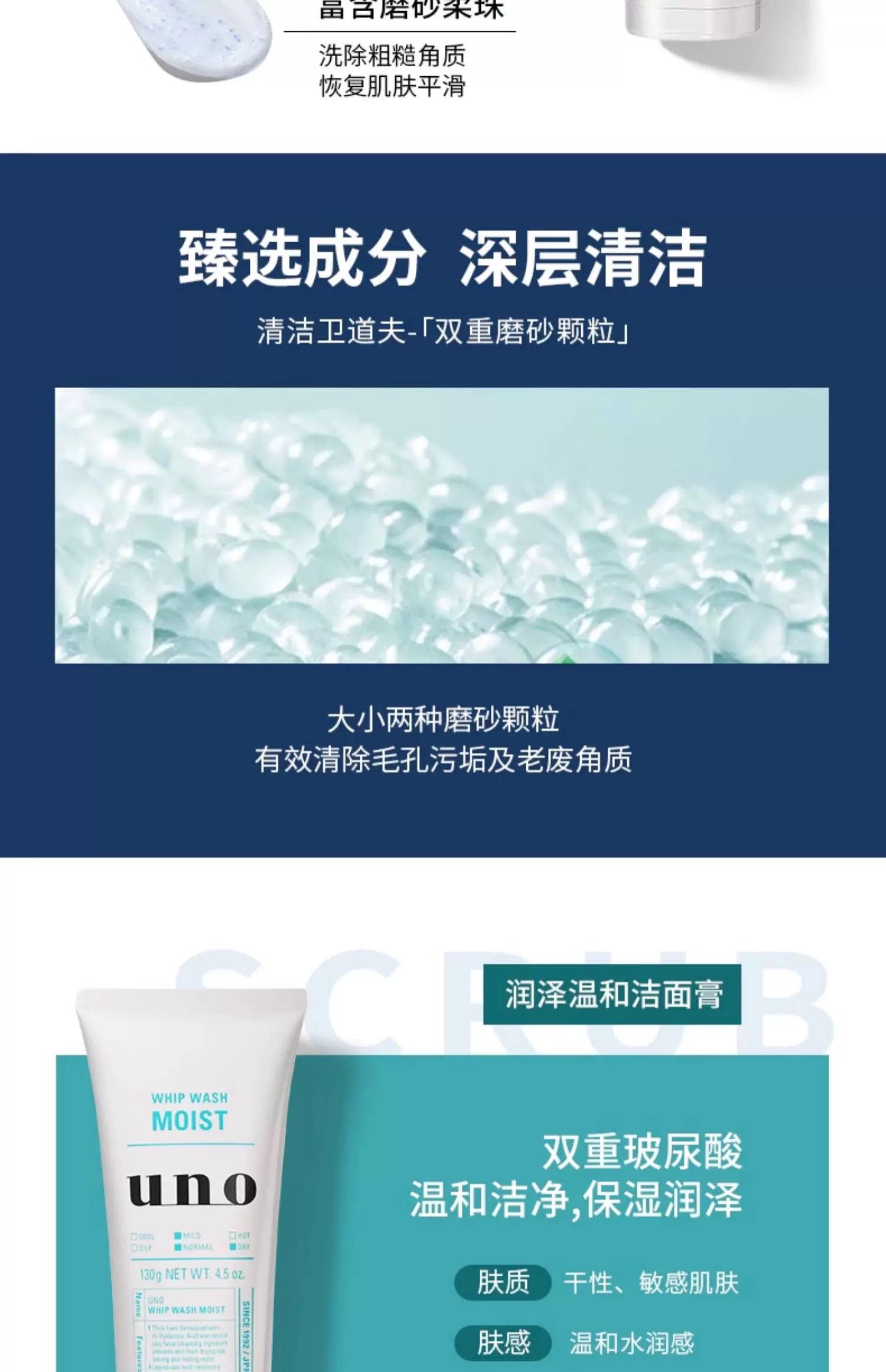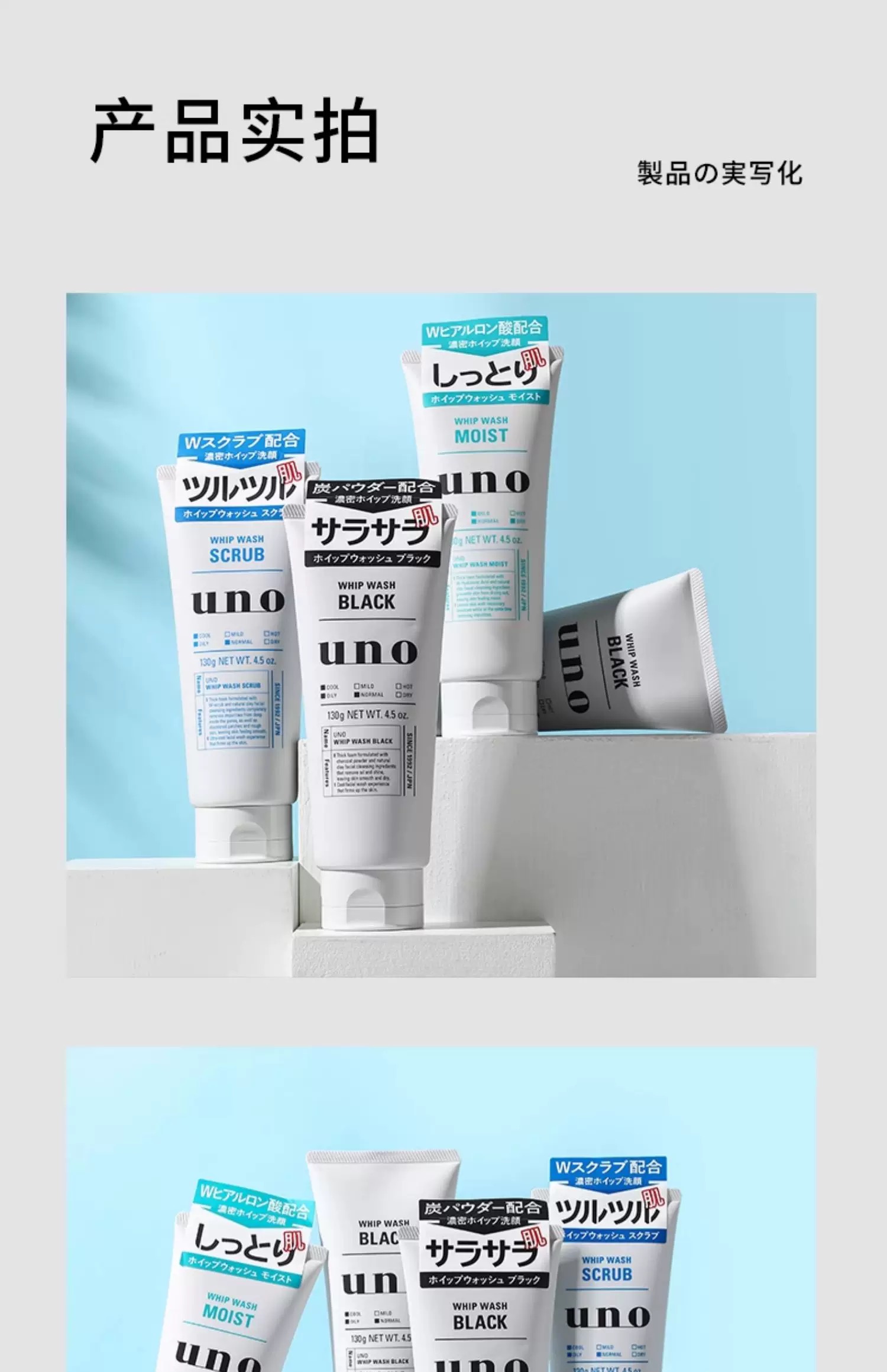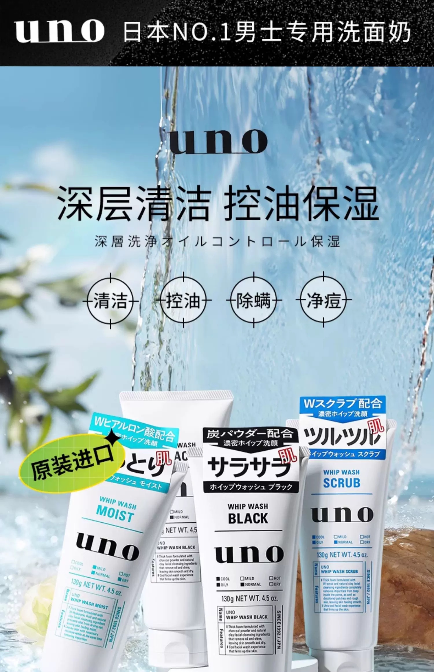 日本资生堂uno洗面奶男士专用祛痘控油保湿清洁去角质130g