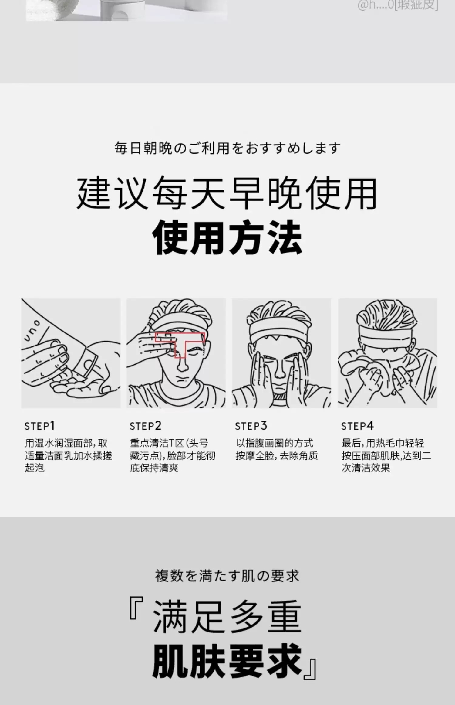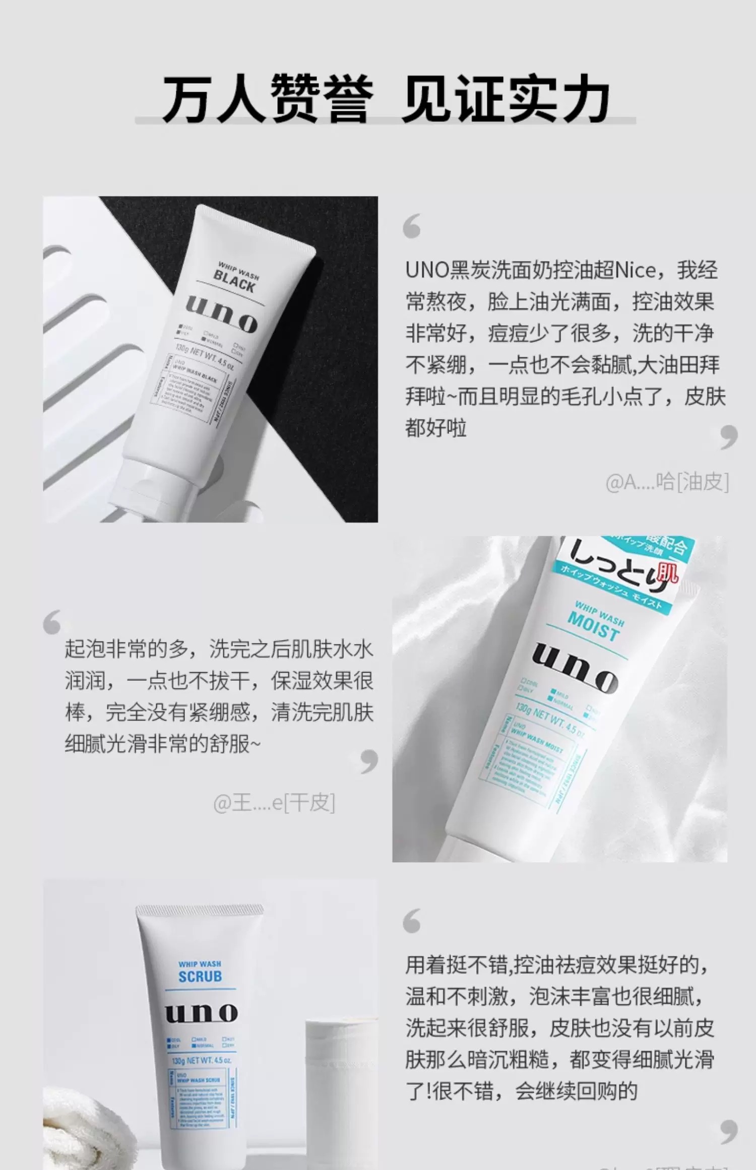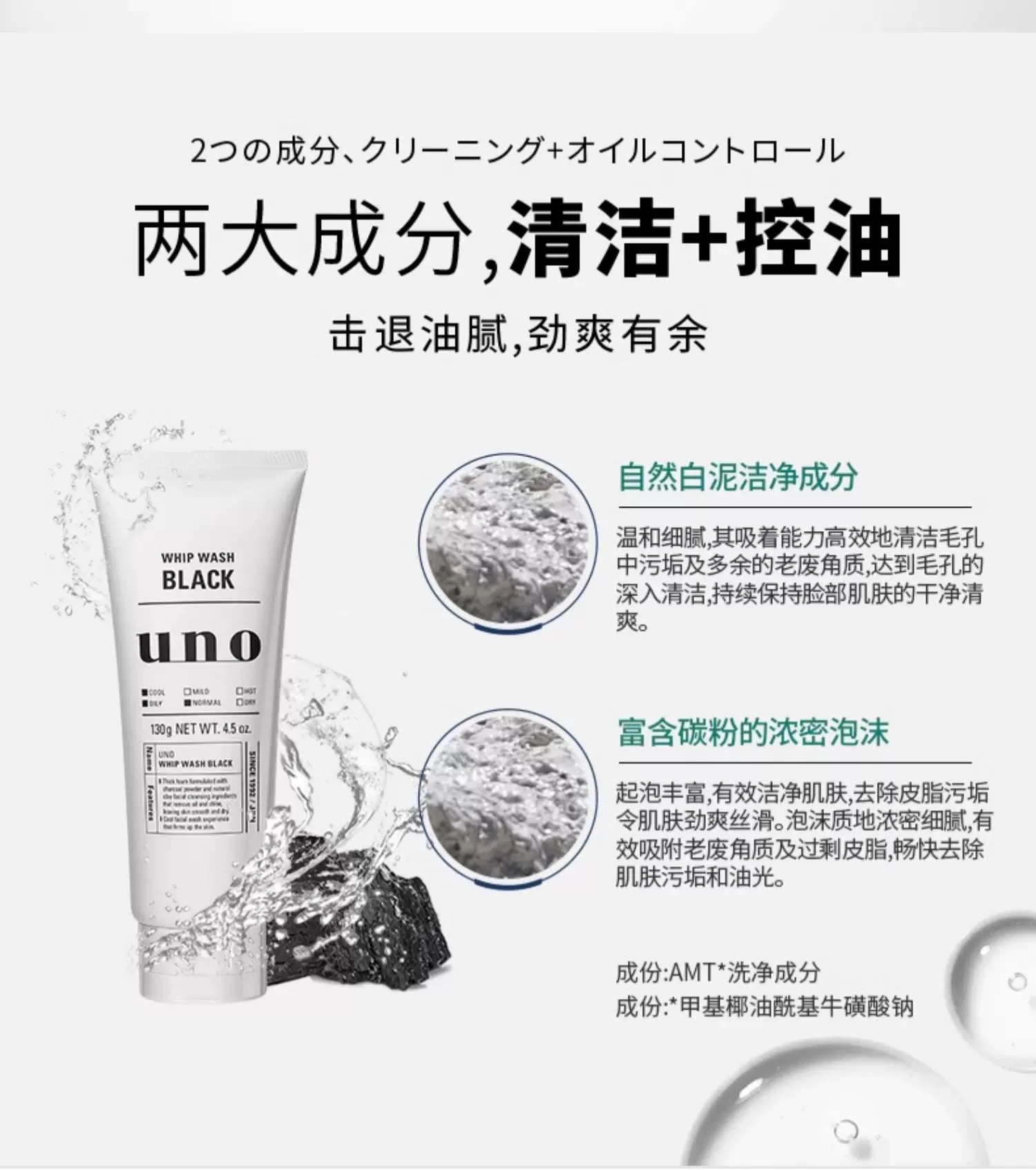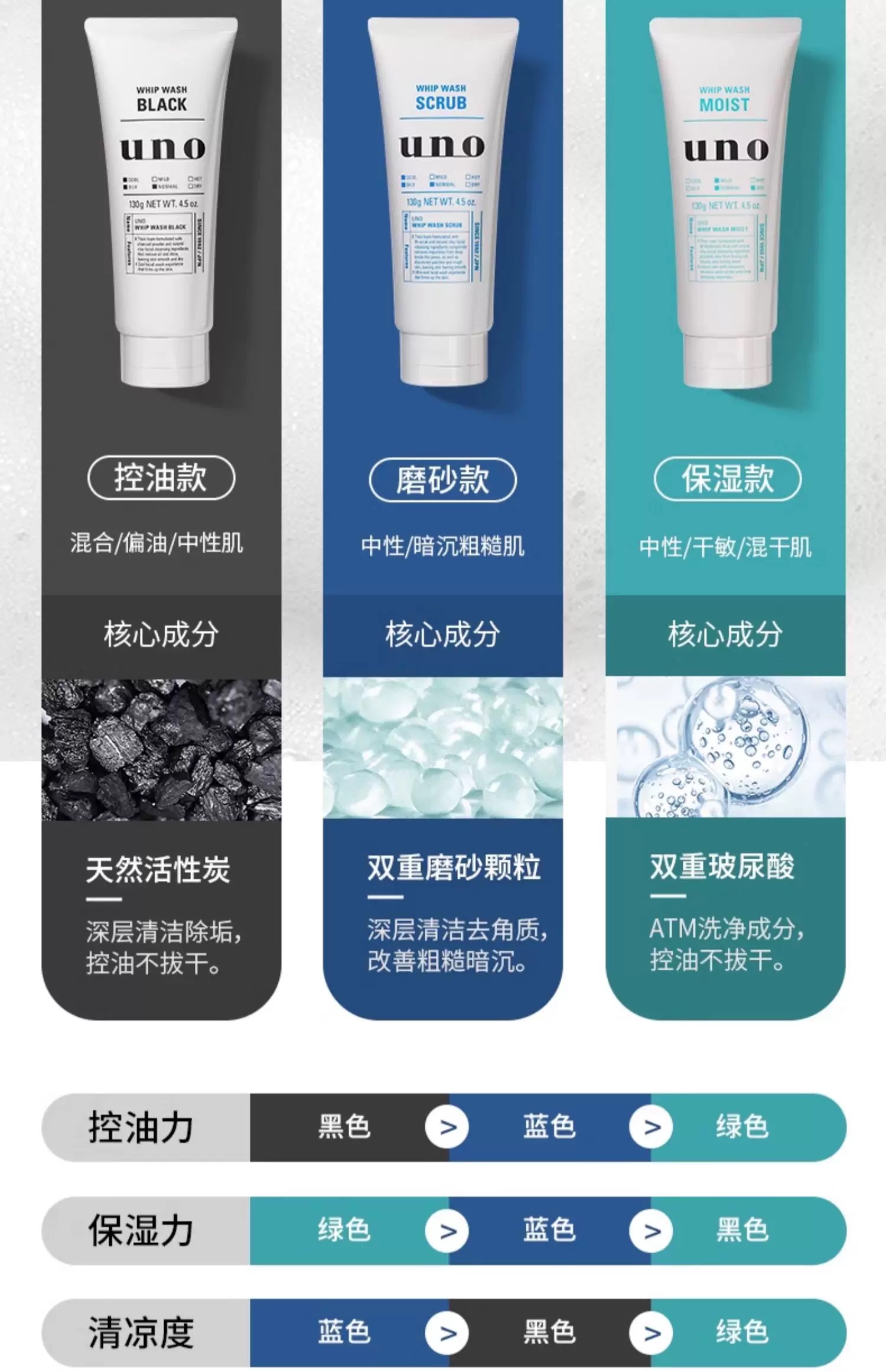 日本资生堂uno洗面奶男士专用祛痘控油保湿清洁去角质130g