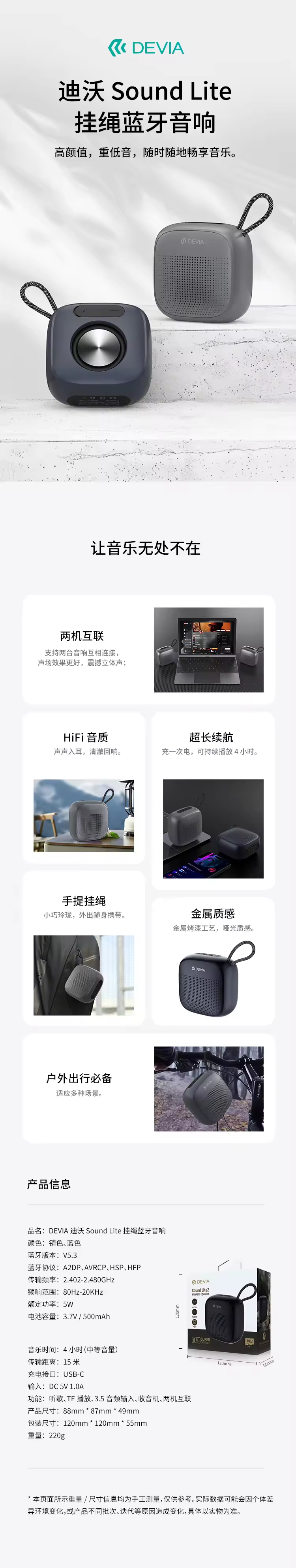 DEVIA迪沃 Sound Lite 挂绳蓝牙音响