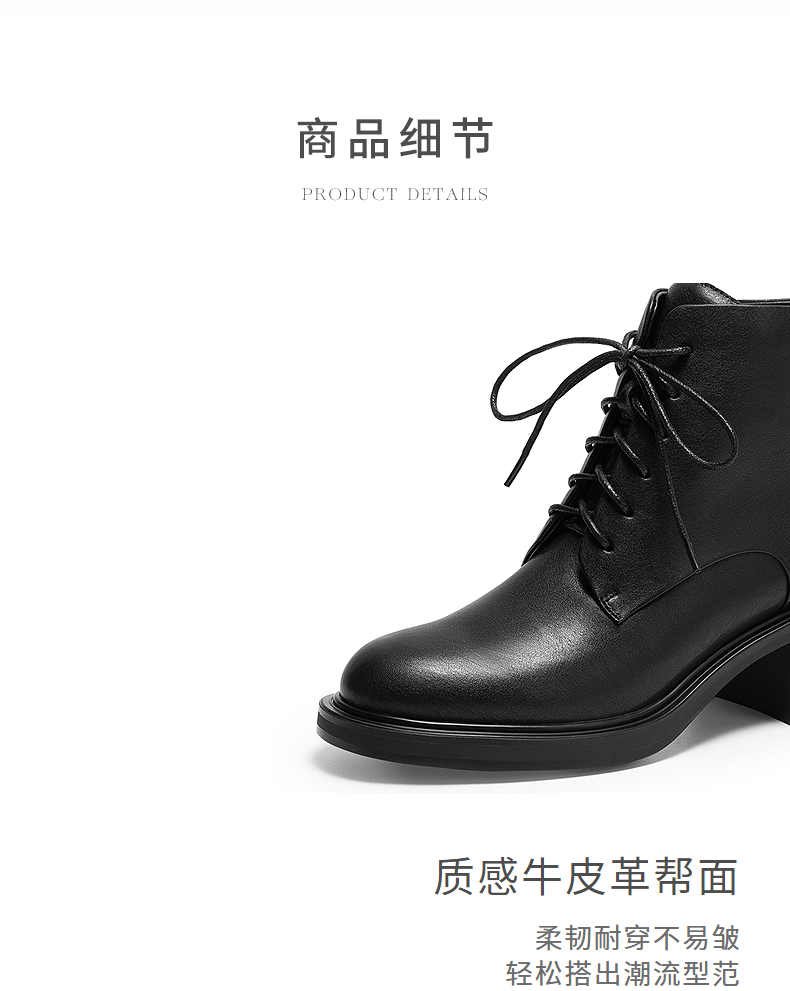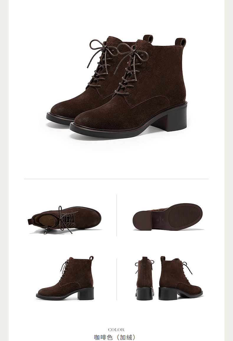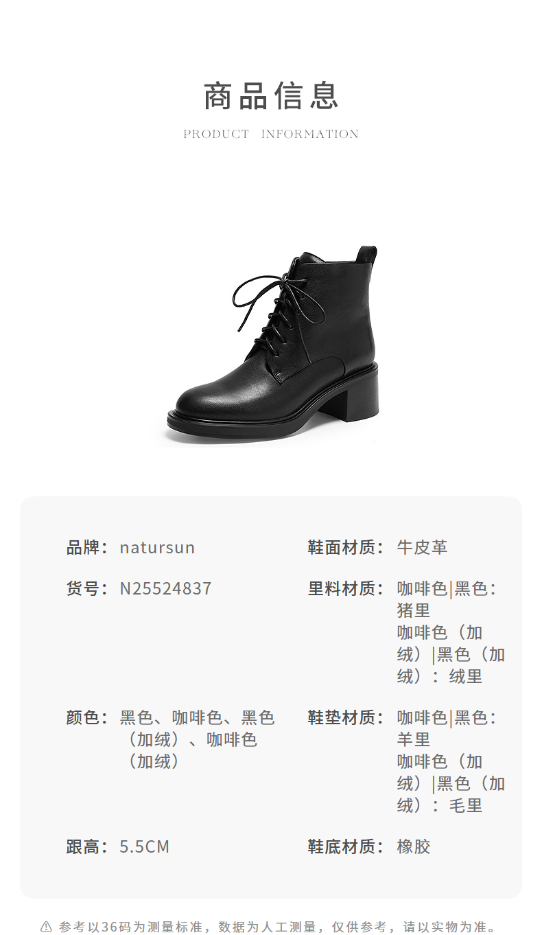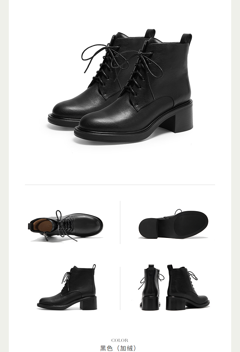 natursun时尚马丁靴女冬季新款百搭粗跟短靴高帮舒适通勤靴子N25524837