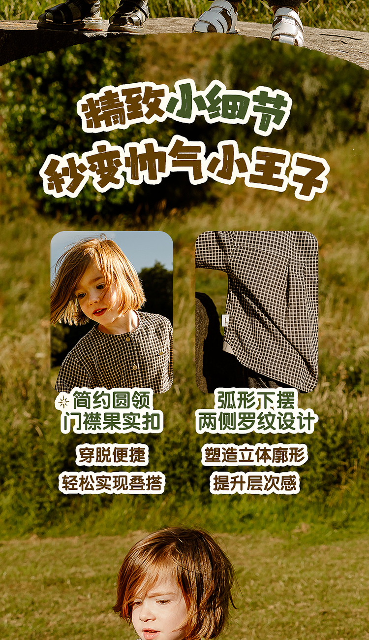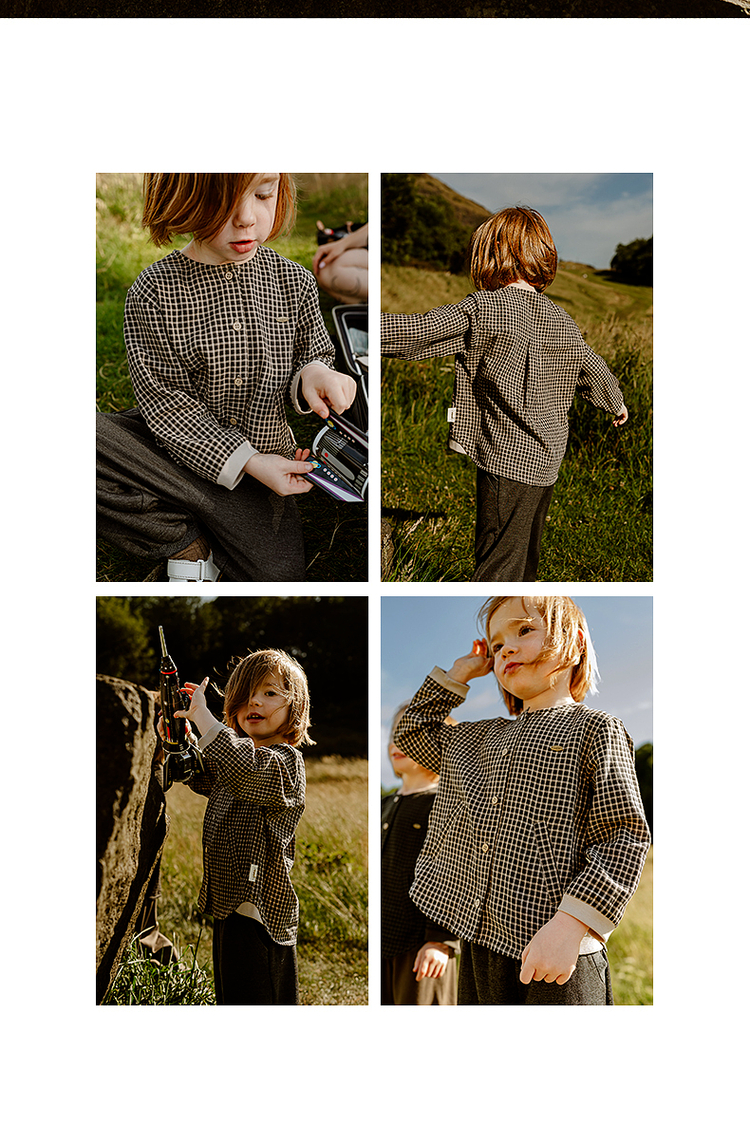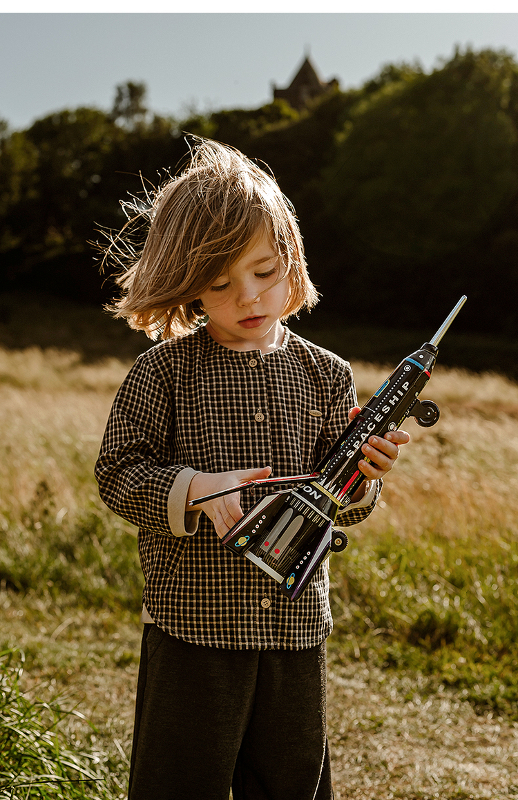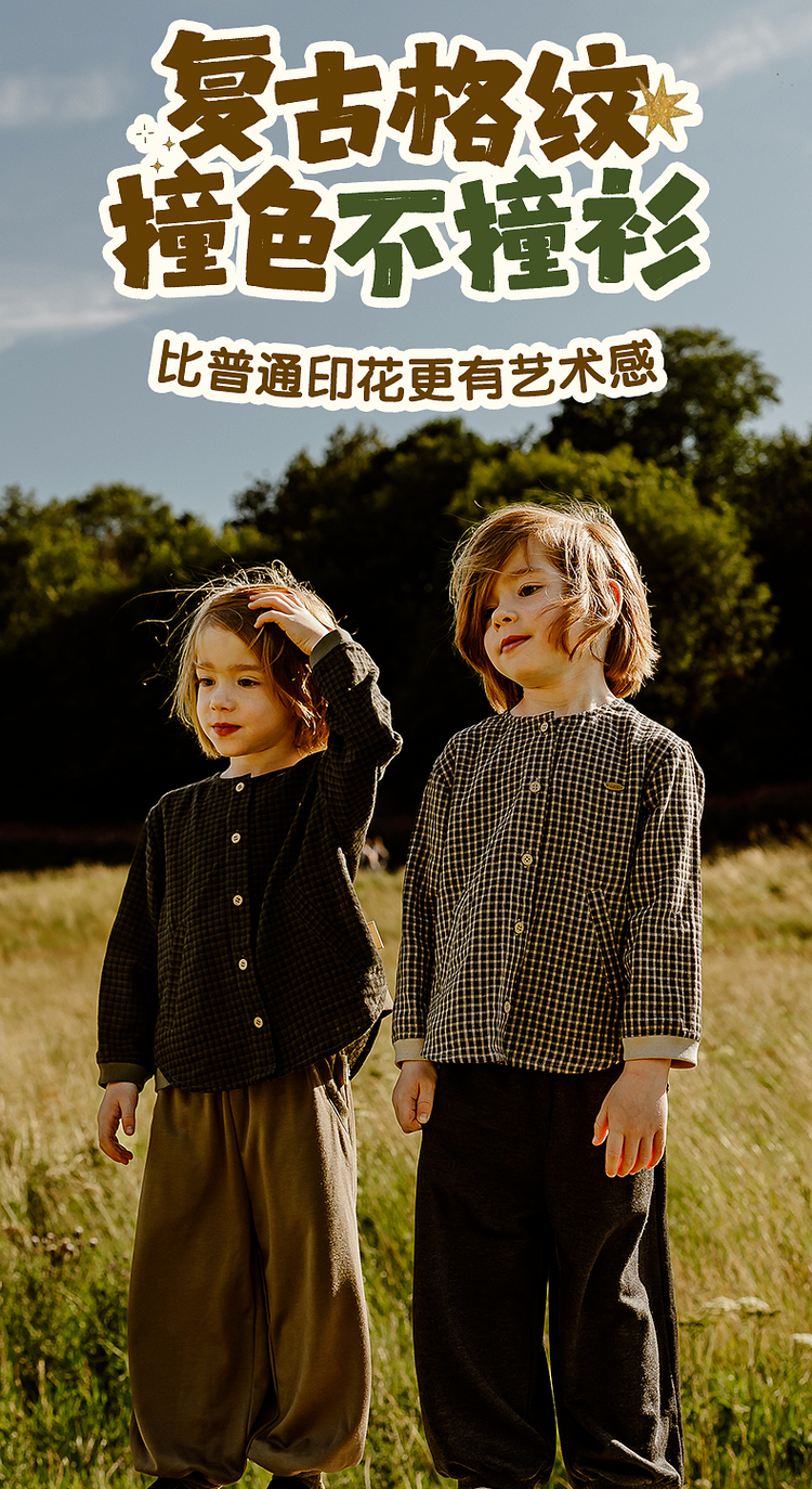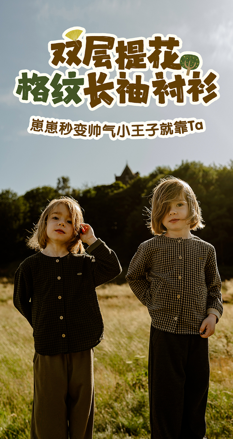 【云优选】lelejove北欧风儿童衬衫25秋新品男宝复古提花格纹长袖衬衫