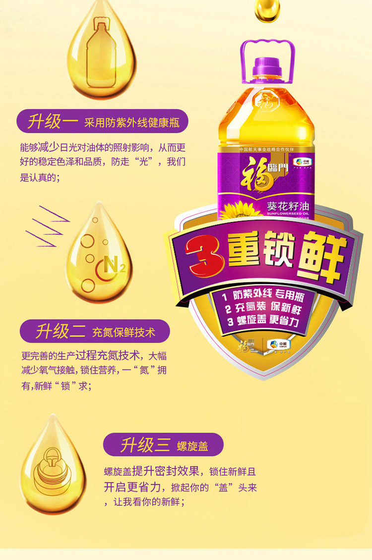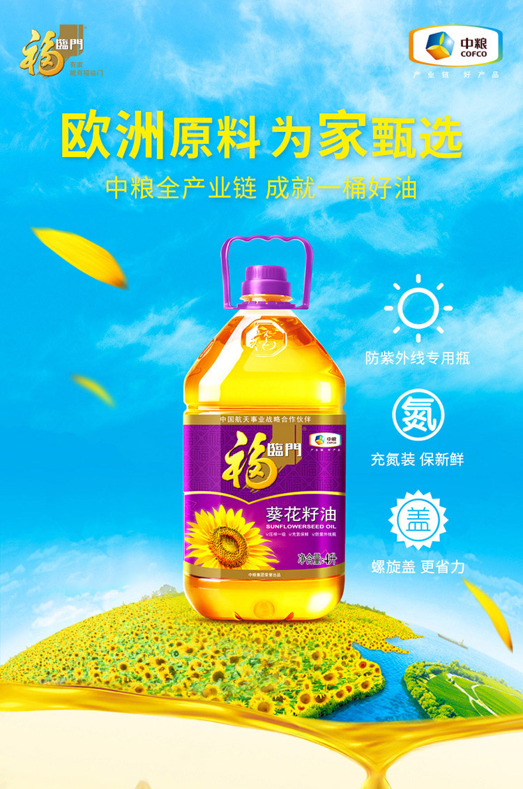 福临门 食用油 压榨一级充氮保鲜葵花籽油5L 中粮出品