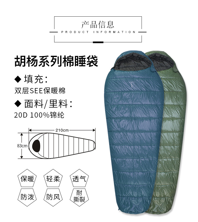AndesMountain安地斯胡杨系列木乃伊棉睡袋旅行露营保暖轻量便携单人