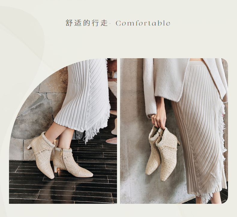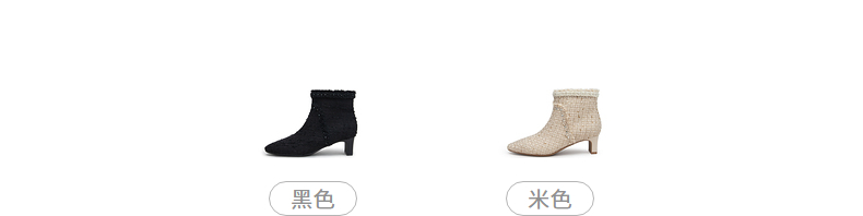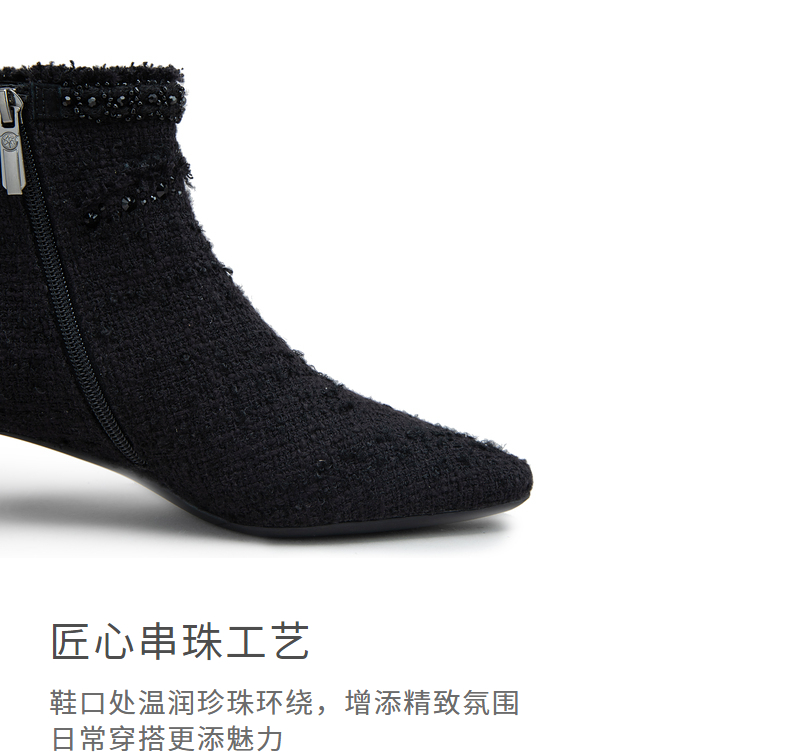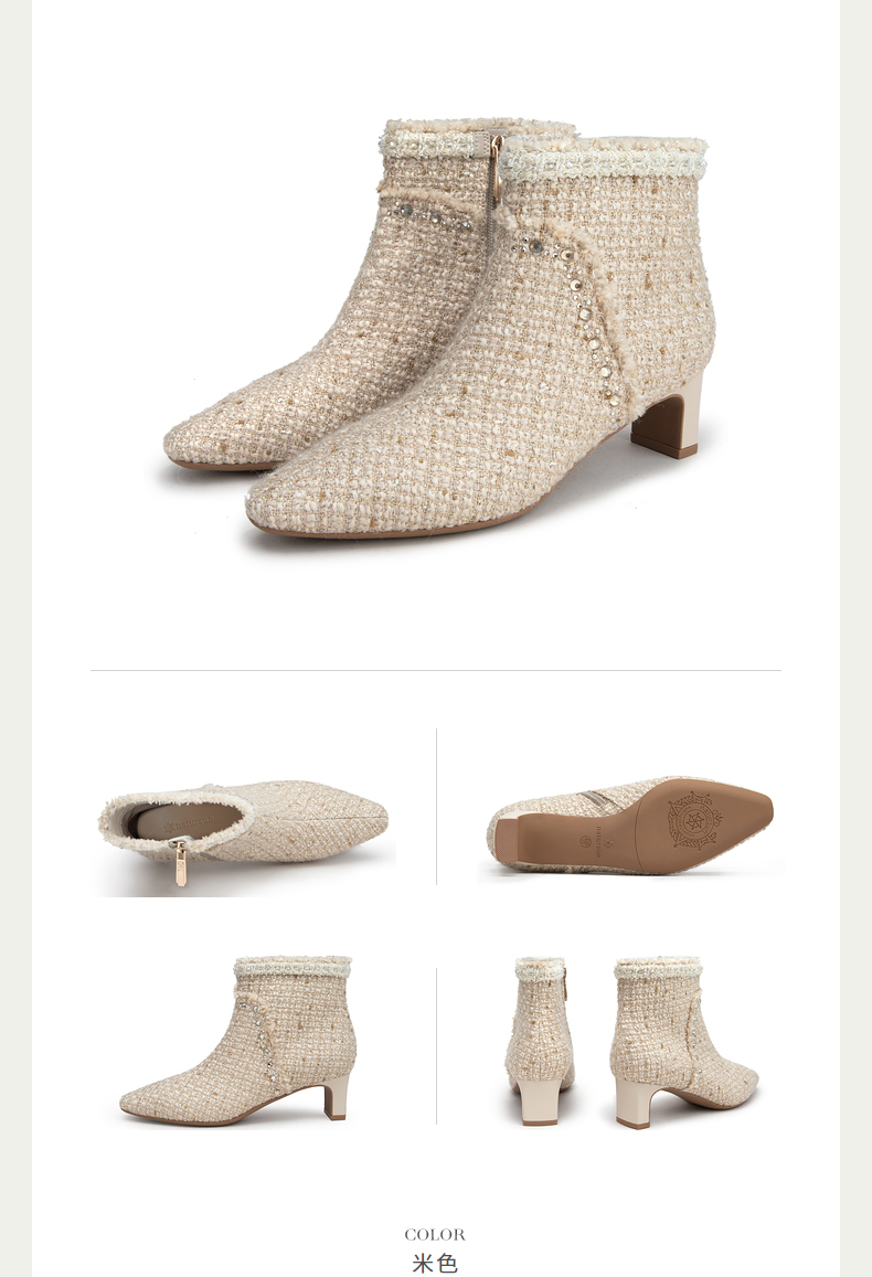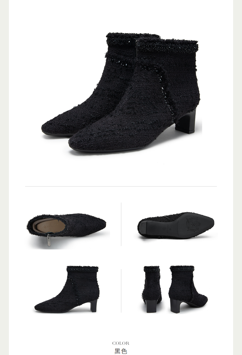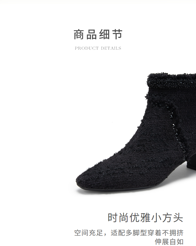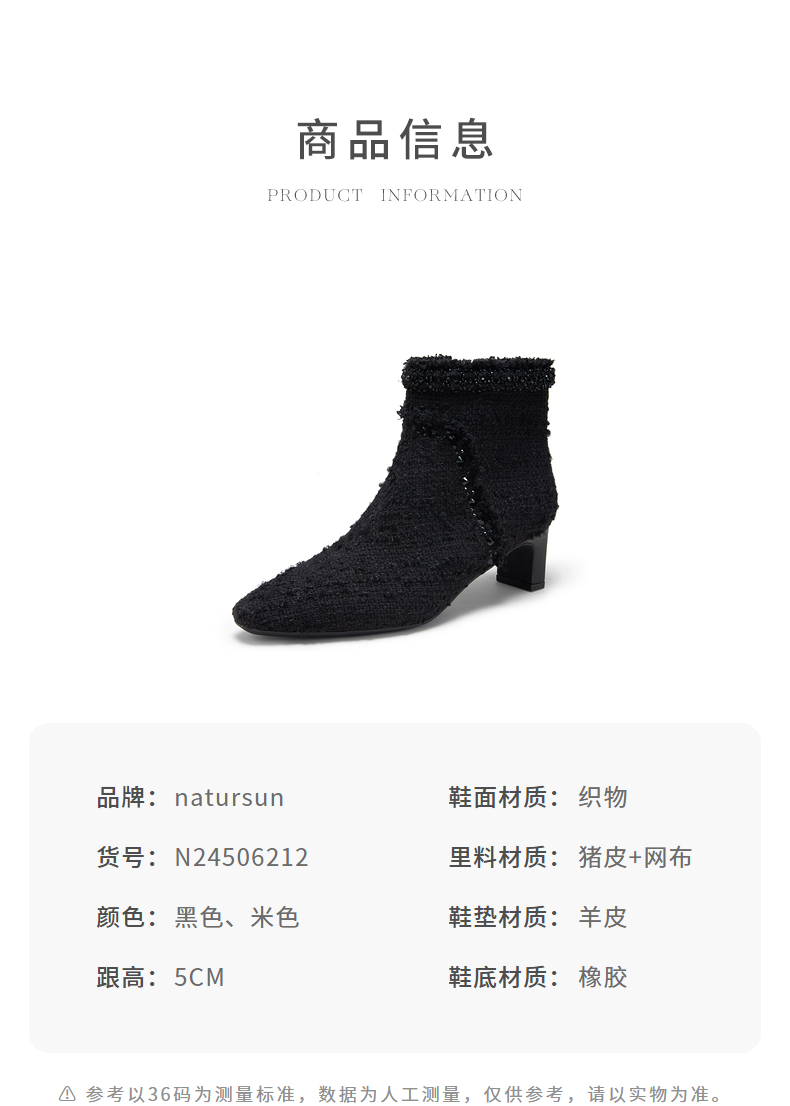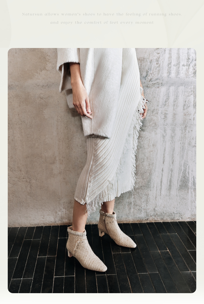 natursun法式时装靴秋冬季时尚气质小方头粗跟高跟靴短靴女鞋N24506212