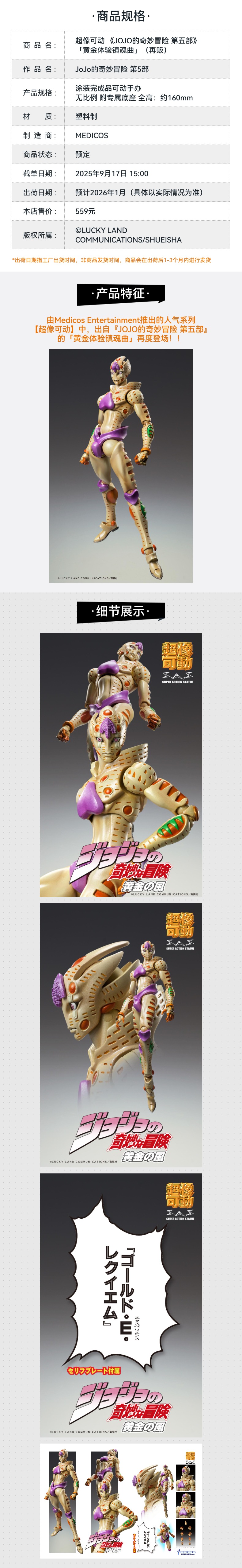 【GSC现货】超像可动 《JOJO的奇妙冒险 第五部》 「黄金体验镇魂曲」