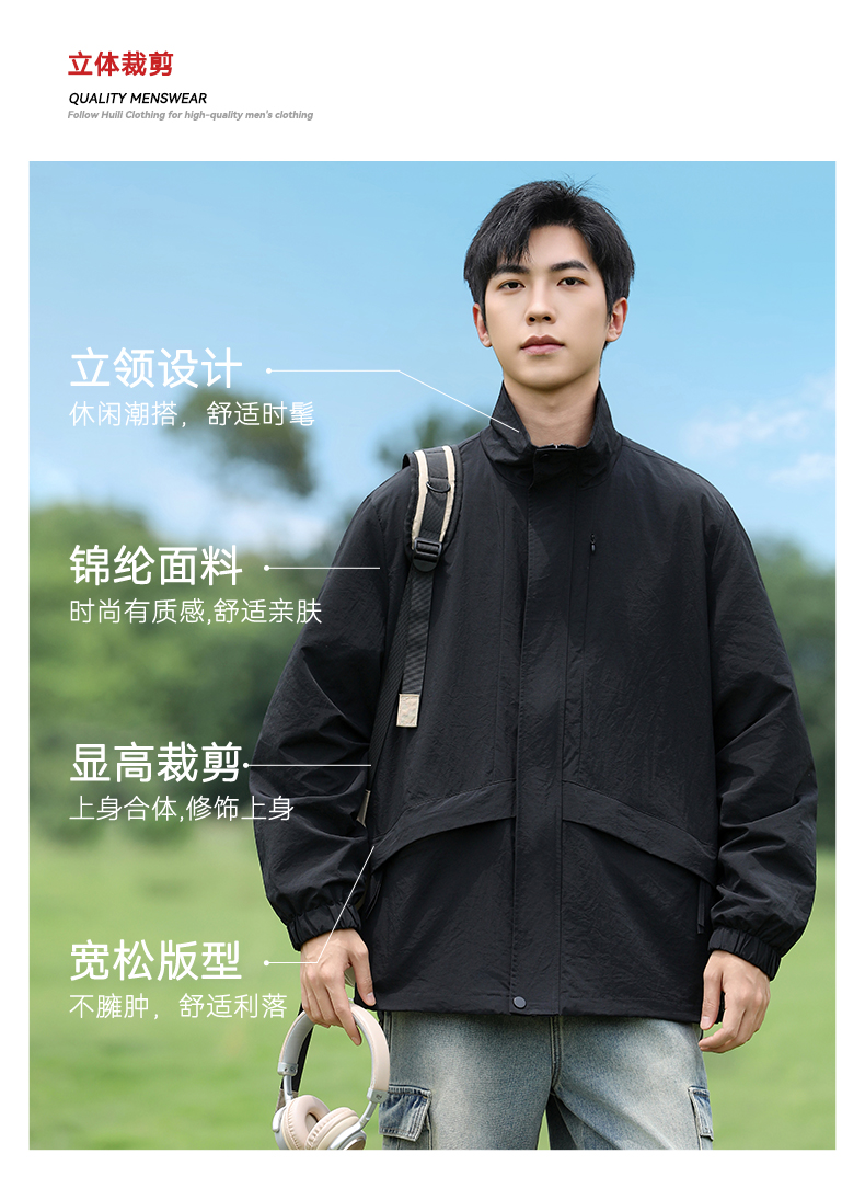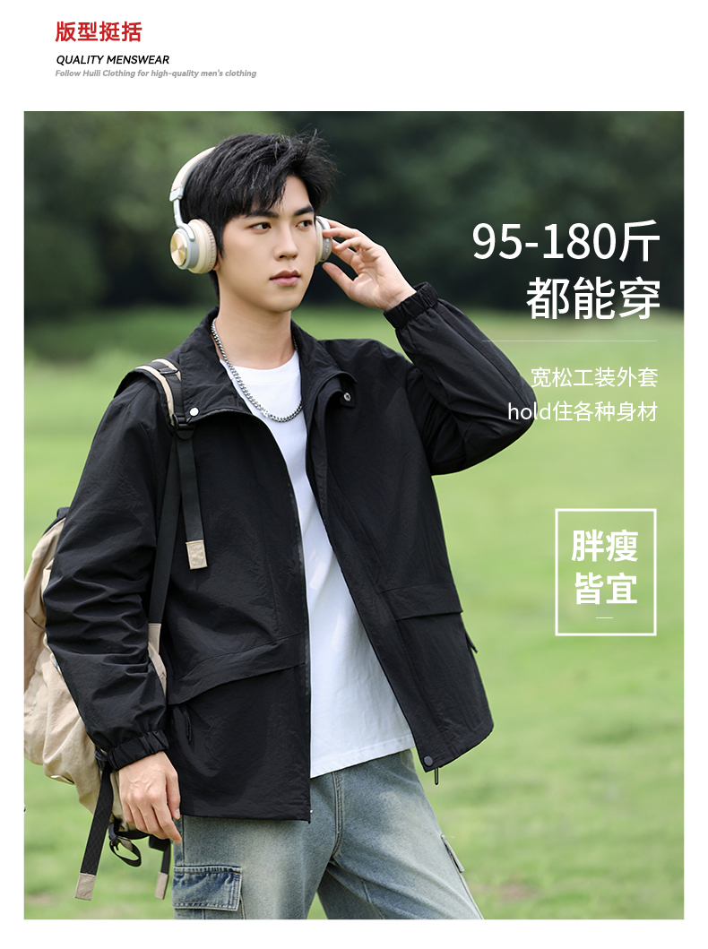 回力外套男款立领夹克2025年秋季新款工装上衣男士休闲宽松冲锋夹克