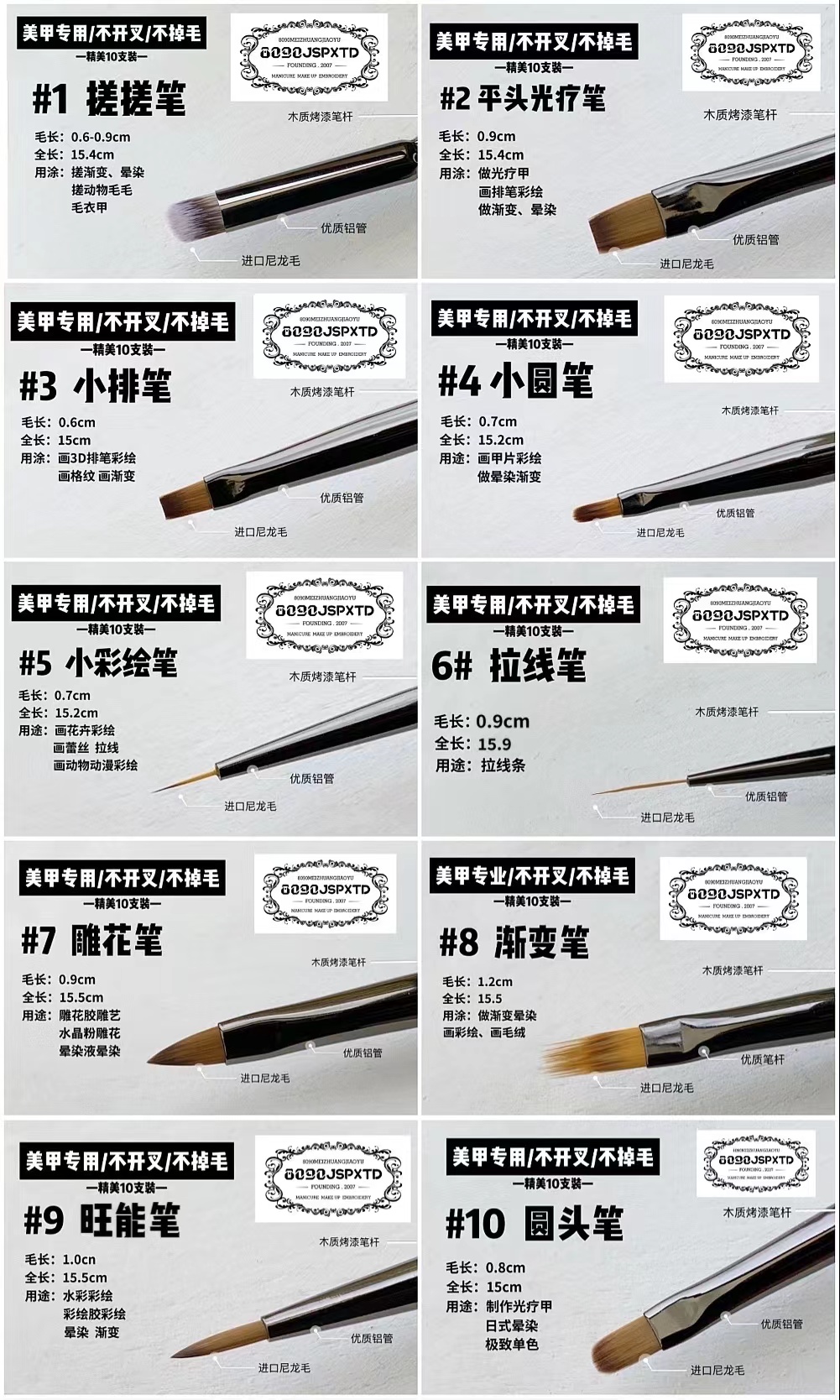 DYDS美甲专用套装笔10支装可选