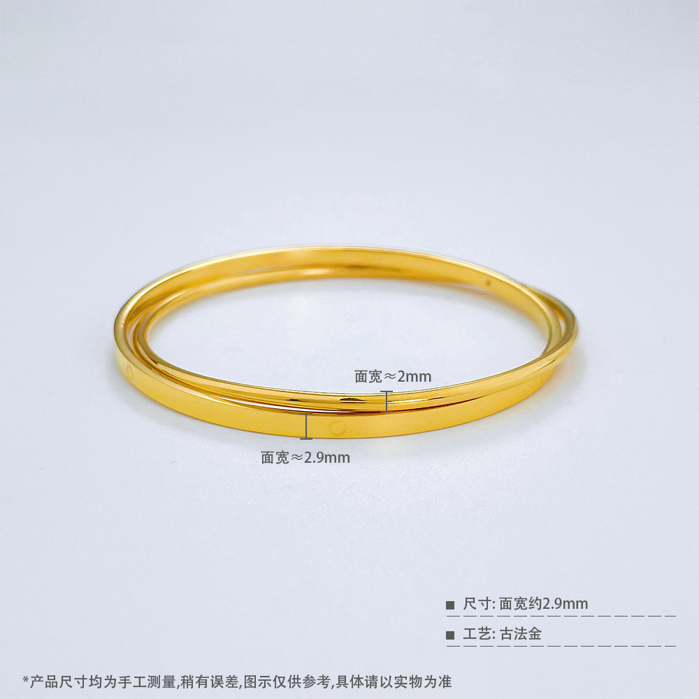 【限时克减150元】足金999.9 【精品】实心固口双环手镯镜面金手镯(AISZ00366)(预售产品下单后不退款不退货不换货不补差价)(预售产品下单后不退款不退货不换货不补差价)