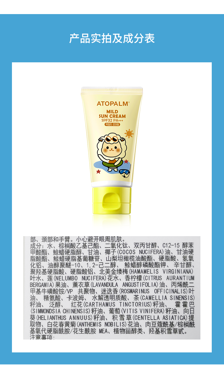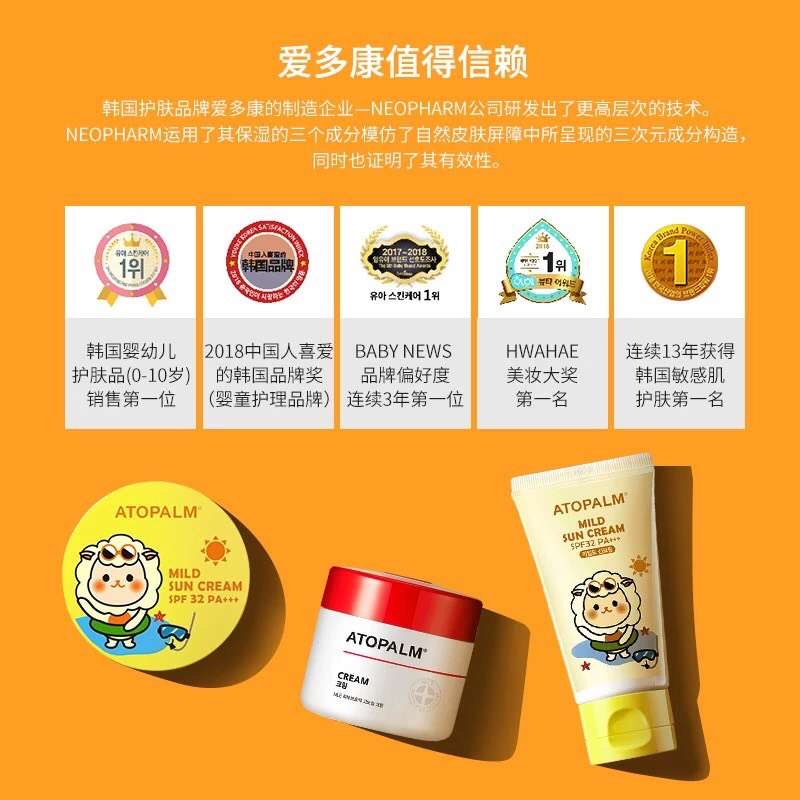 韩国爱多康atopalm宝宝防晒霜清爽敏感肌可用SPF32倍儿童防晒乳【YJQ】