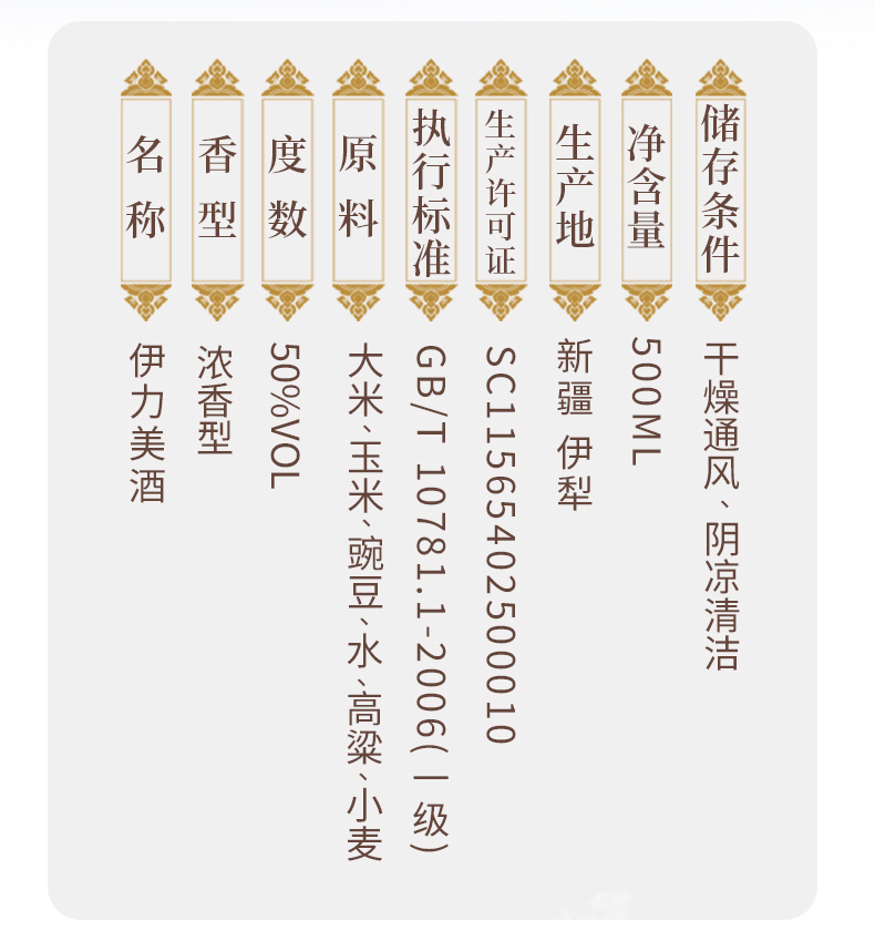 【整箱】伊力美酒(淳美)浓香型白酒 6瓶*500ml 50%vol