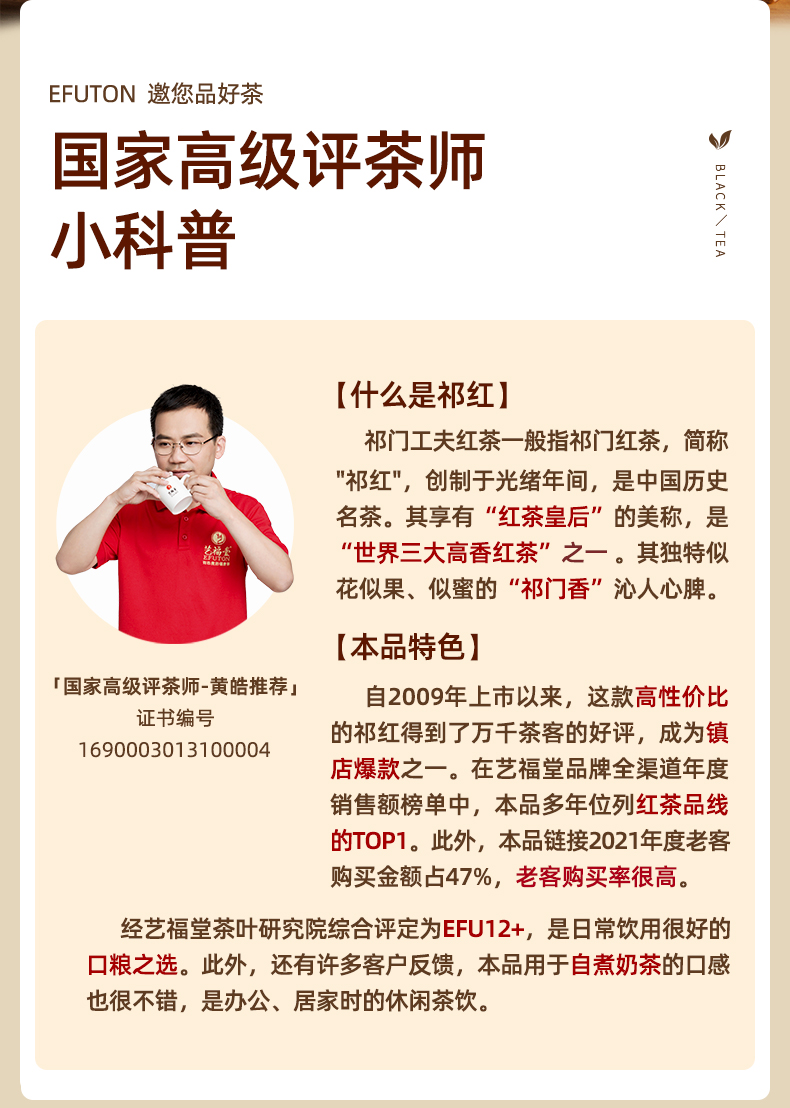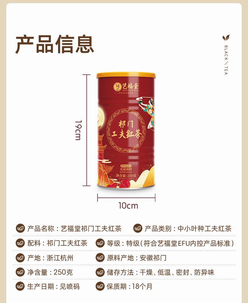 艺福堂祁门工夫红茶250g/罐EFU12+