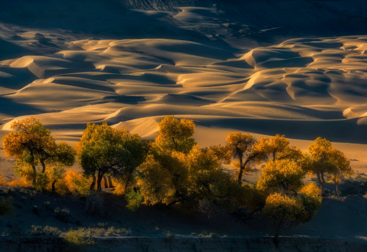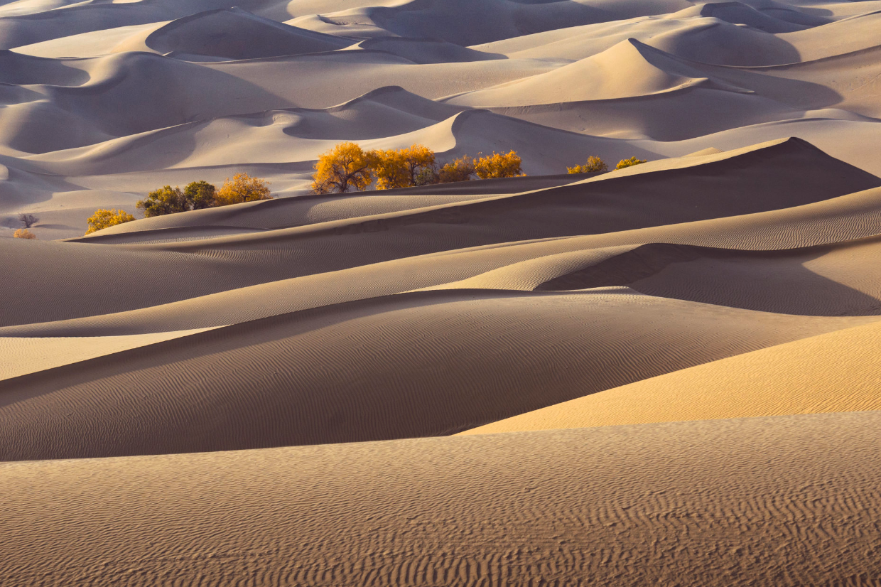 2、精选最佳秋色时间,拍摄塔里木盆地南疆胡杨林最美秋色;