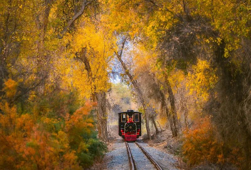 早餐之后出发前往轮台,沿途拍摄塔里木河沿途胡杨林秋色,下午进入胡杨林公园景区拍摄,影友可以自费搭乘小火车穿梭在胡杨林中,拍摄直到日落,返回酒店住宿。