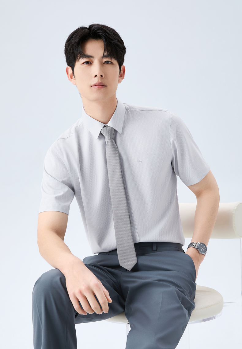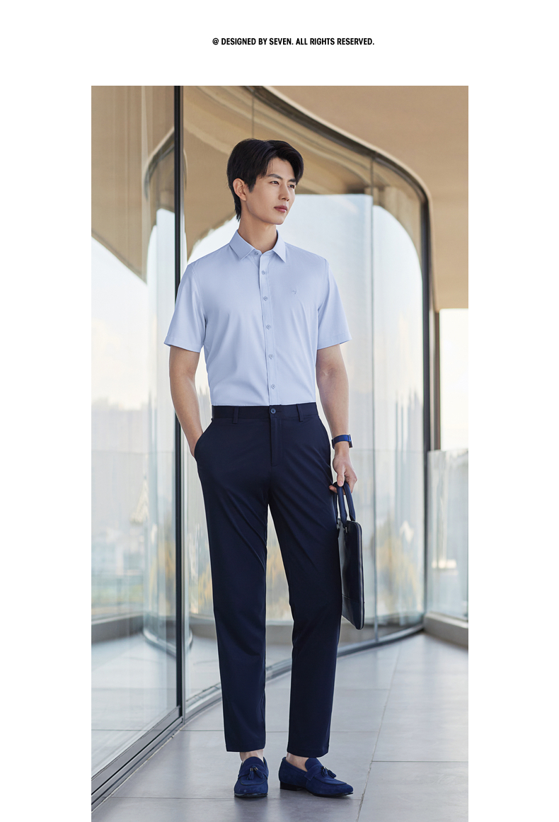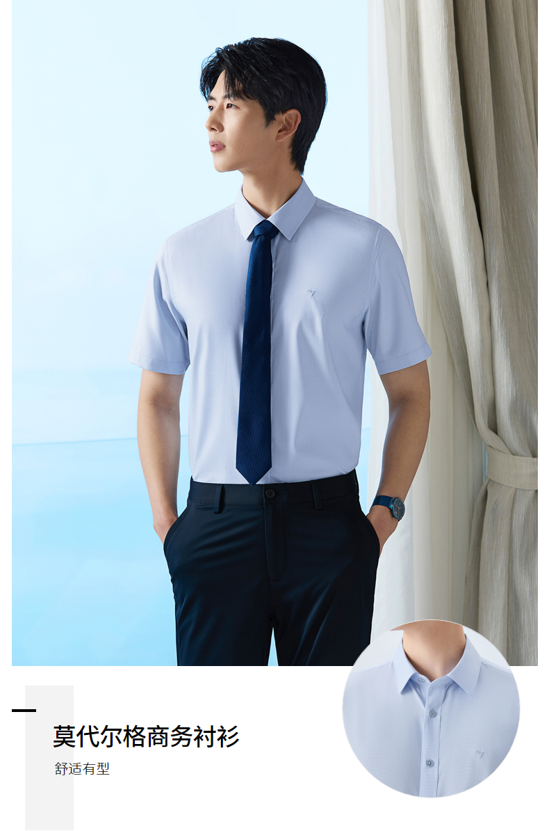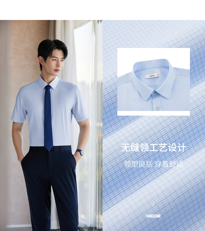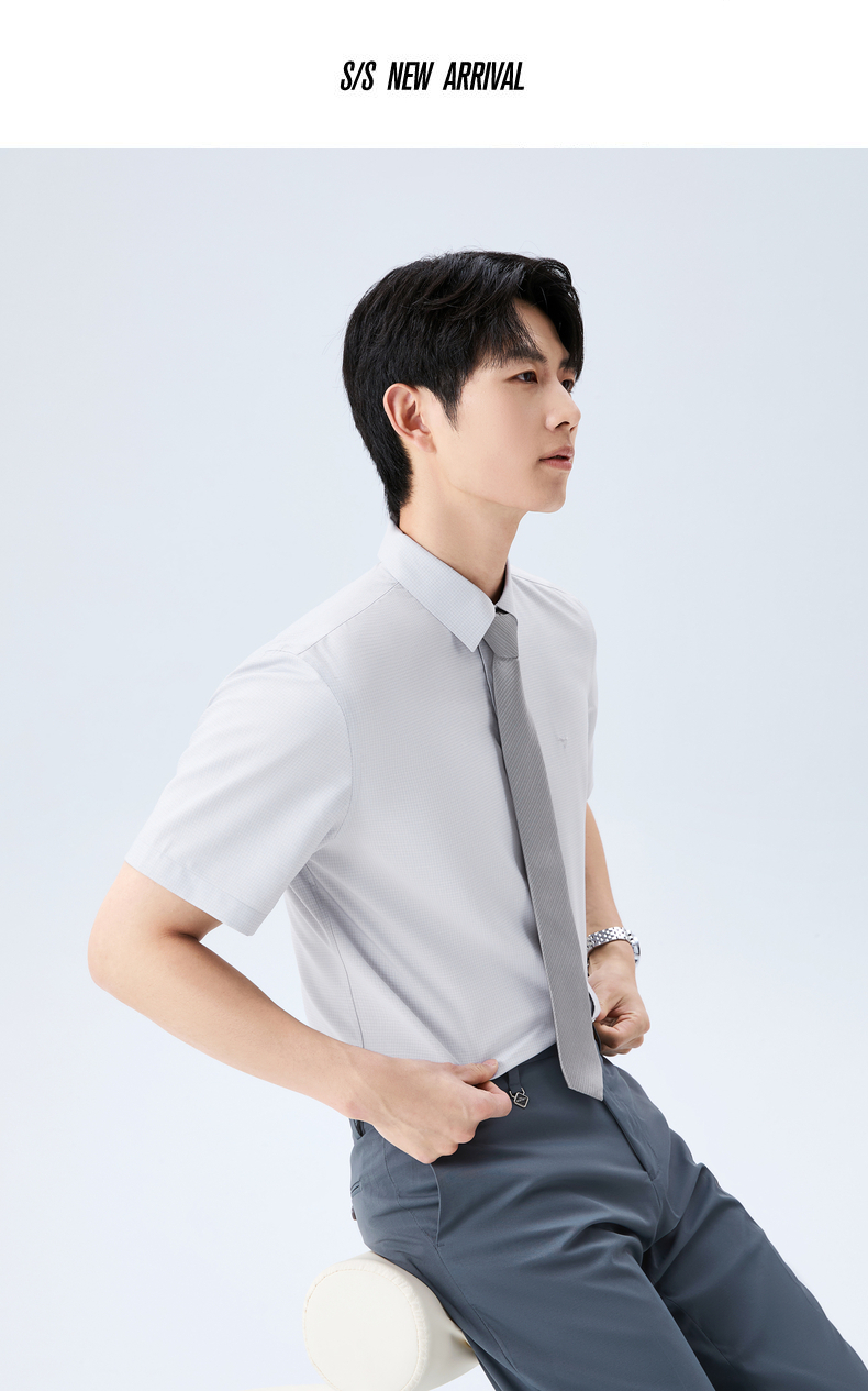 【无缝领/格子衬衫】柒牌男装商务短袖衬衫莫代尔提花短袖上衣男 130A70510