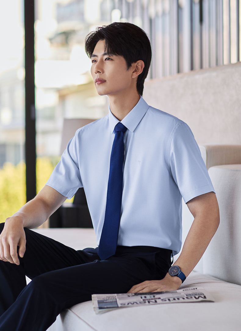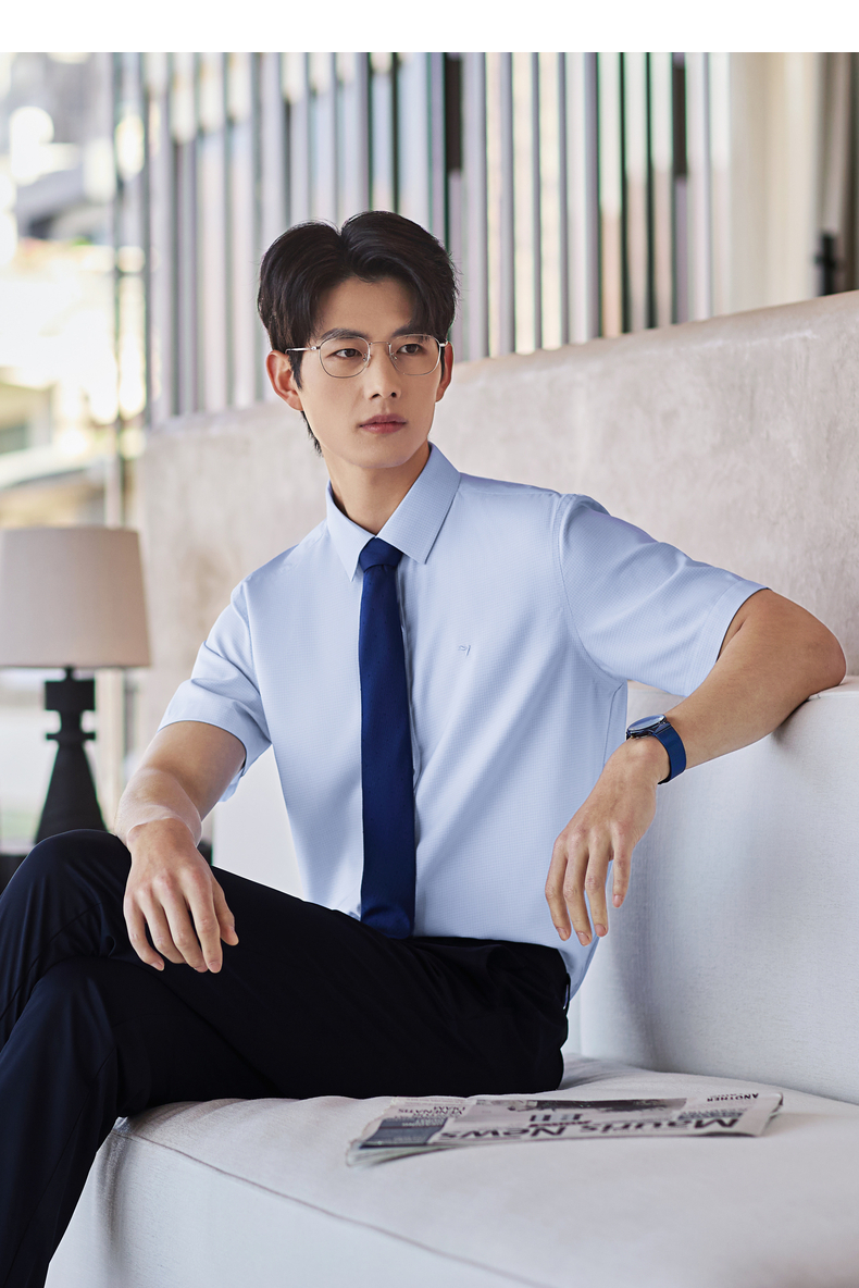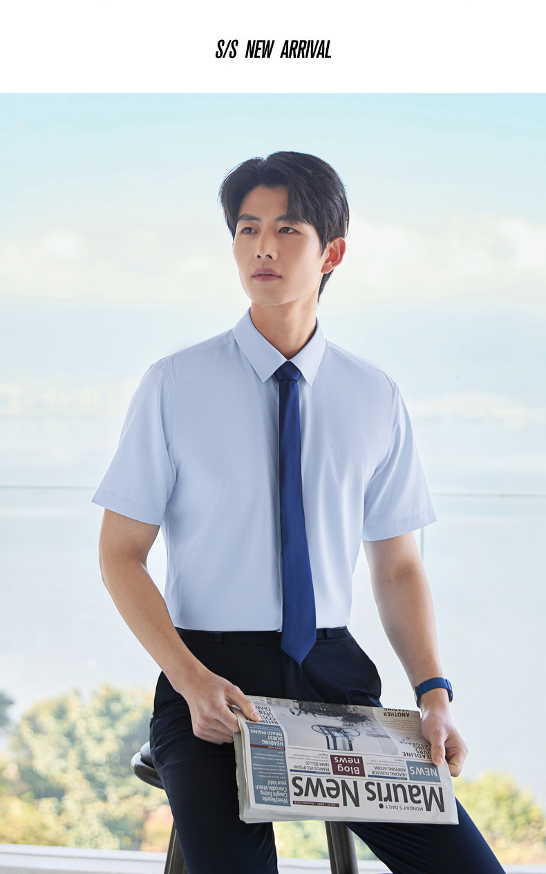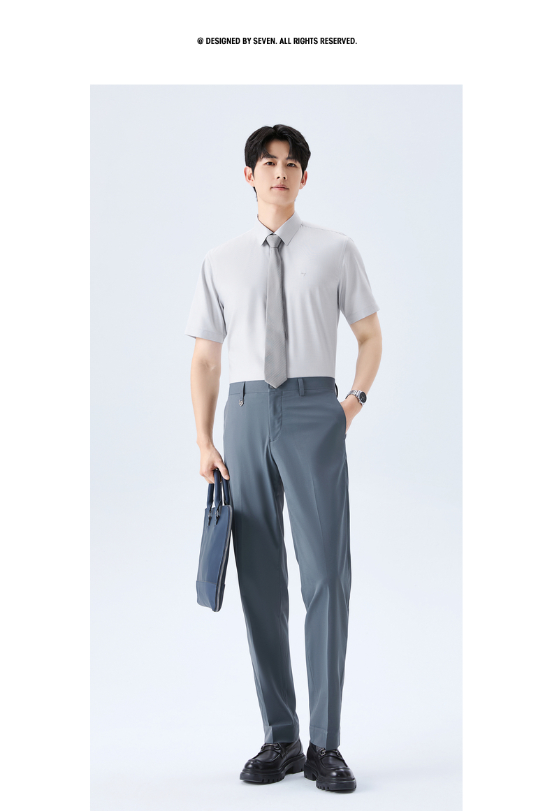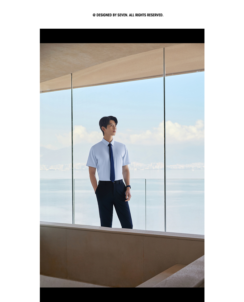 【无缝领/格子衬衫】柒牌男装商务短袖衬衫莫代尔提花短袖上衣男 130A70510