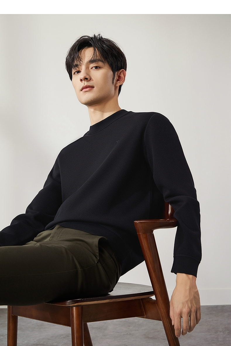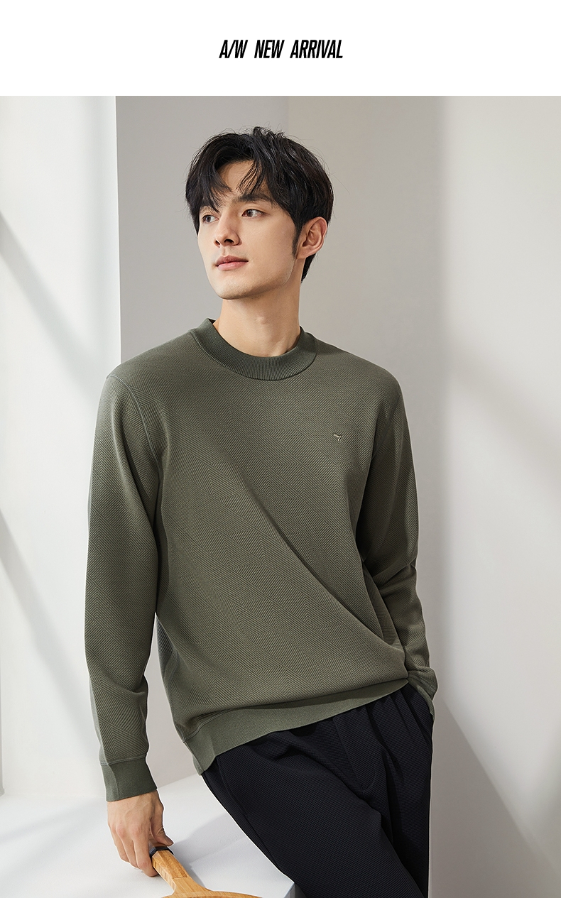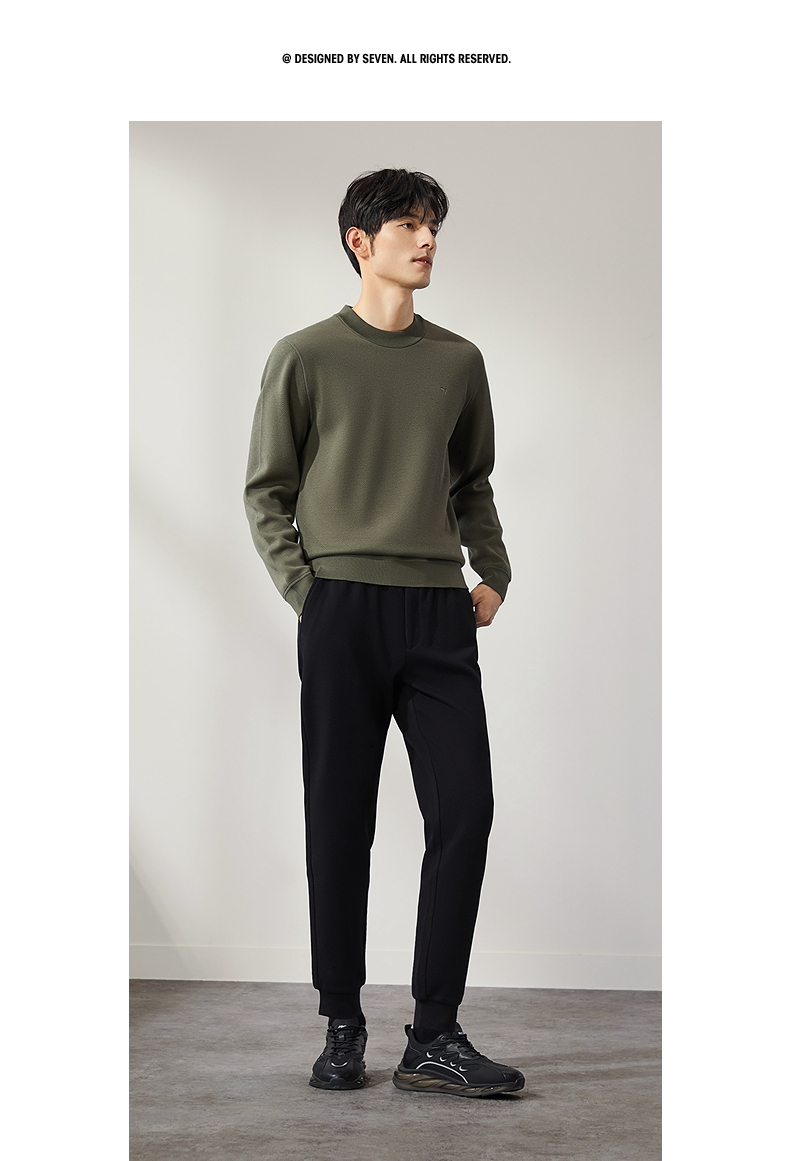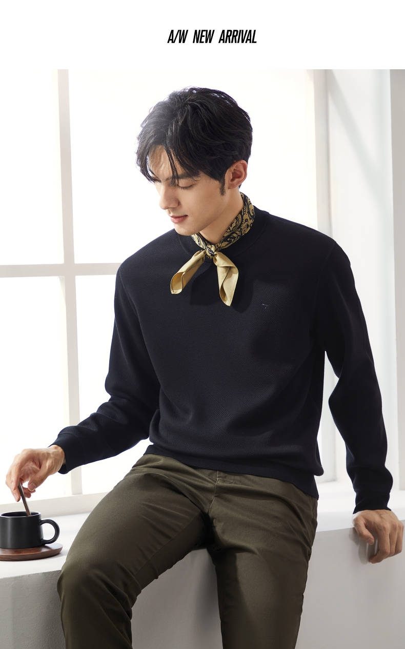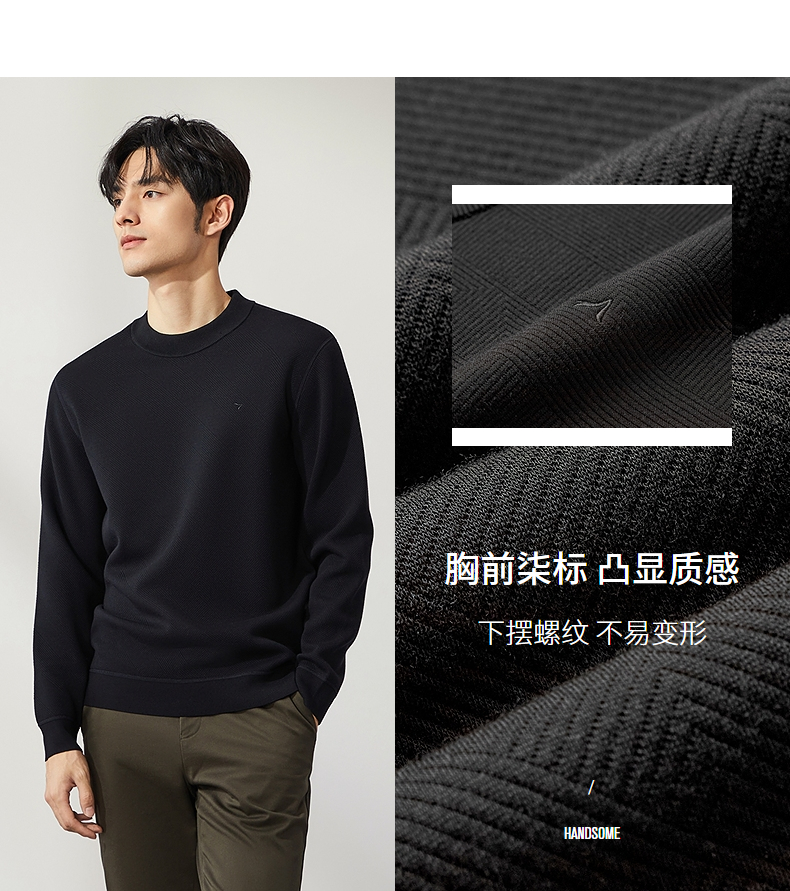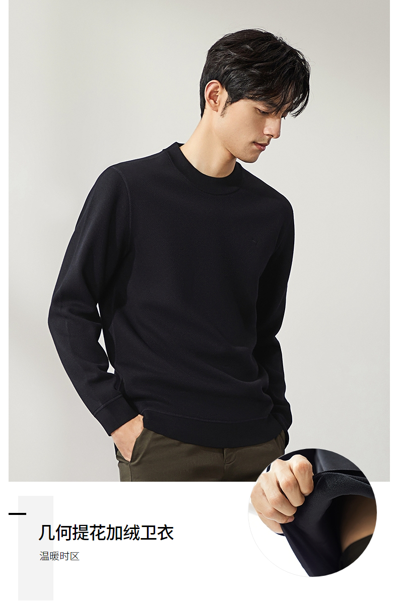 柒牌男士圆领卫衣男2024秋冬新款时尚几何提花加绒保暖休闲套头衫 127W70570
