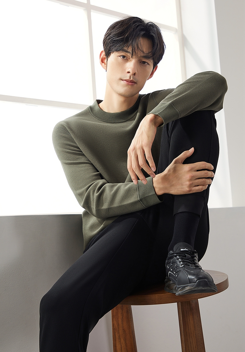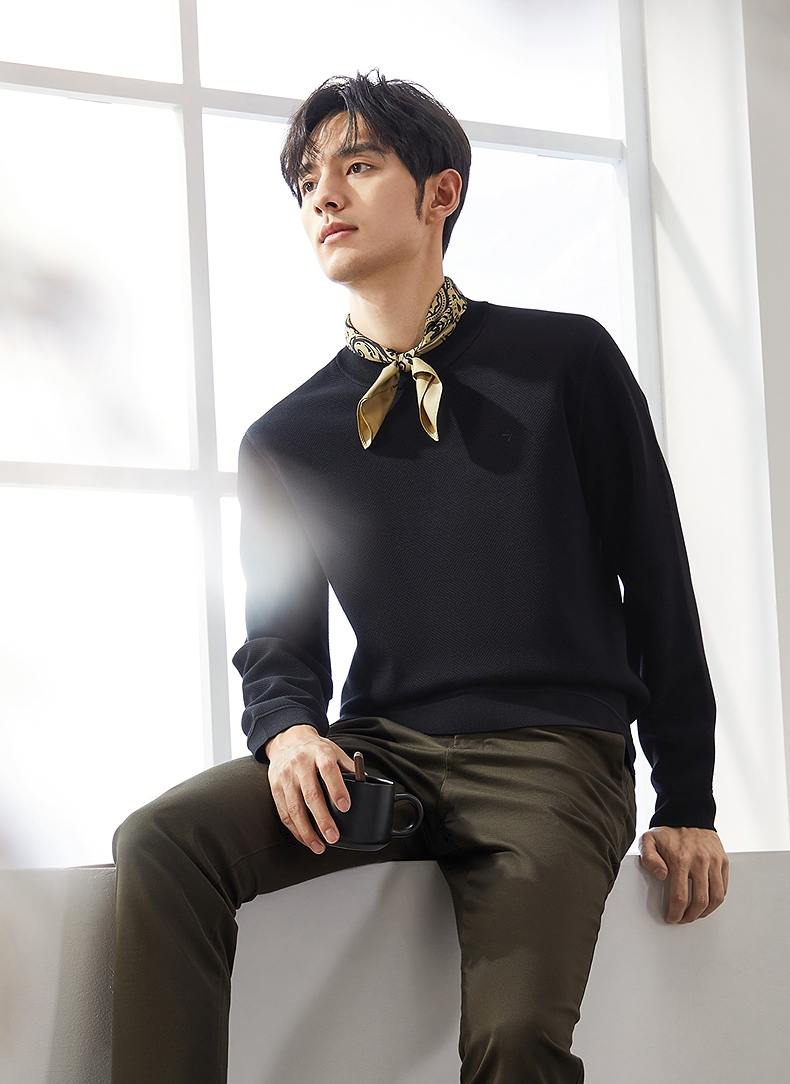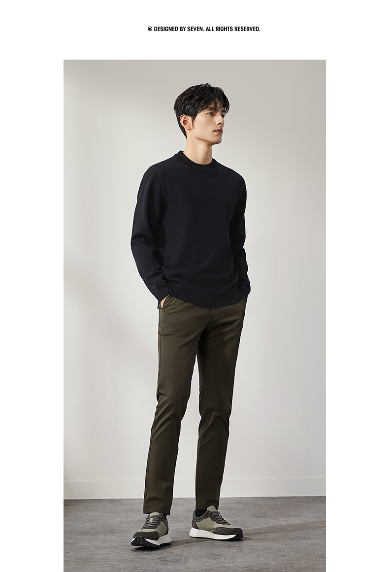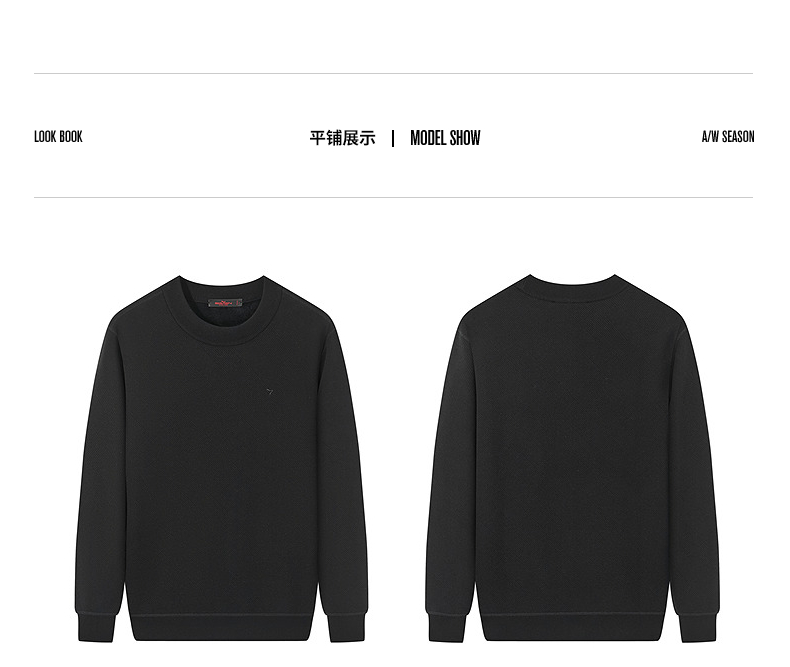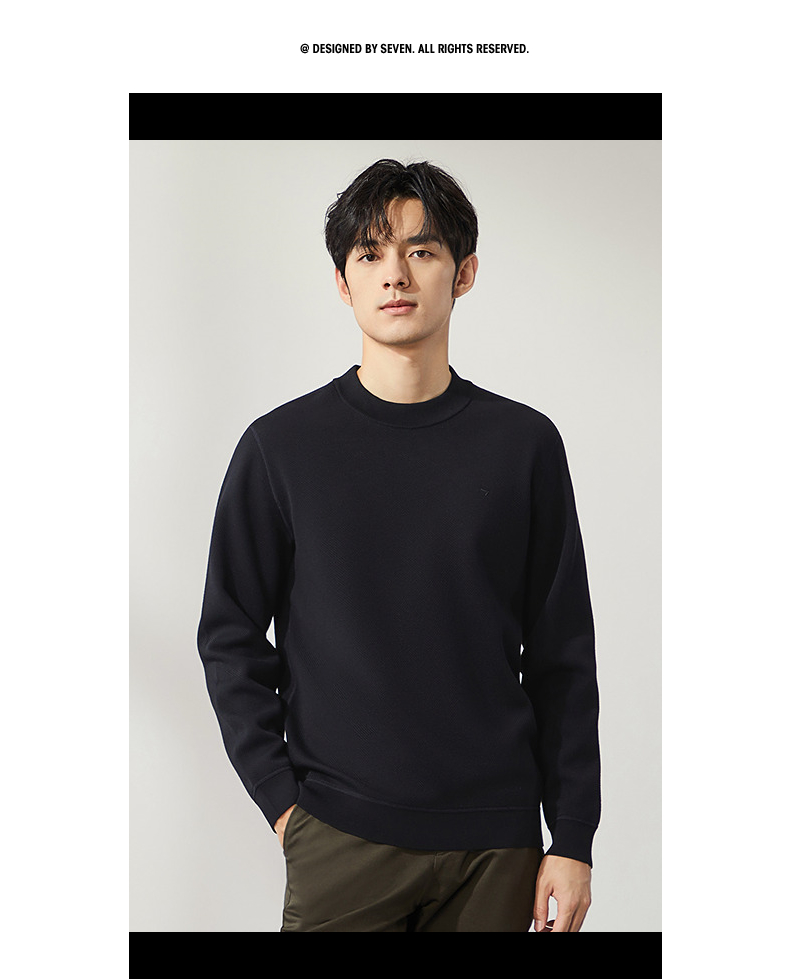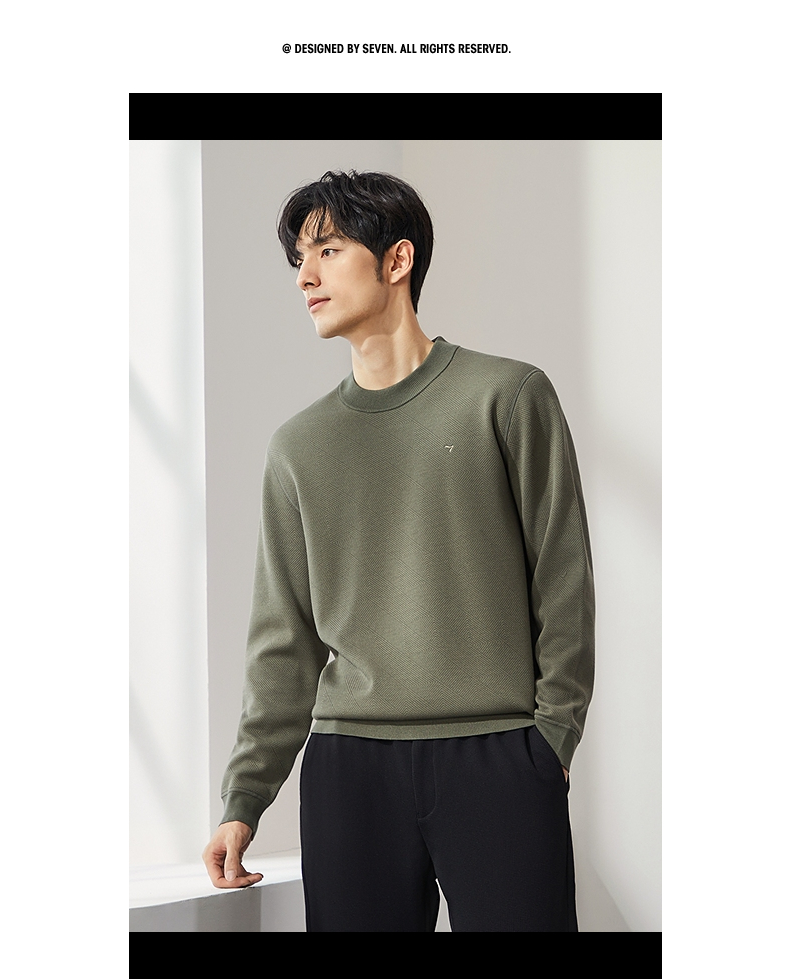 柒牌男士圆领卫衣男2024秋冬新款时尚几何提花加绒保暖休闲套头衫 127W70570