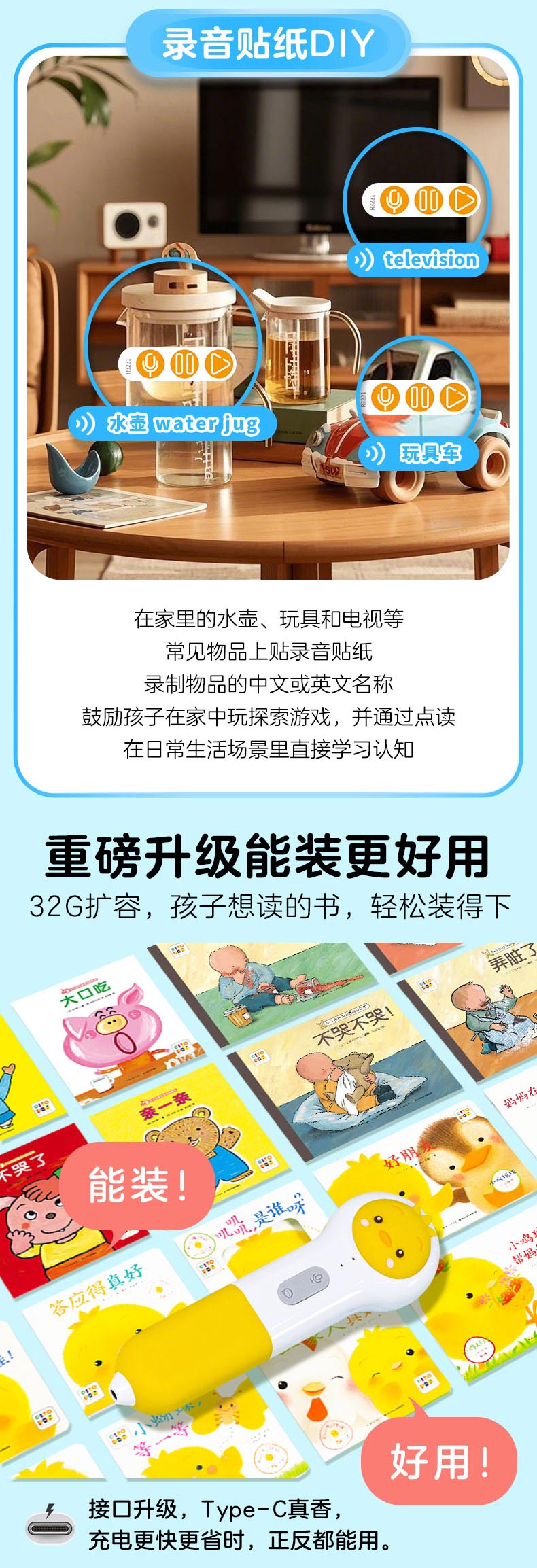 小鸡球球0-6岁全能发展启蒙点读绘本套装32GWifi版