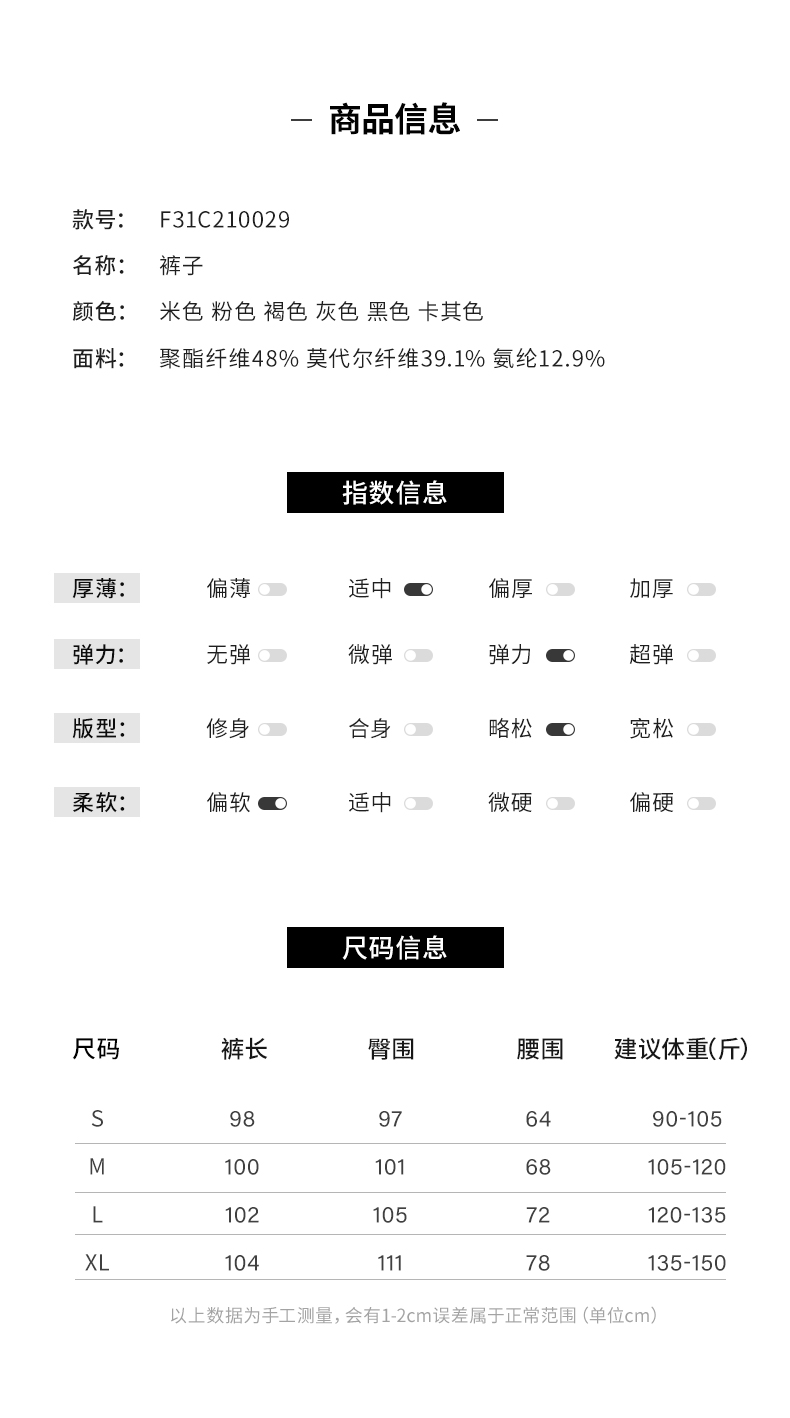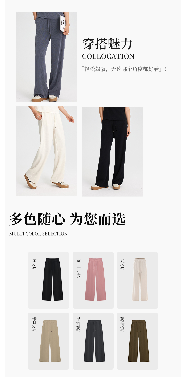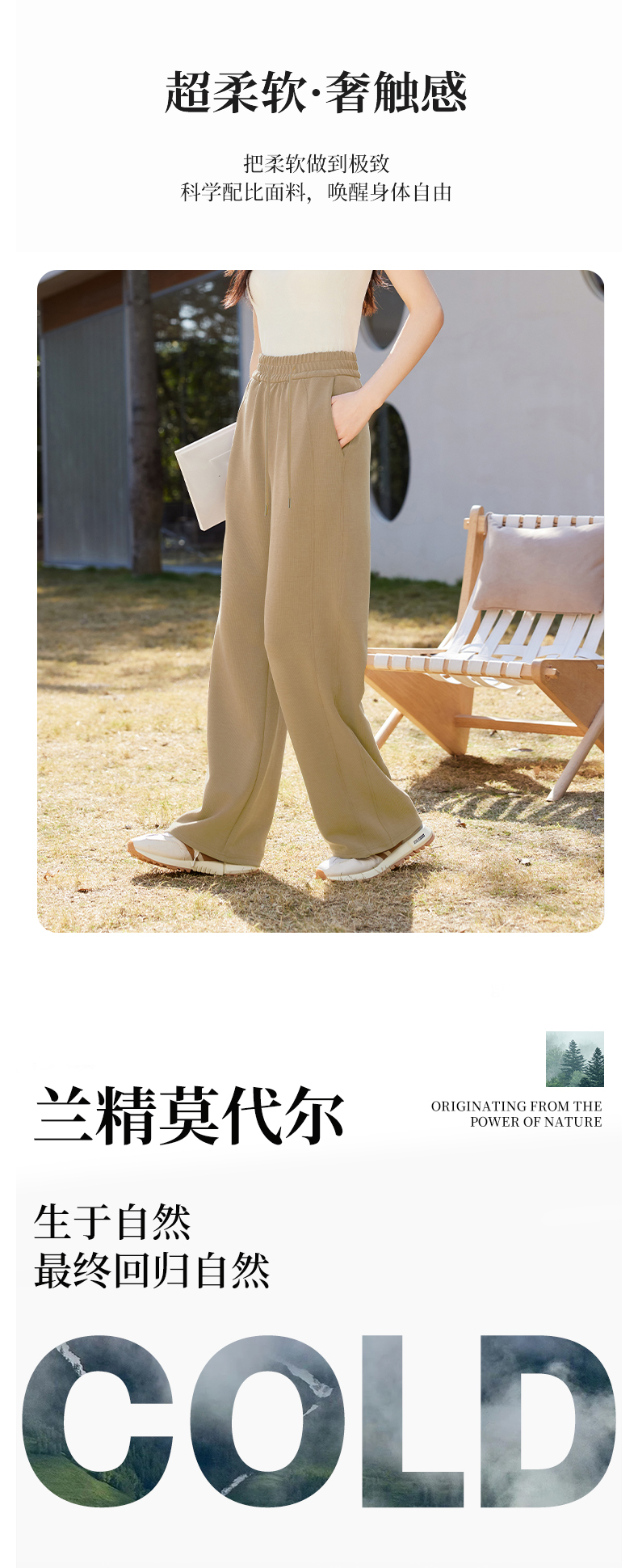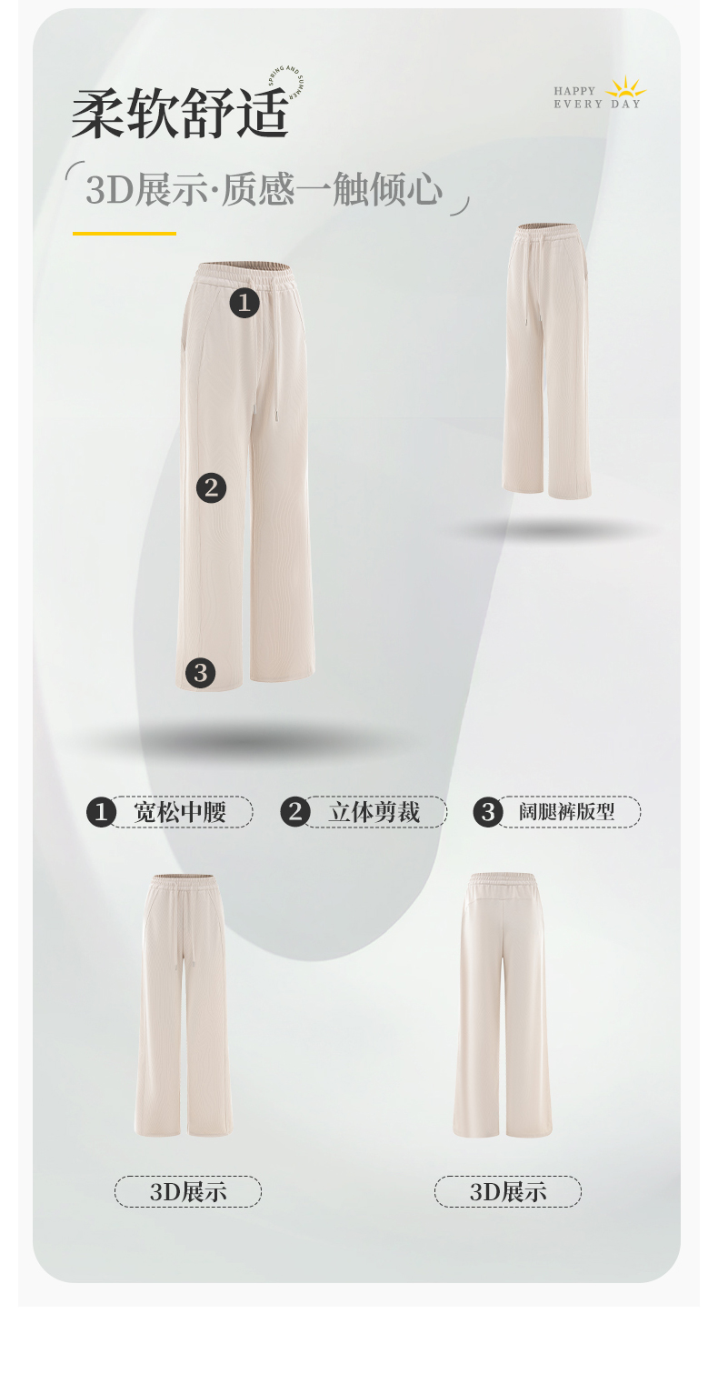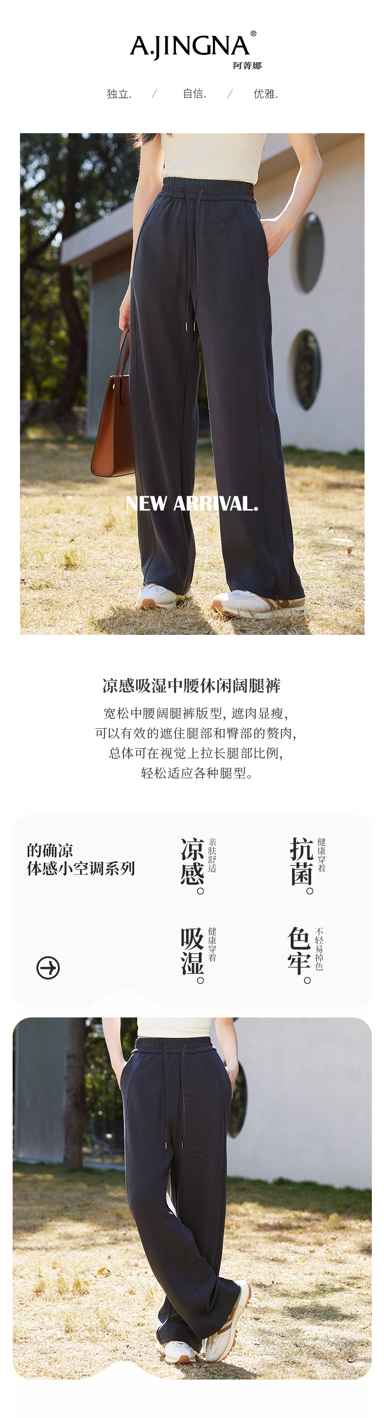 【凉感亲肤】阿菁娜宽松中腰休闲阔腿裤F31C210029