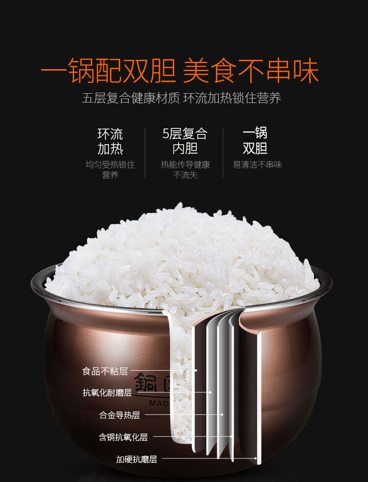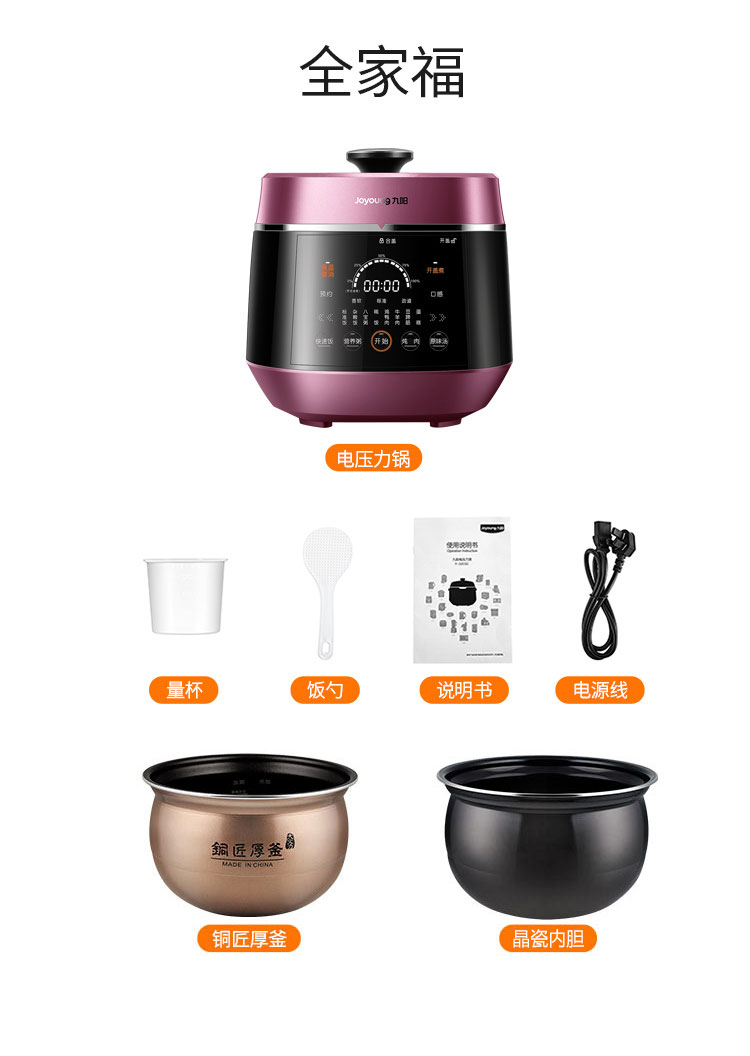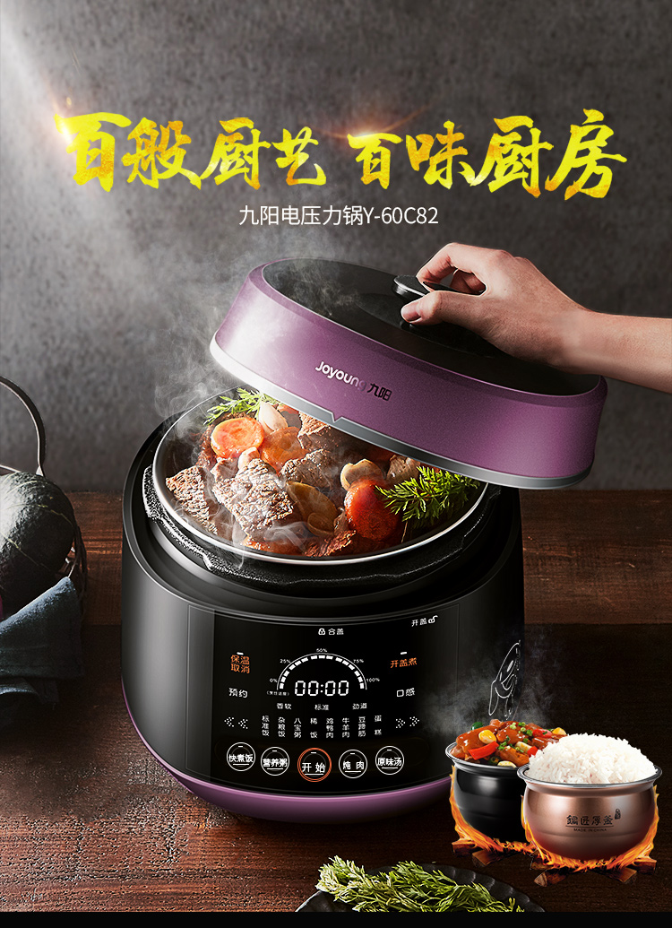 九阳(Joyoung) 6升 电压力锅 高压电饭锅 预约定时一锅双胆 Y-60C82