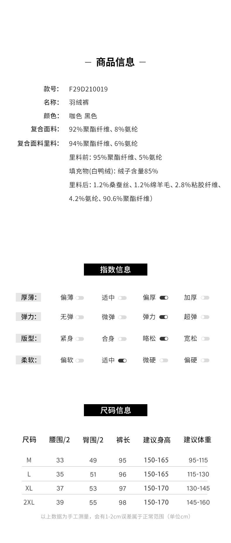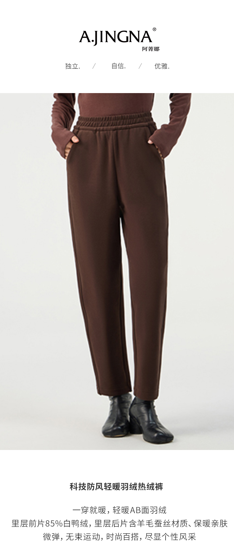 【时尚百搭】阿菁娜冬季新款两色可选科技防风轻暖羽绒热裤F29D210019