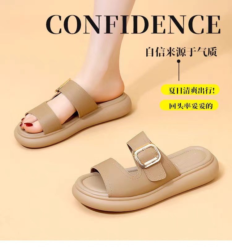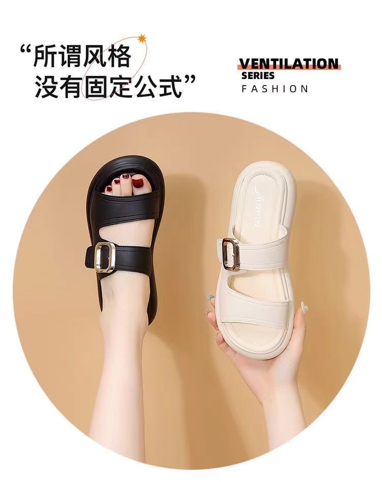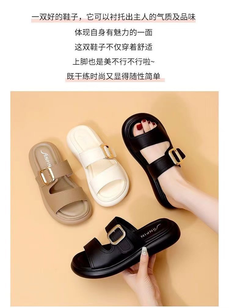 【不仅穿着舒适!上脚也是美不行不行啦~】爆款仙女风一字凉拖女夏季外穿新款百搭配裙踩屎感百搭拖鞋。ry