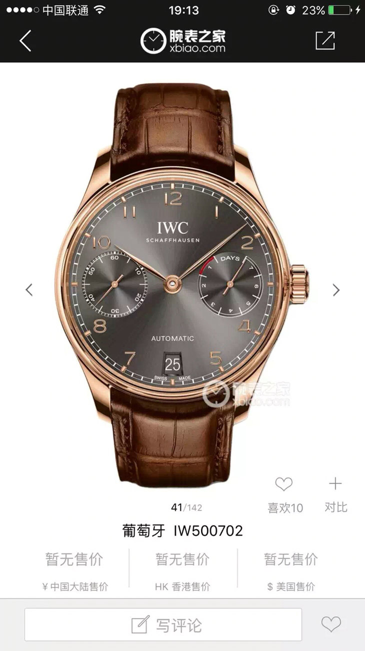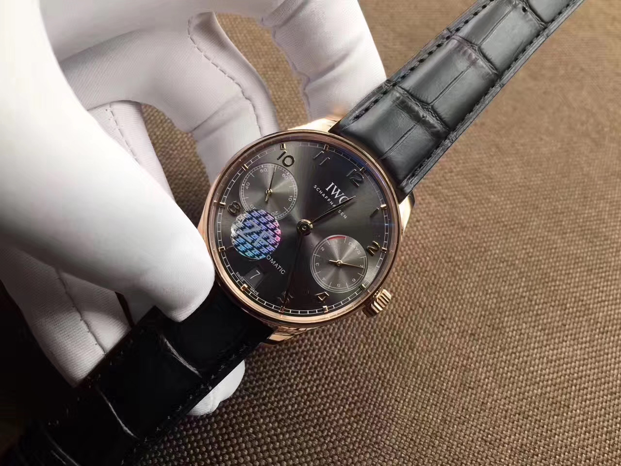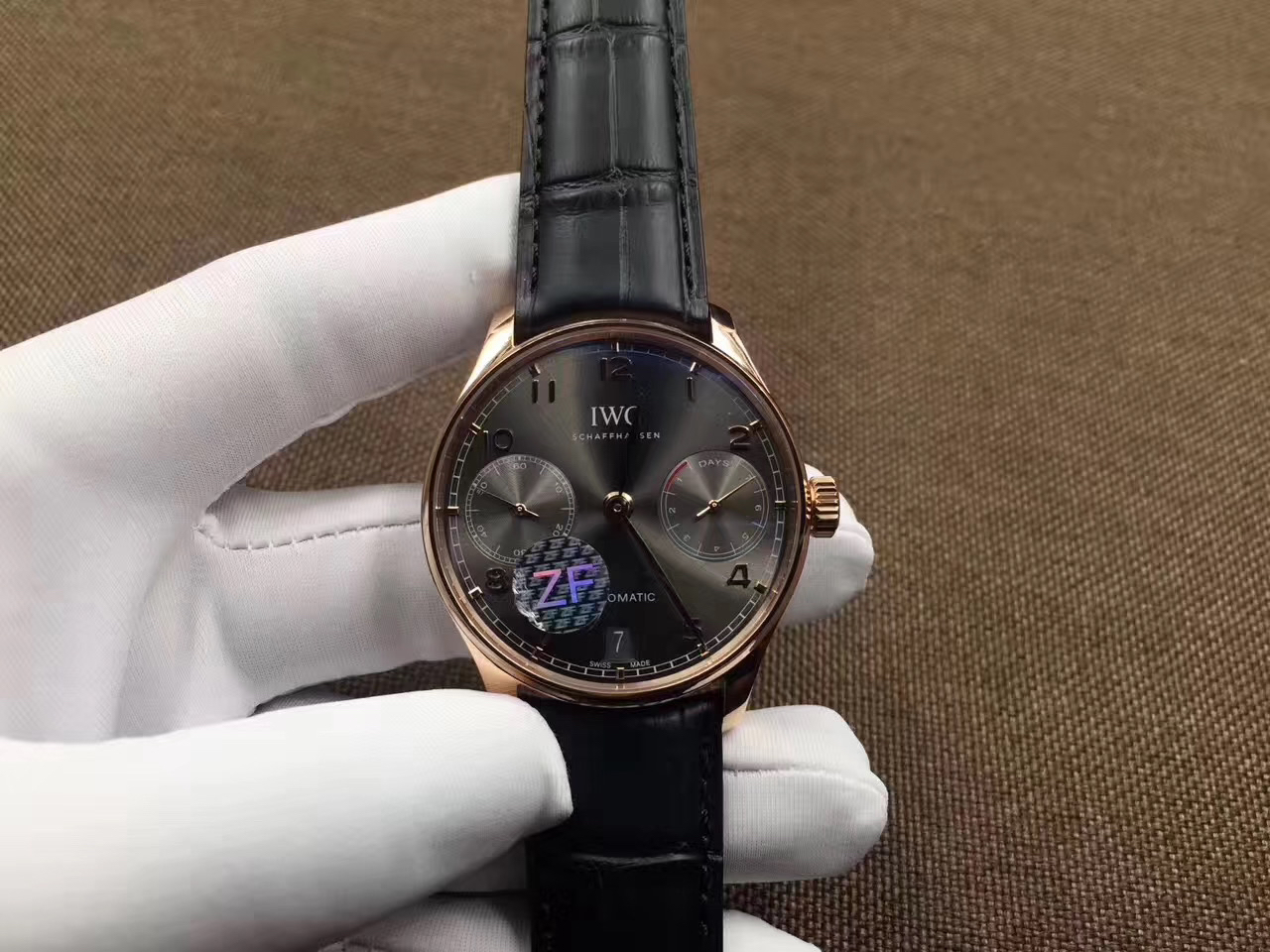 ZF万国V5版新葡7。型号:IW500702系列:葡萄牙定制52010自动机械机芯,动力储备:168小时外观表径:42.3毫米,男士,皮表带,透底