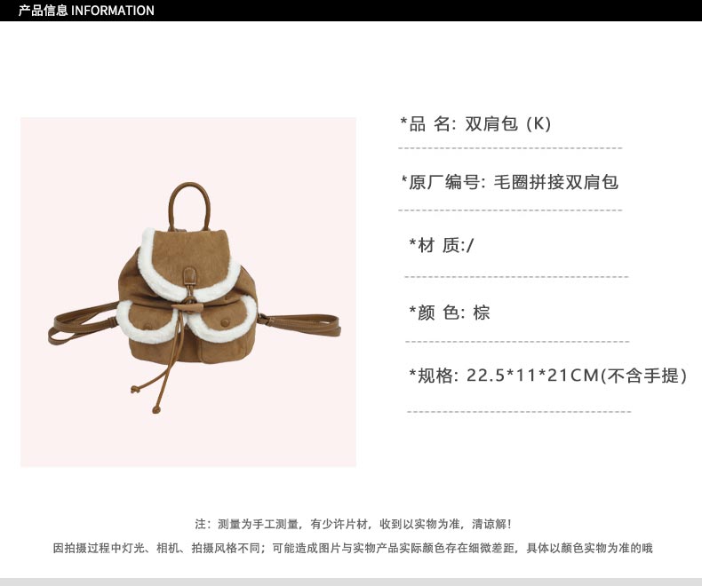 毛圈拼接双肩包-纪念日百货门店同款167493142