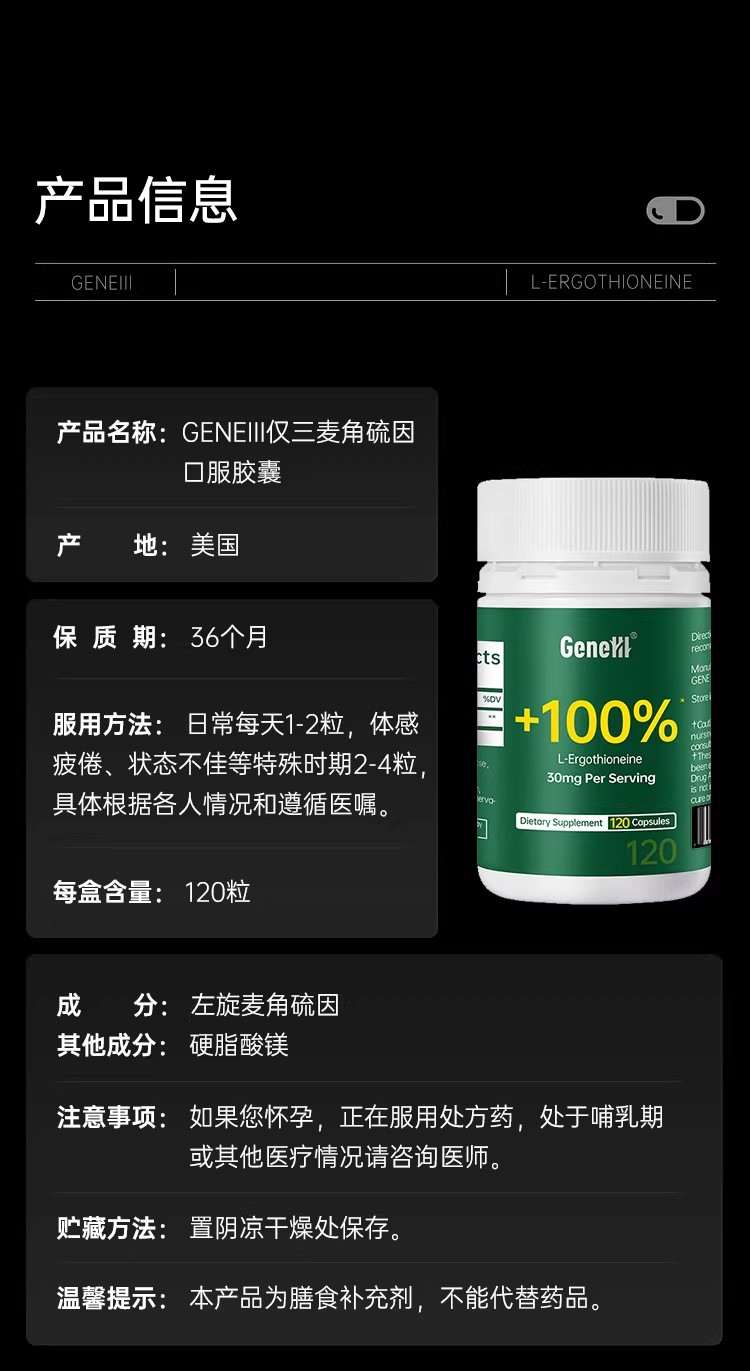仅三麦角硫因口服胶囊全新升级限定款!!全面加量!一瓶120粒!