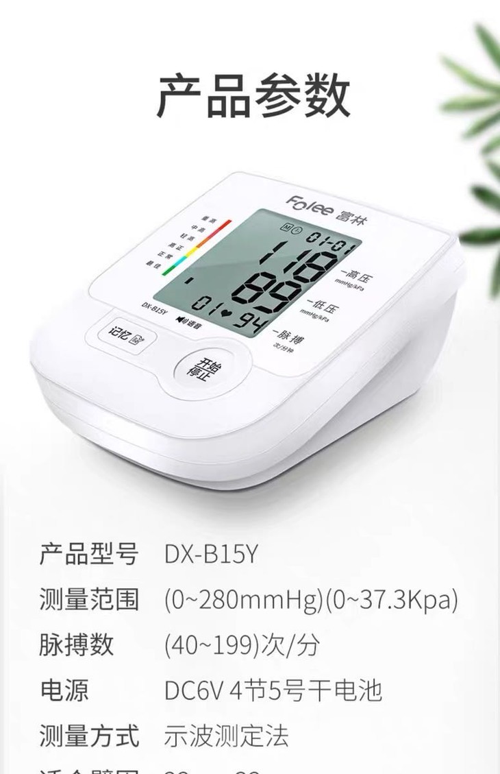 福林电子血压计家用臂式测量仪高精准自动测量_DX