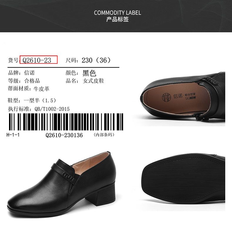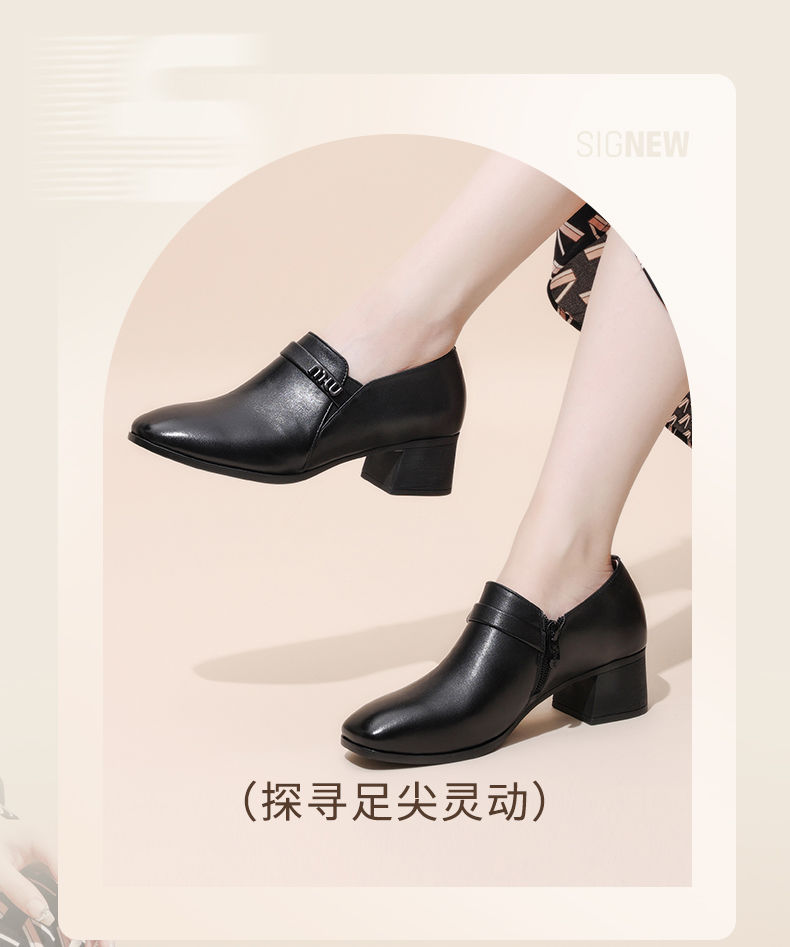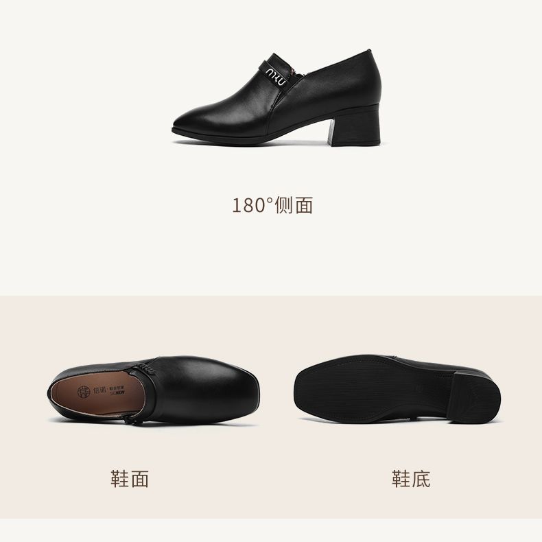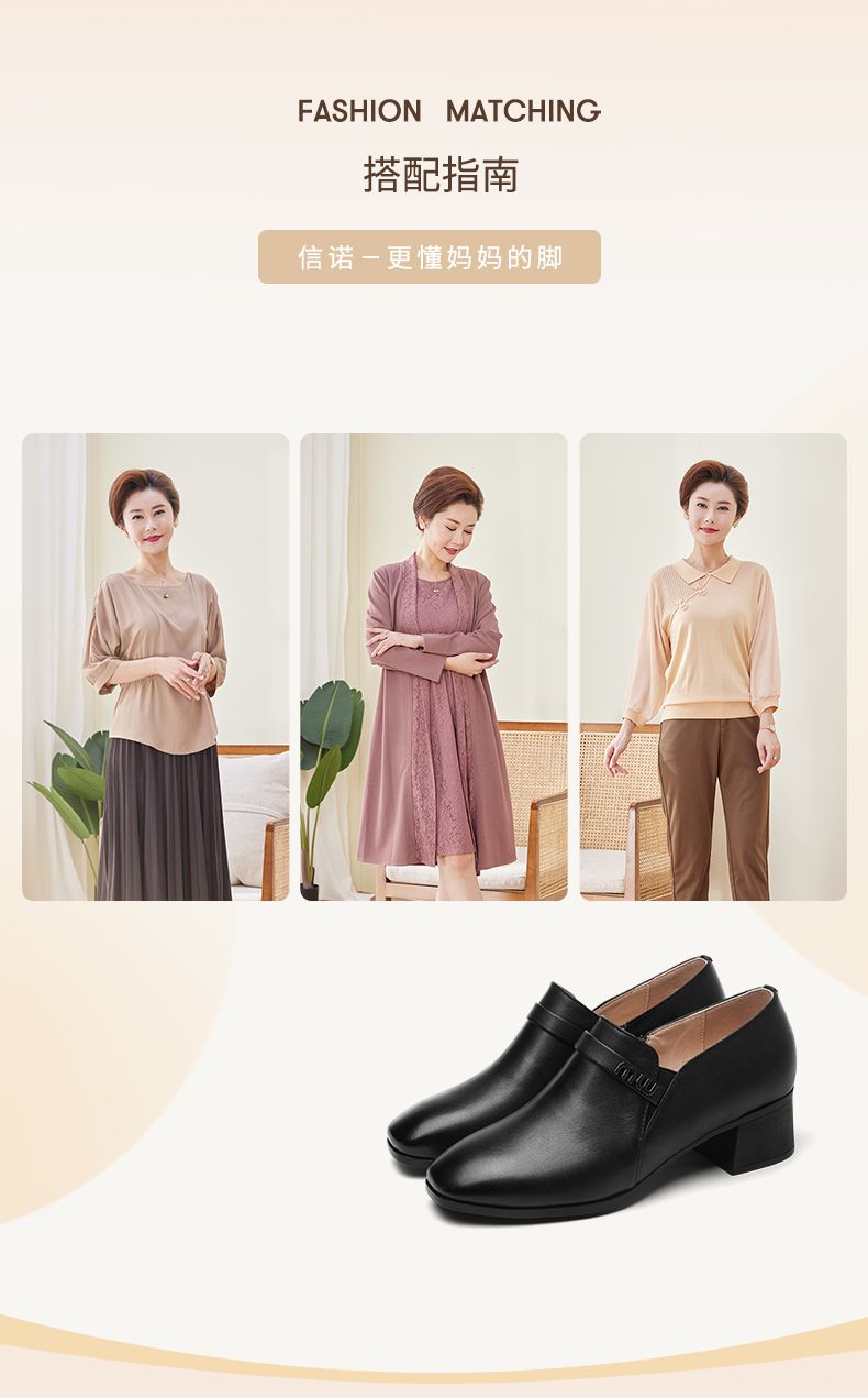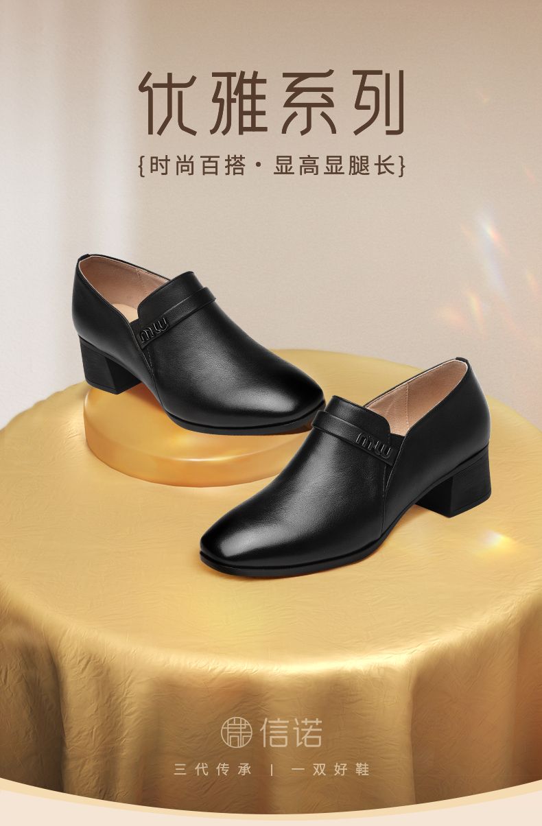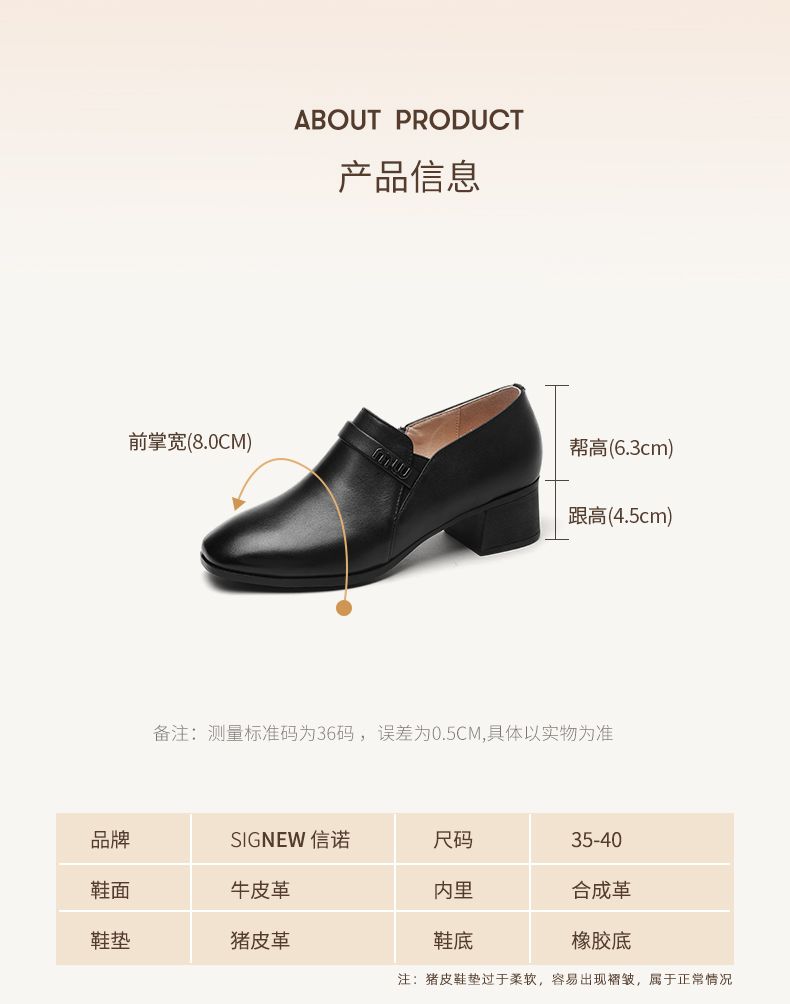 信诺真皮粗跟单鞋2024新款秋季深口英伦风皮鞋中跟女鞋中年妈妈鞋Q2610-23
