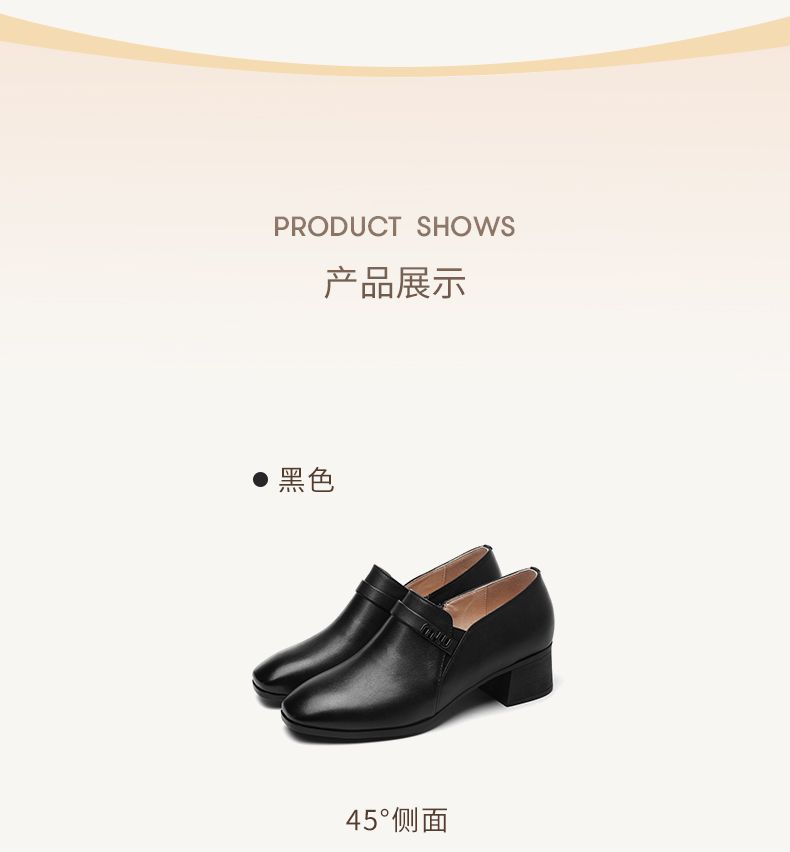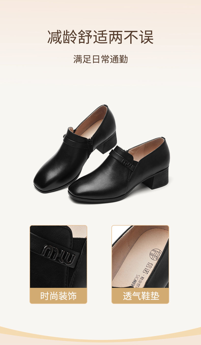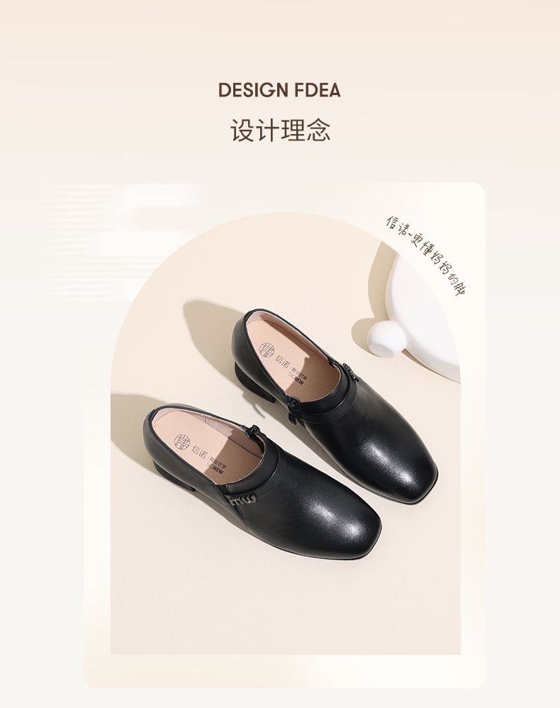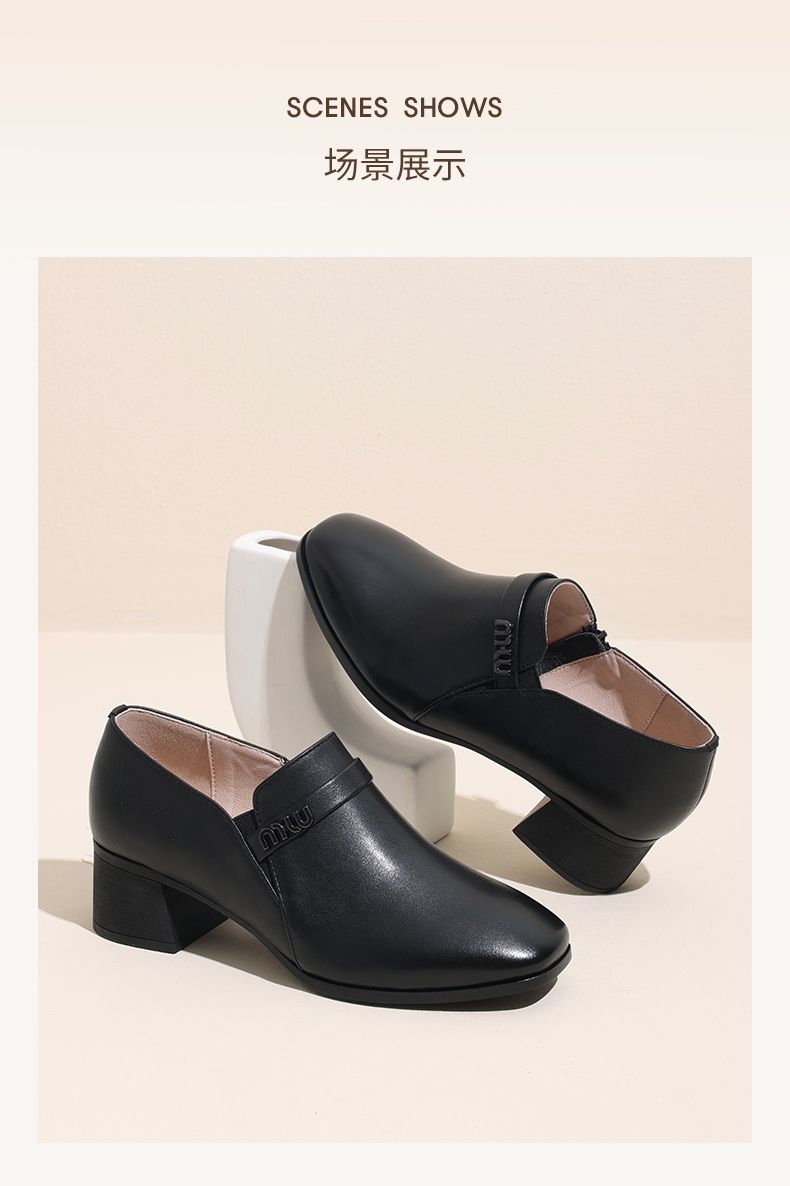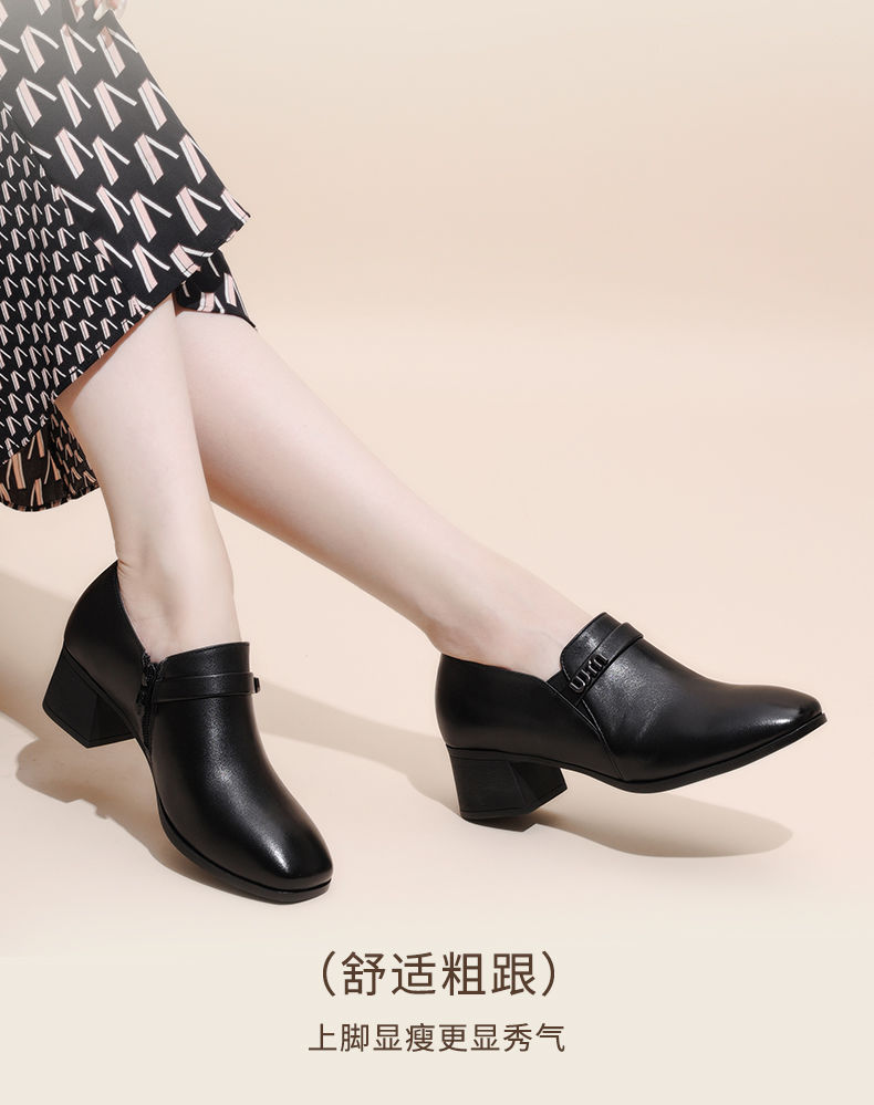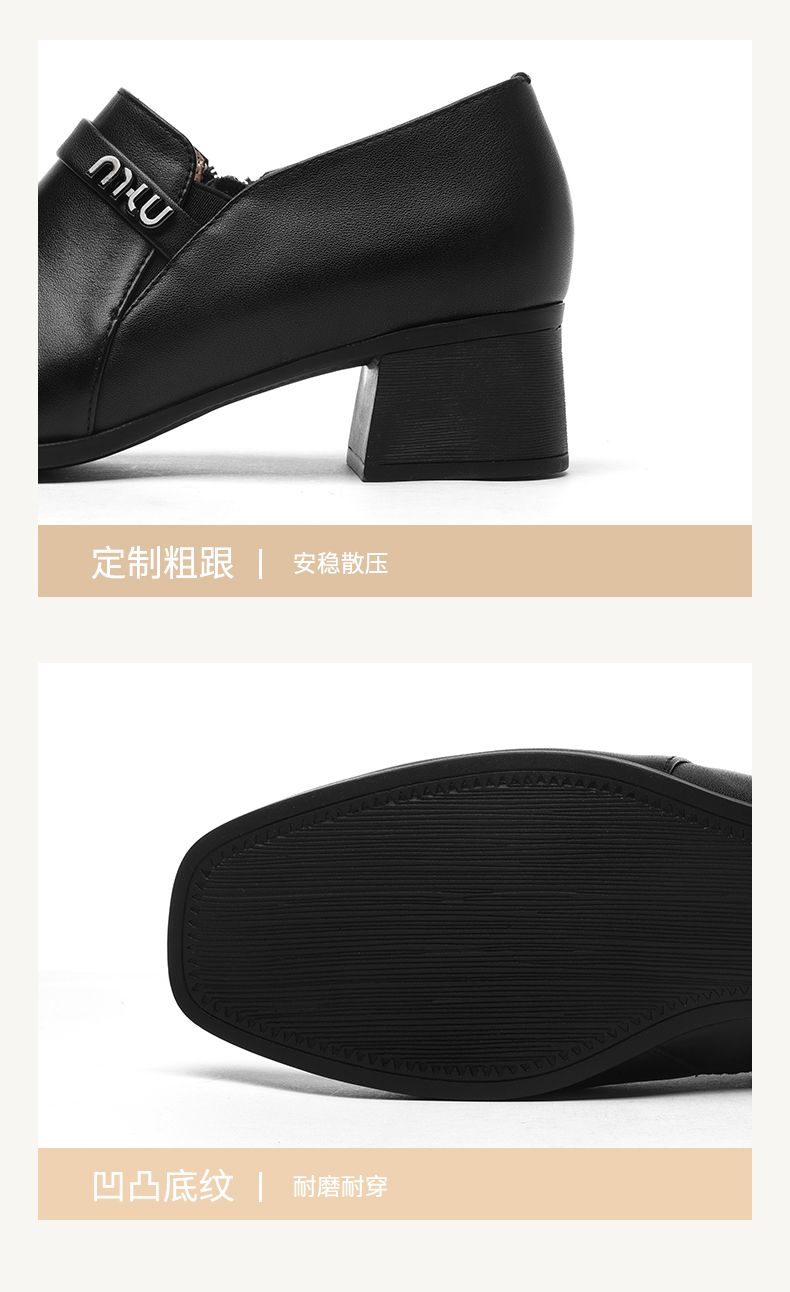 信诺真皮粗跟单鞋2024新款秋季深口英伦风皮鞋中跟女鞋中年妈妈鞋Q2610-23
