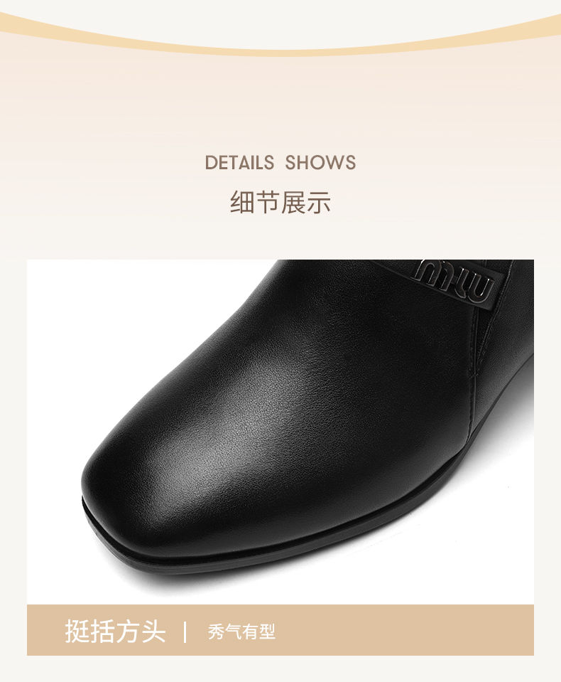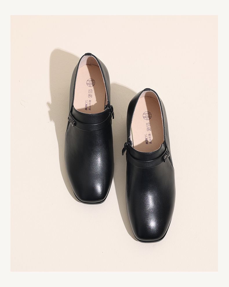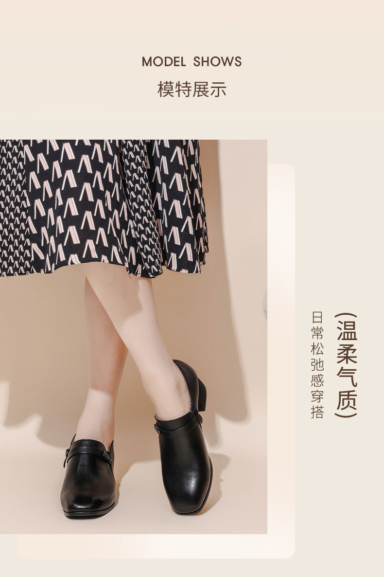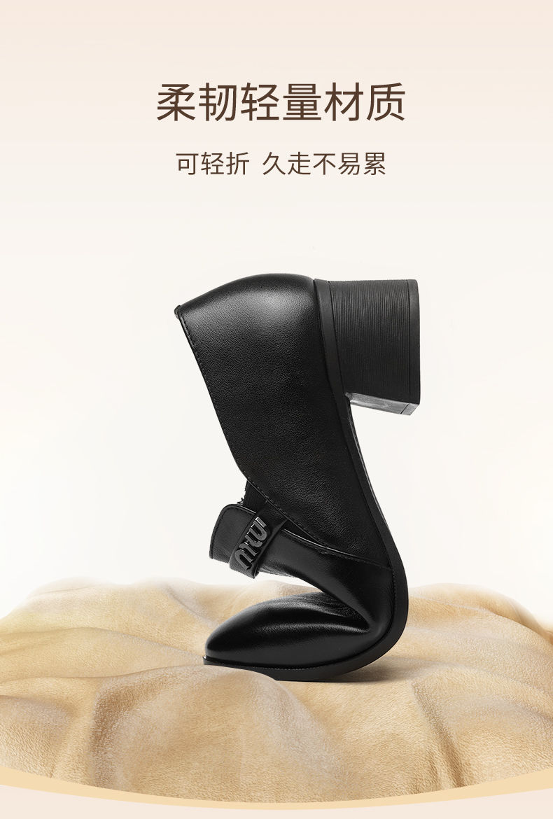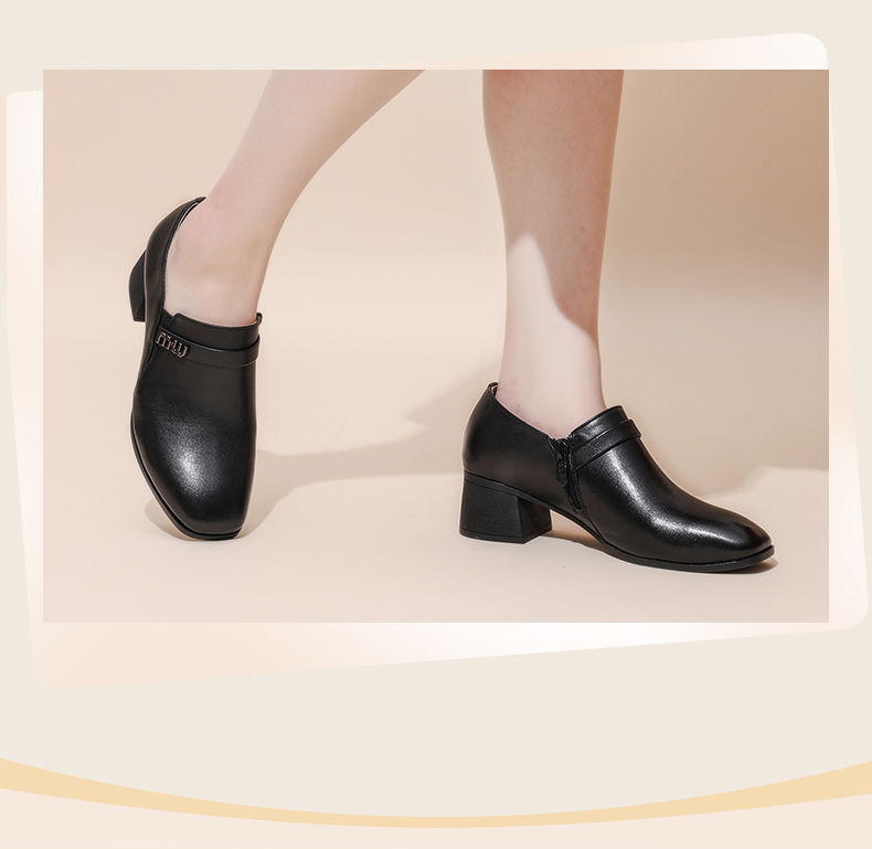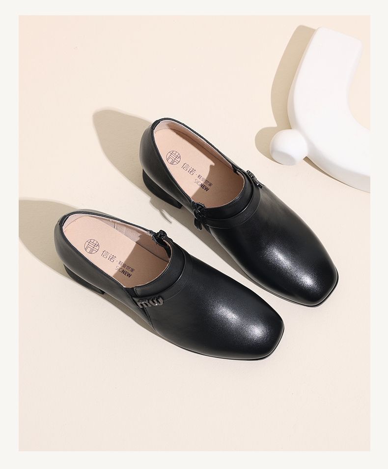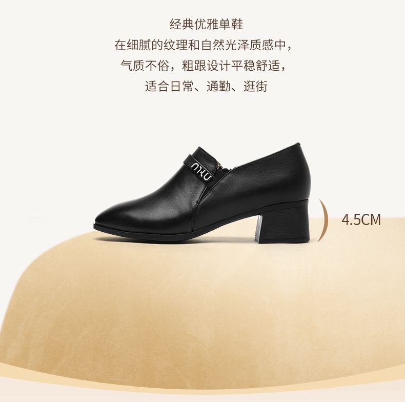 信诺真皮粗跟单鞋2024新款秋季深口英伦风皮鞋中跟女鞋中年妈妈鞋Q2610-23