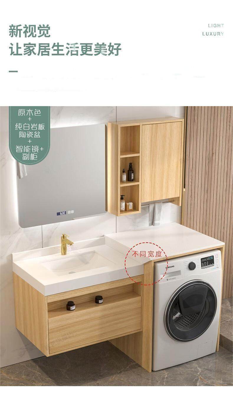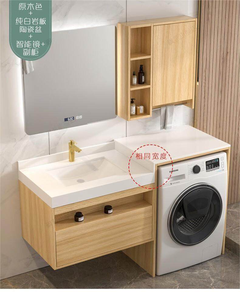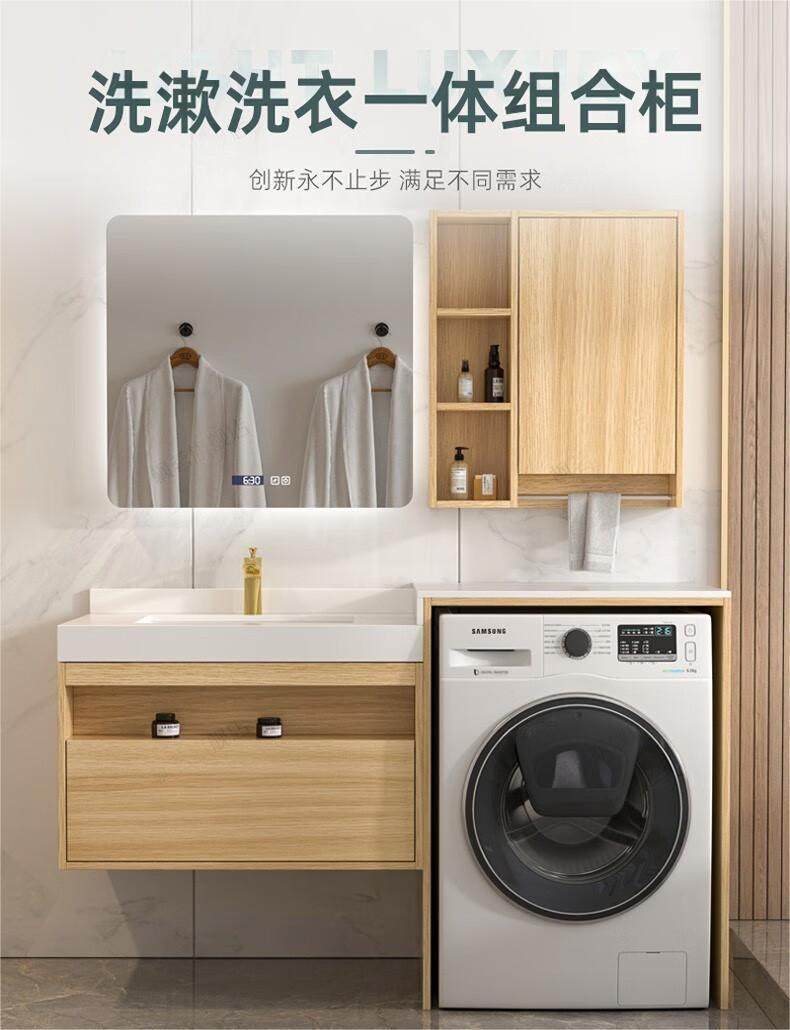洗漱洗手台洗衣机卫生间原木台一体岩板风陶瓷组合盆现代柜浴室柜