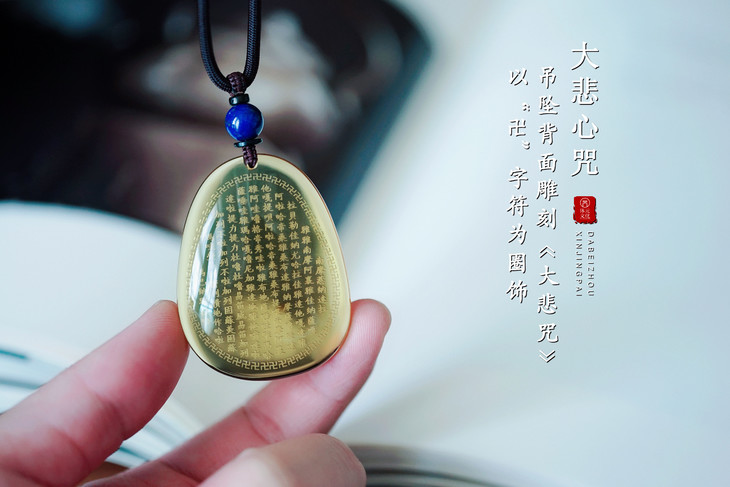 吊坠背面雕刻《大悲咒》,以“卍”字符为圈饰。