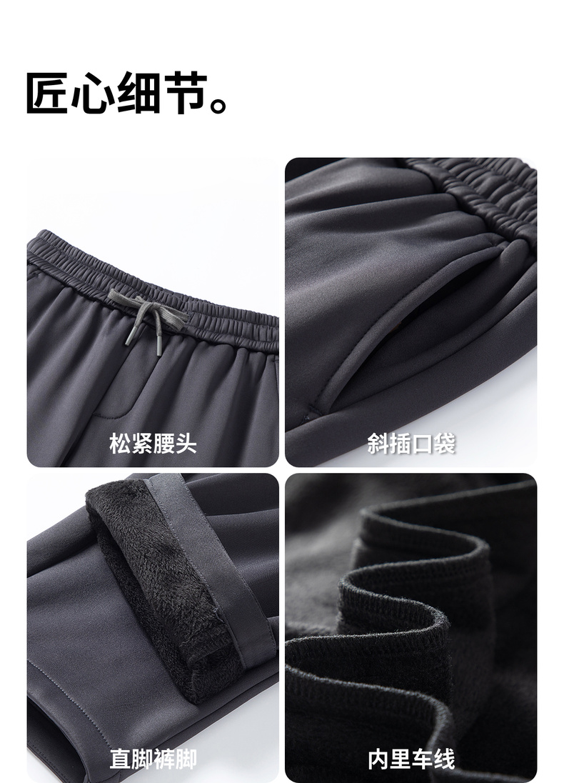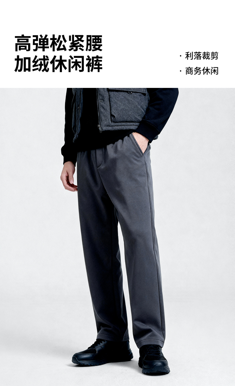 圣得西2025年冬季男士加绒休闲松紧长裤高弹保暖直筒时尚休闲裤
