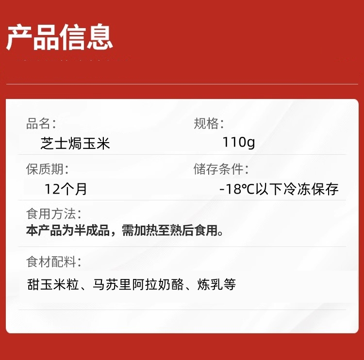 110g 鑫维德 芝士焗玉米/榴莲/红薯/南瓜 冷冻半成品 锡纸焗玉米 烤箱空气炸锅烤熟食用