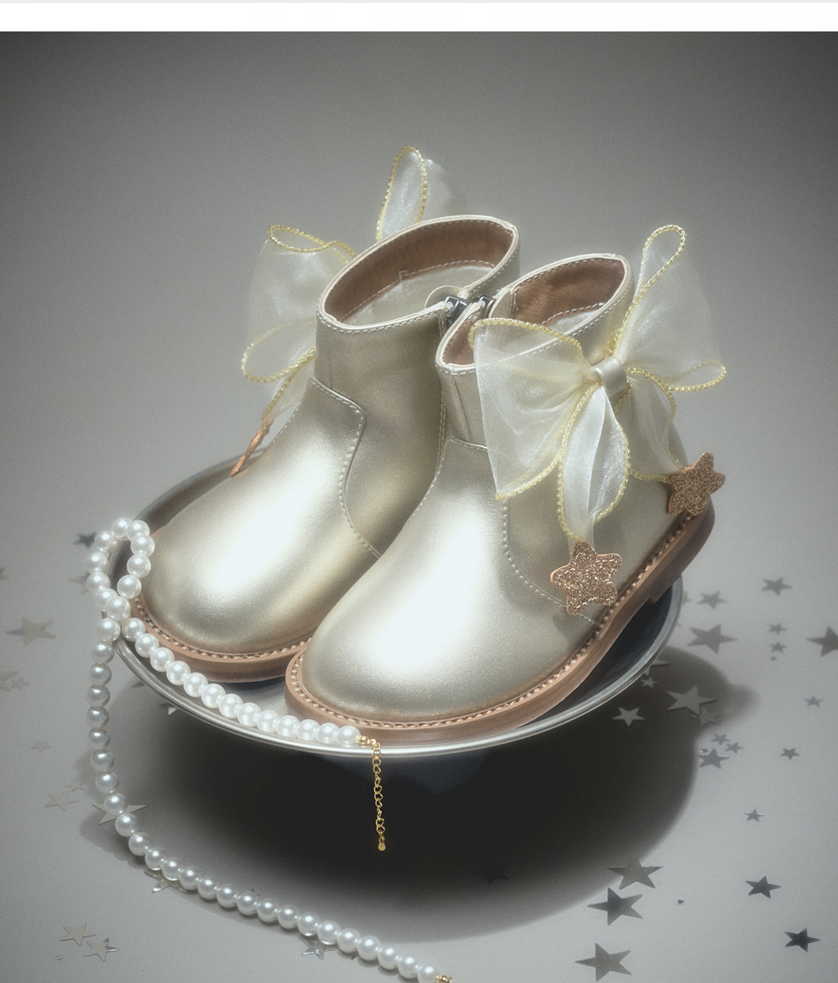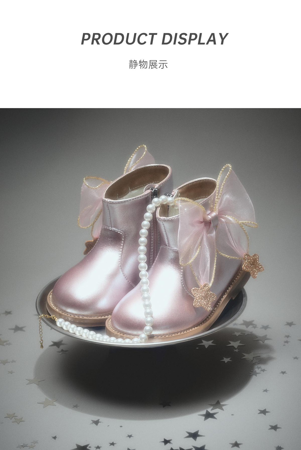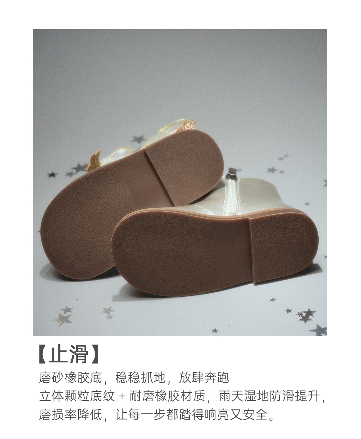 littletime女童靴子2025秋冬新款儿童韩版蝴蝶结星星加绒公主靴