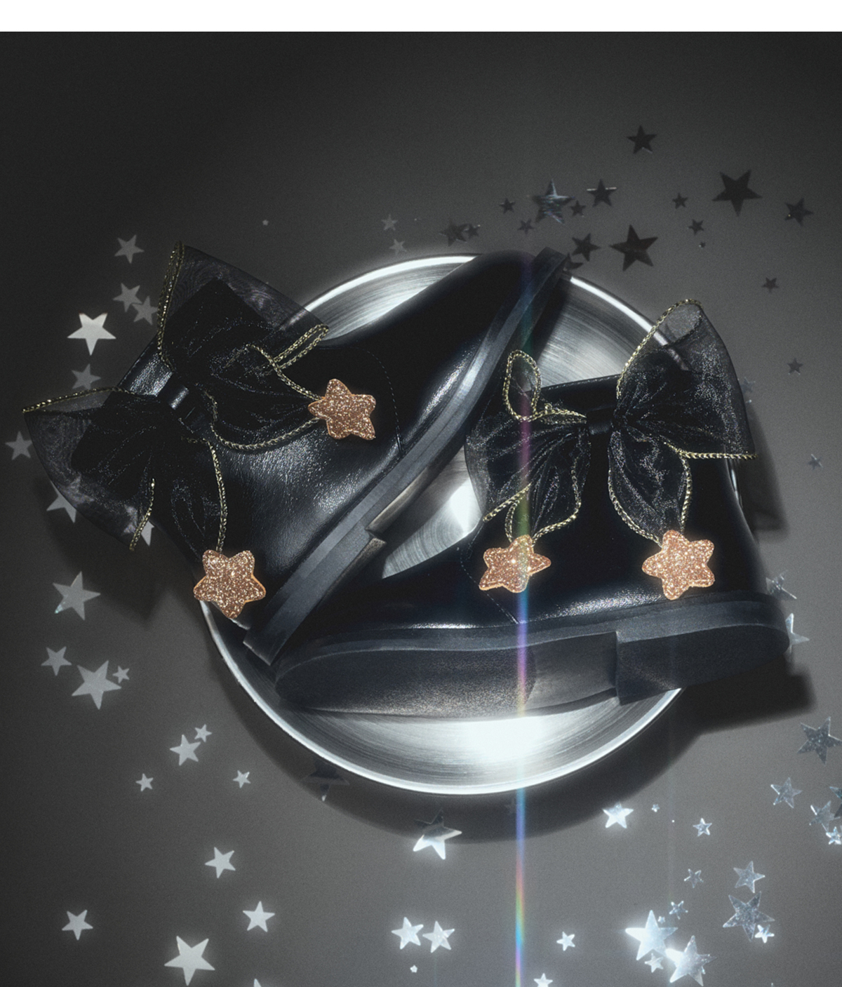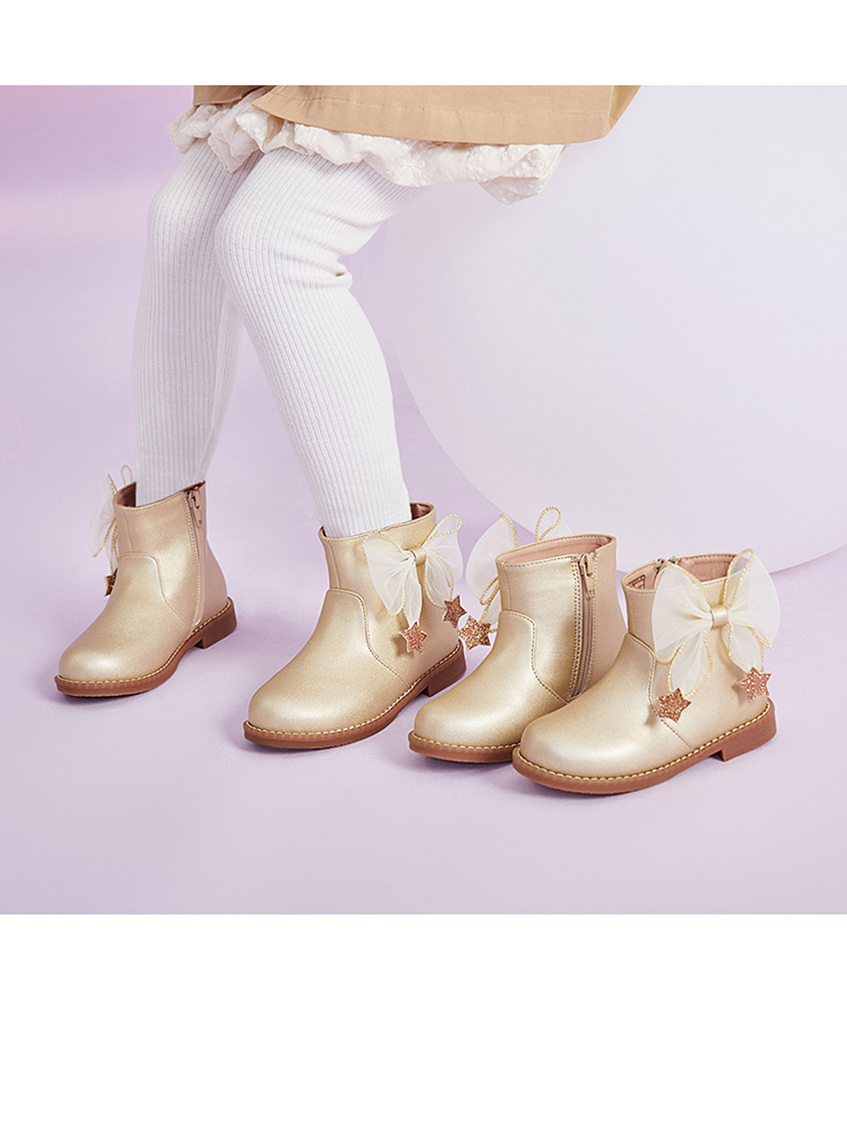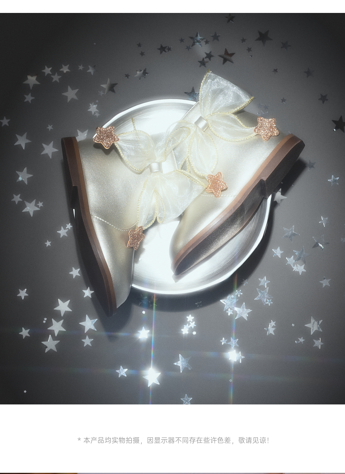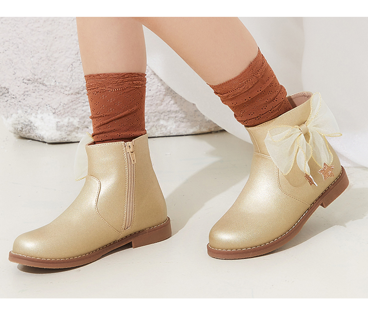 littletime女童靴子2025秋冬新款儿童韩版蝴蝶结星星加绒公主靴