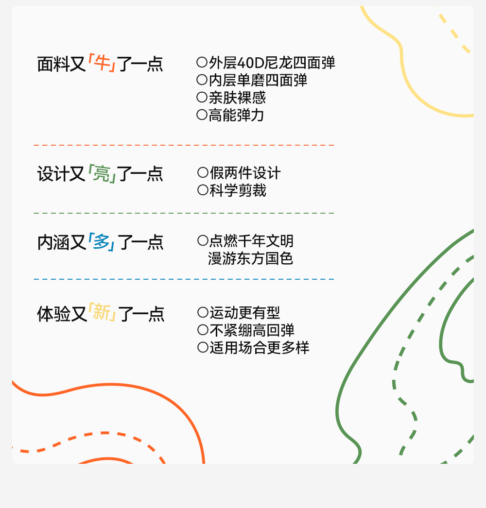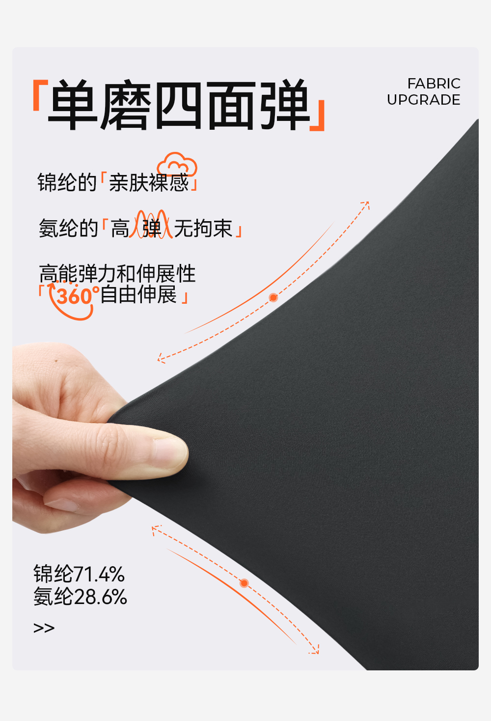 内里打底裤面料为锦氨混纺,锦纶细腻亲肤,且氨纶(弹力纤维)比例高达28.6%,这就带来了非常高能的弹力和伸展性,可以360度自由伸展