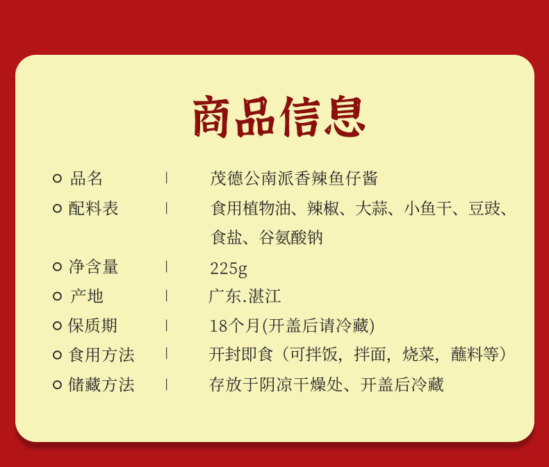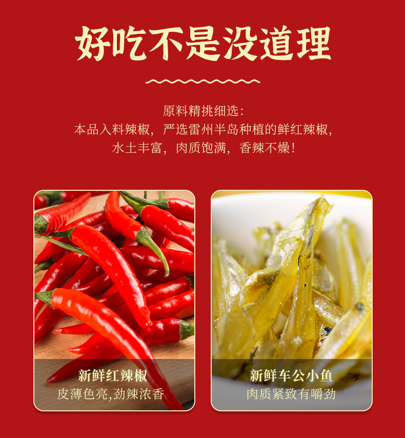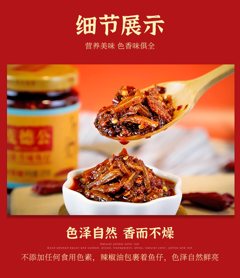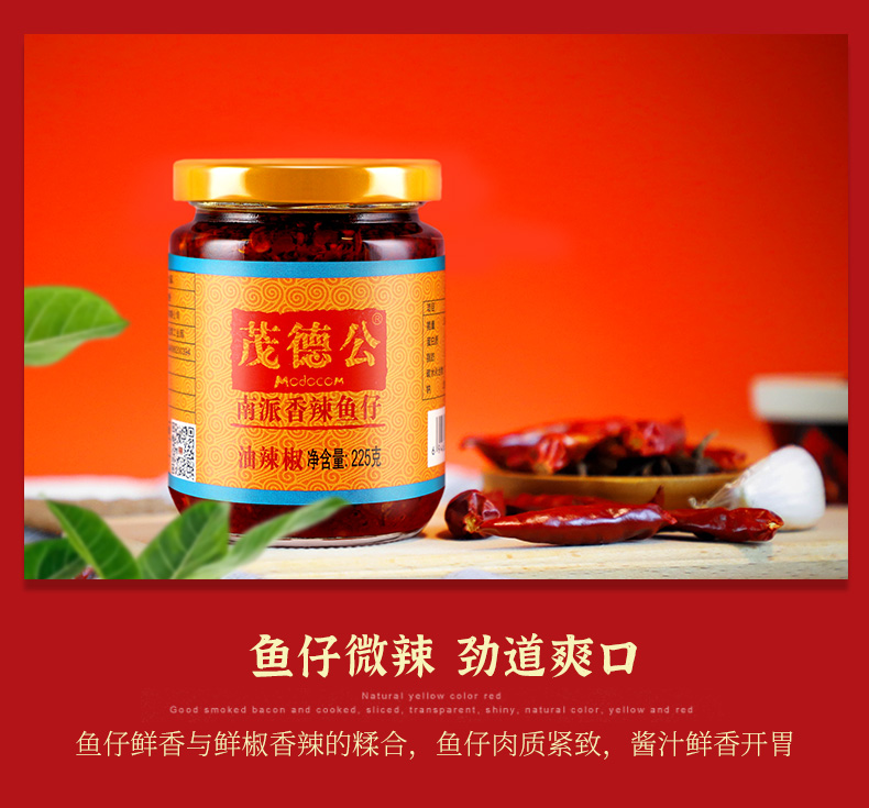 茂德公香辣鱼仔酱蒜蓉辣椒酱特辣鱼籽酱自制剁椒辣酱拌饭酱下饭菜225g