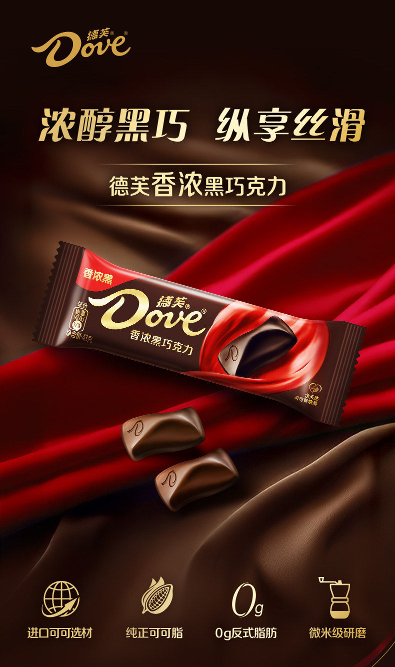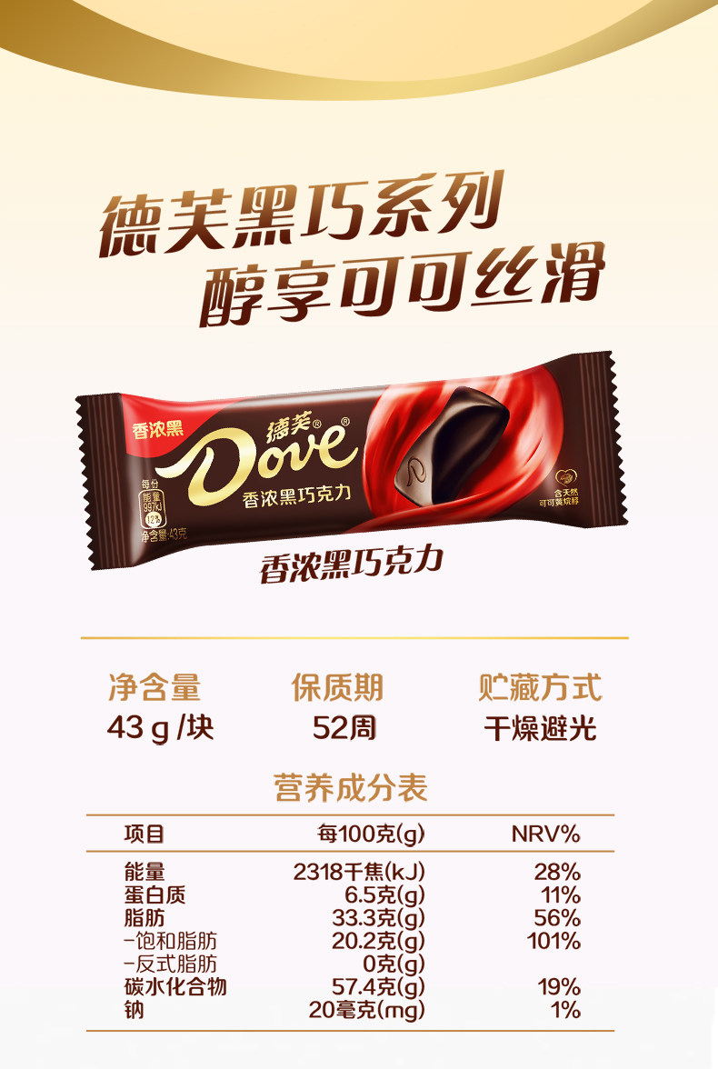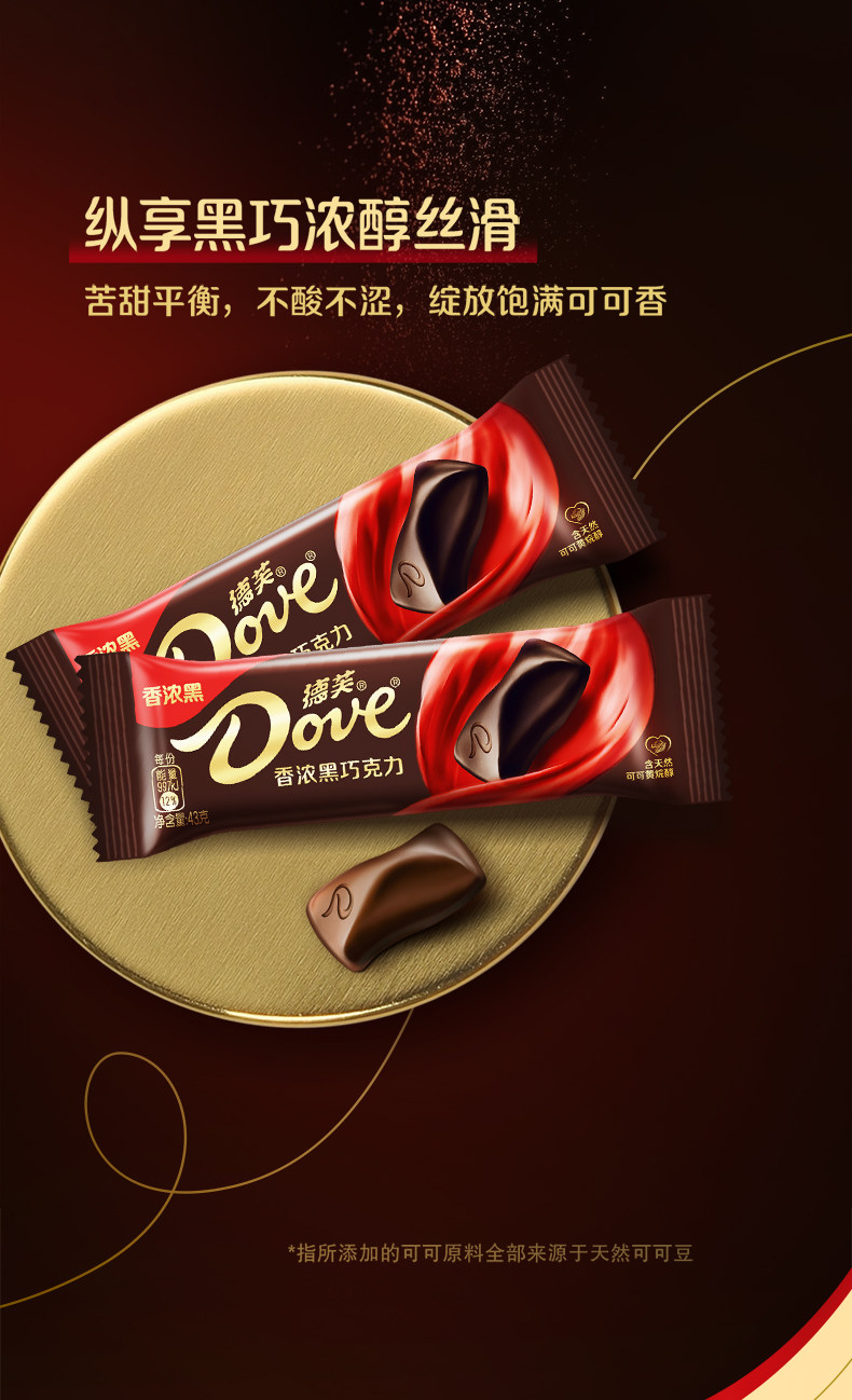 43g/块 德芙 香浓黑巧克力 排块办公司休闲零食纯可可脂巧克力