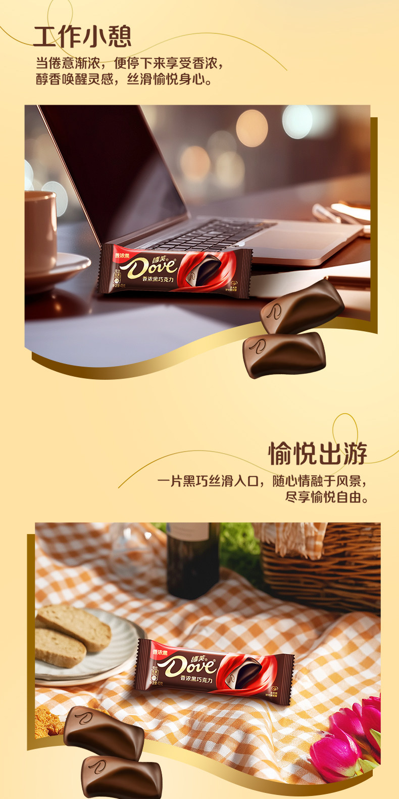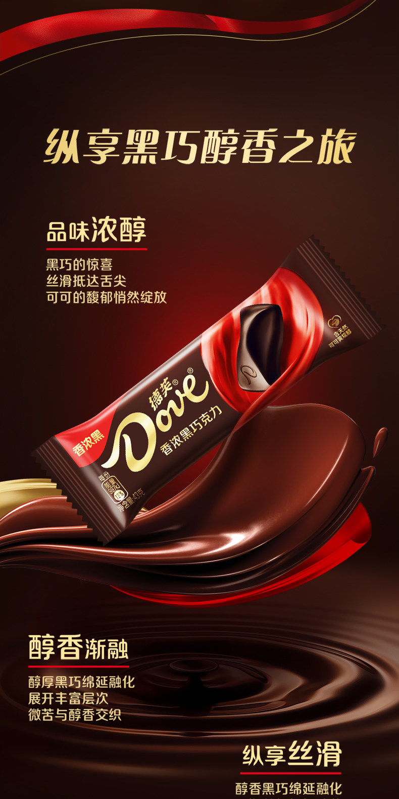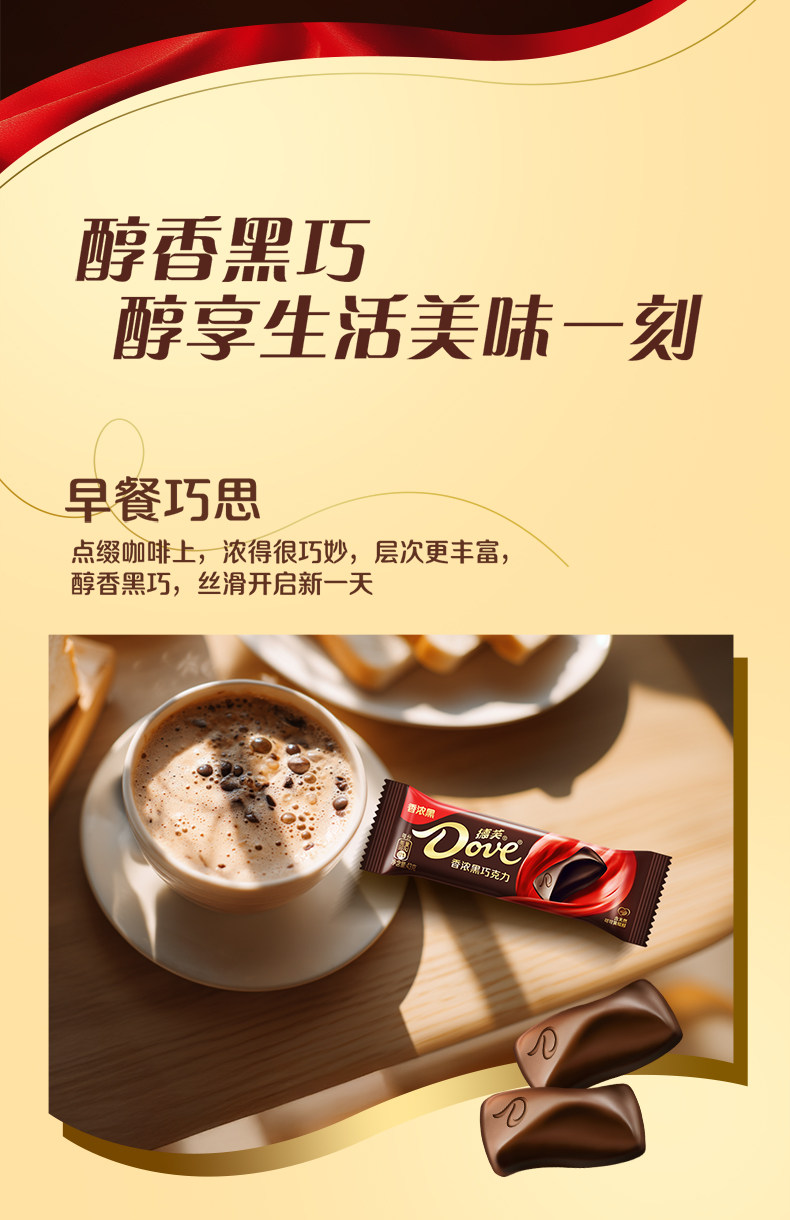 43g/块 德芙 香浓黑巧克力 排块办公司休闲零食纯可可脂巧克力