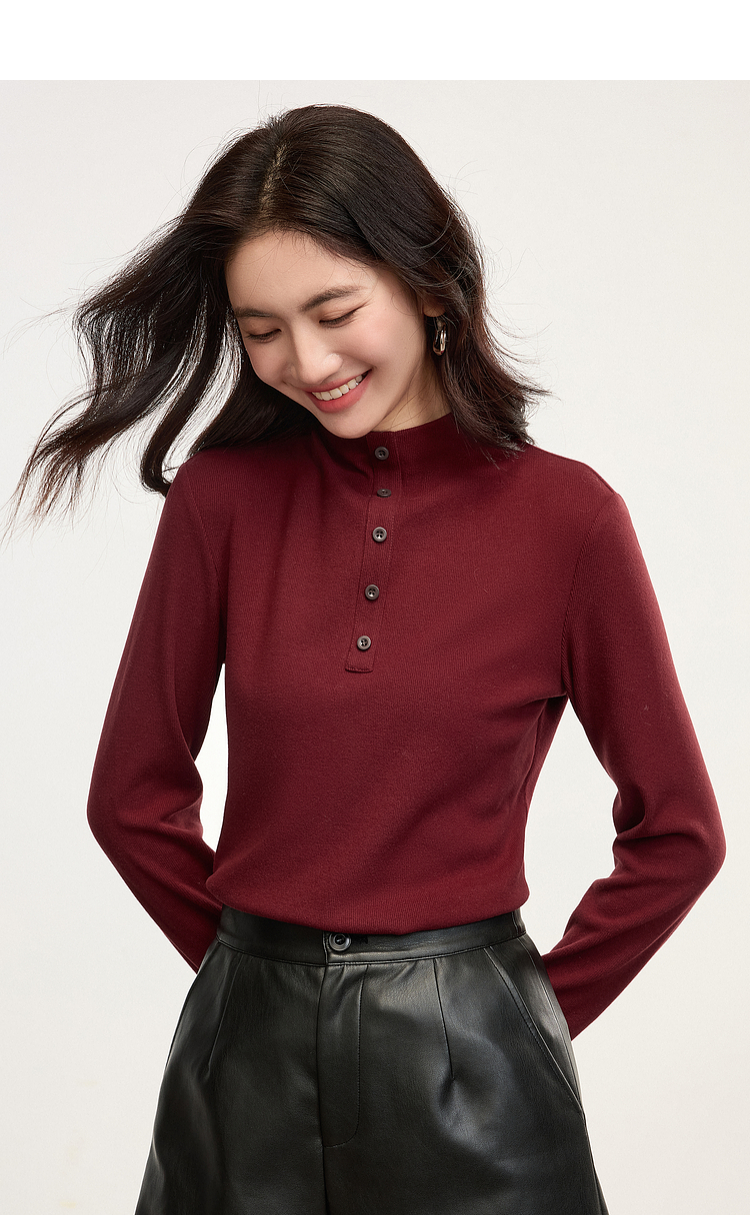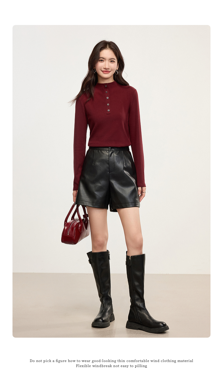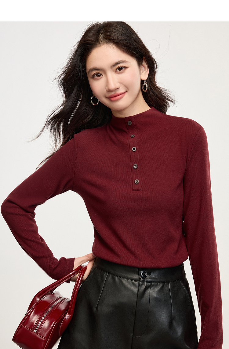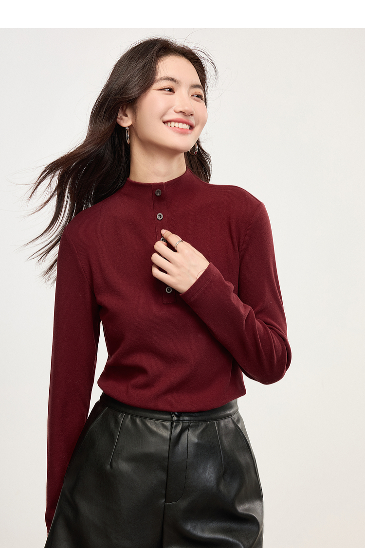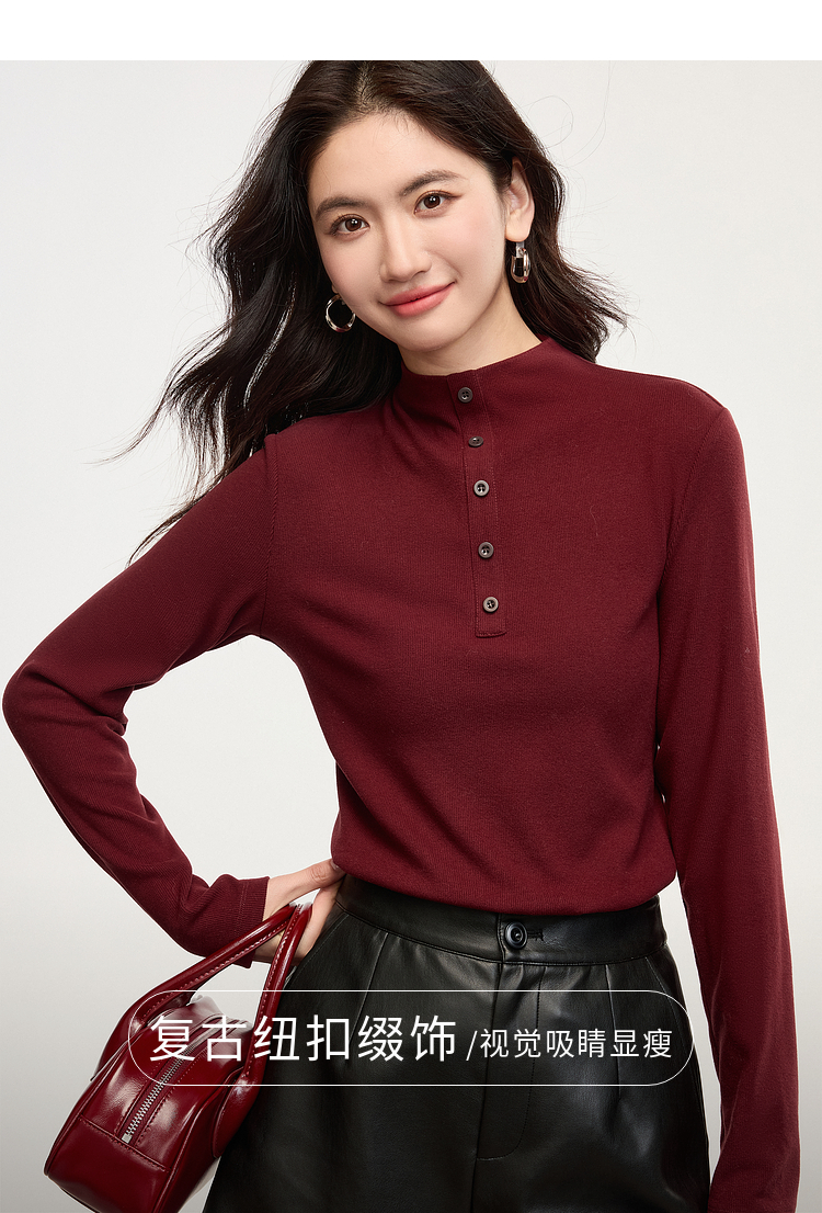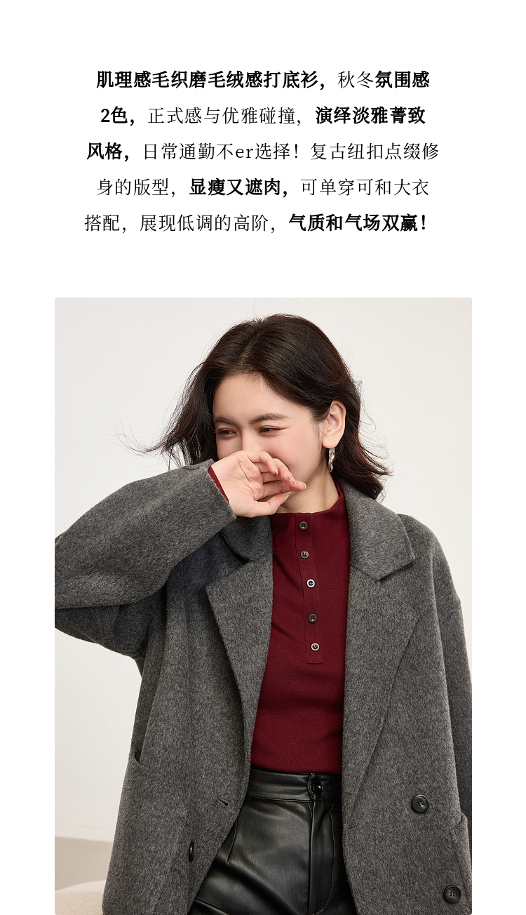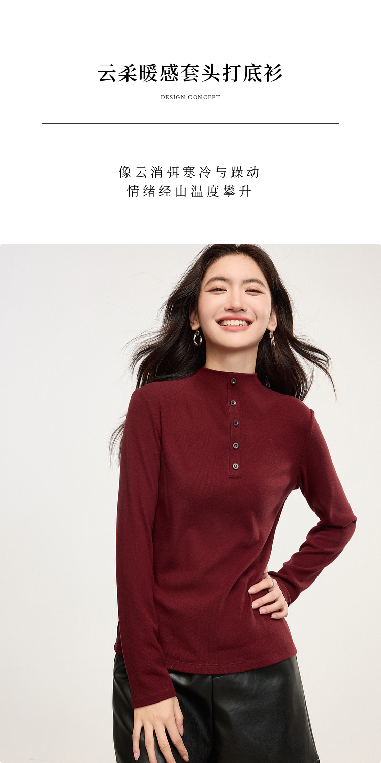 【年货节】熙世界2025秋冬新款双面绒针织上衣内搭长袖T恤打底衫安可拉红