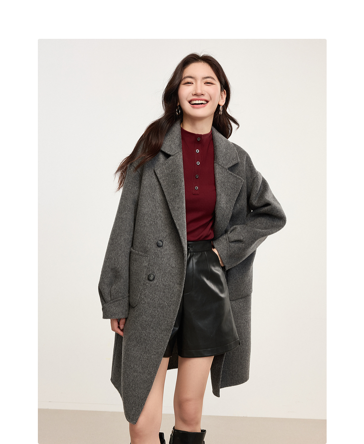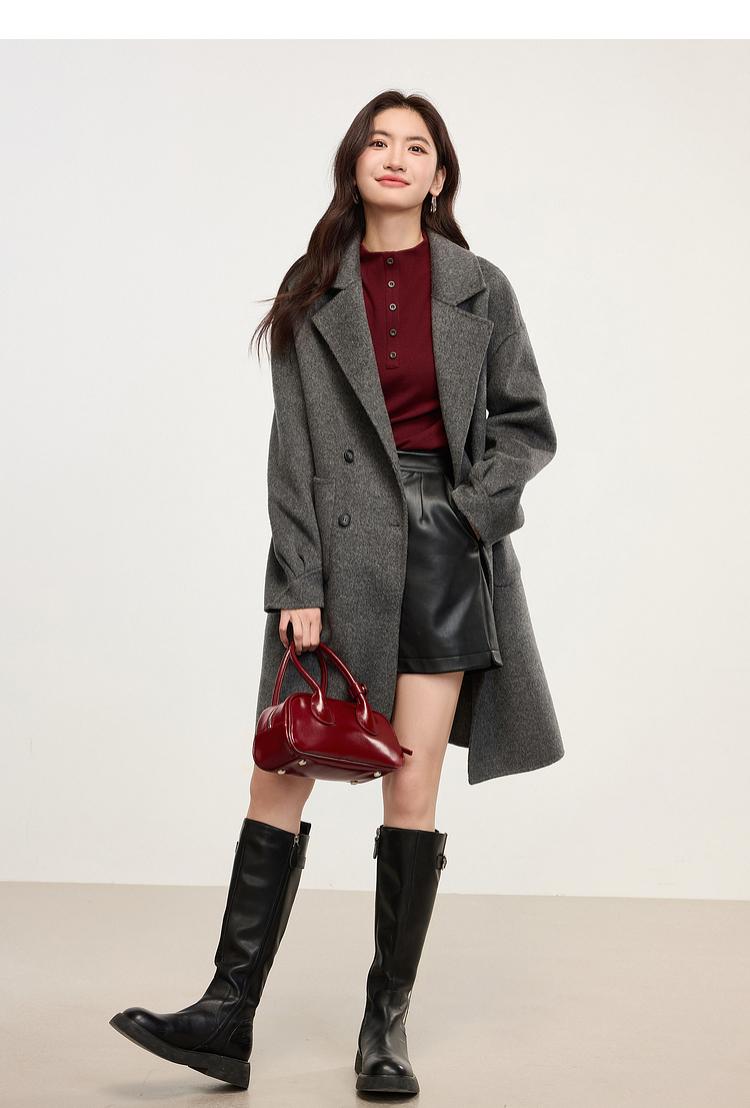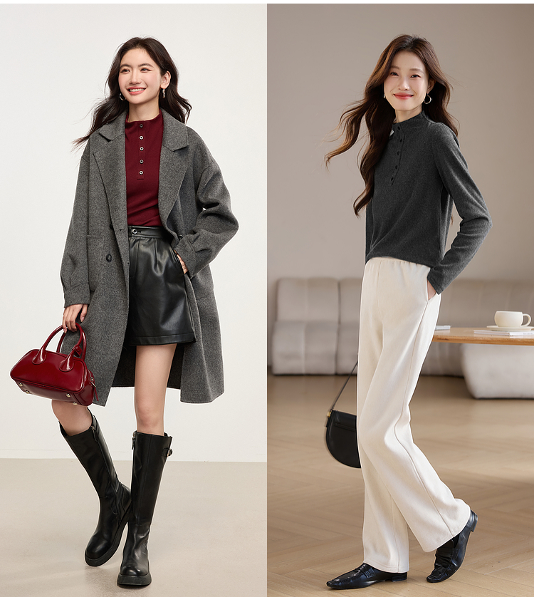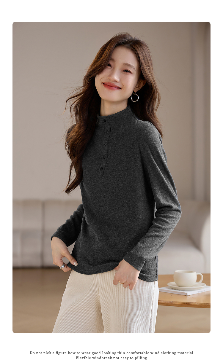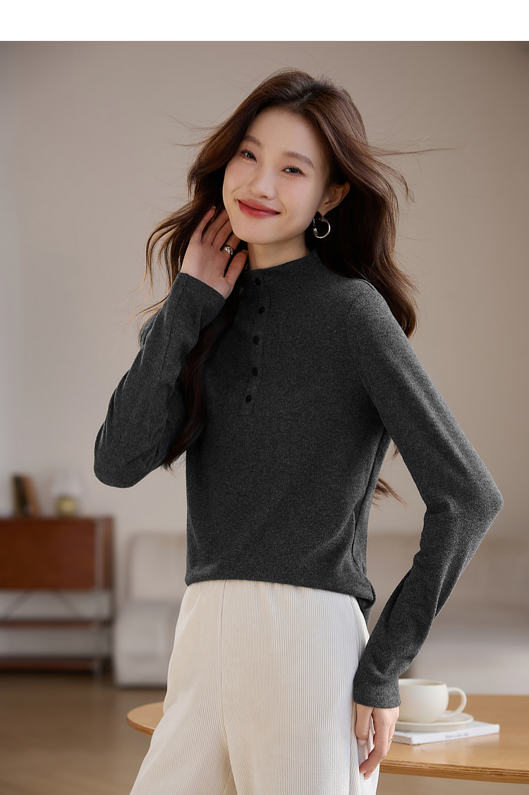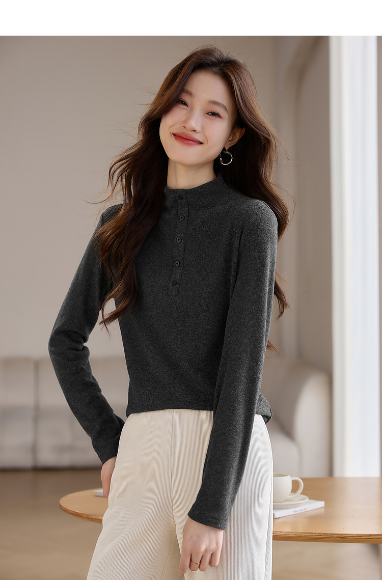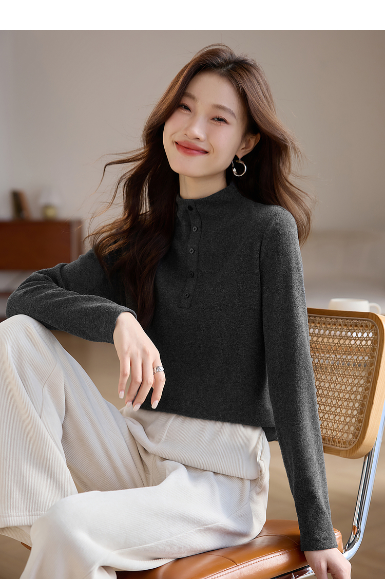 【年货节】熙世界2025秋冬新款双面绒针织上衣内搭长袖T恤打底衫安可拉红