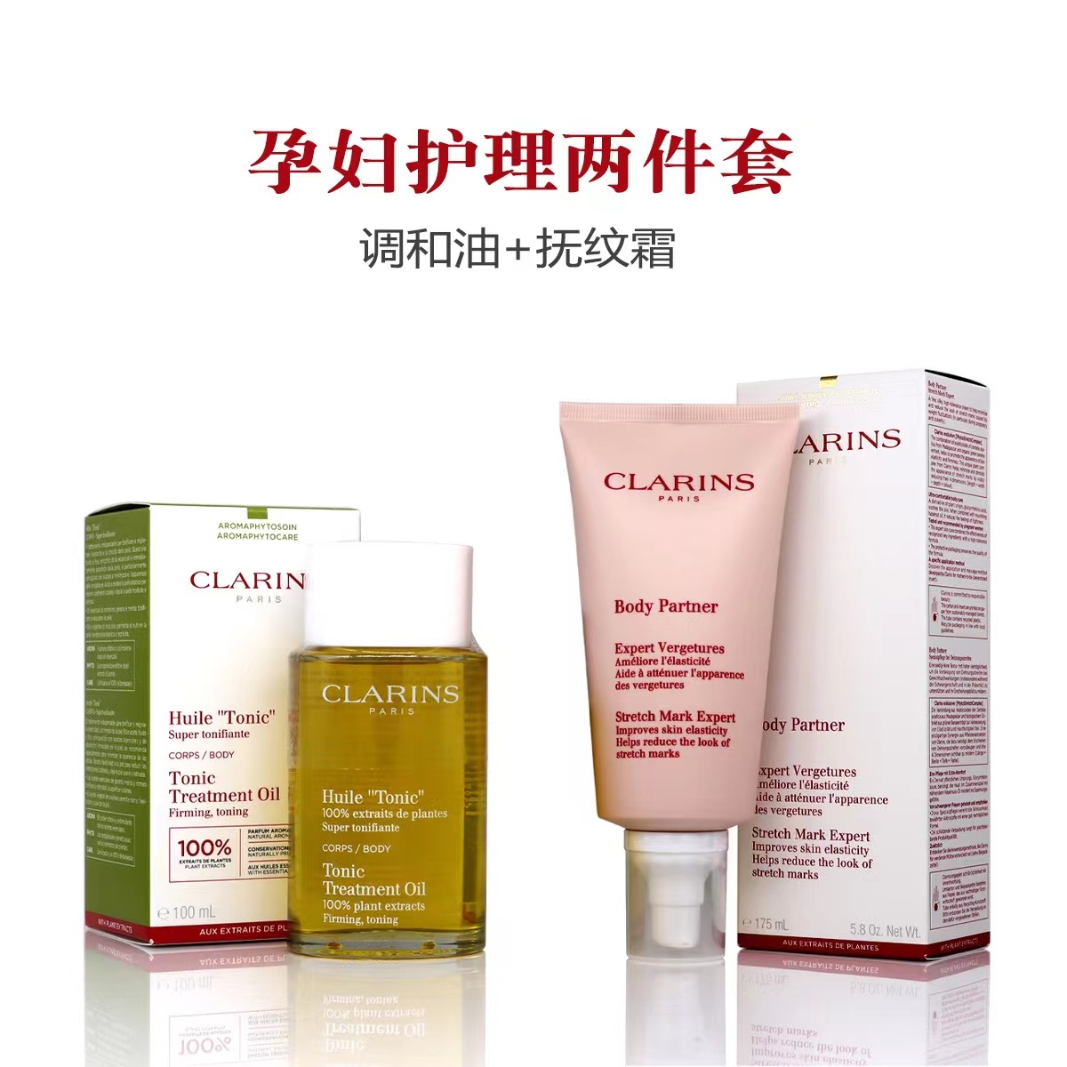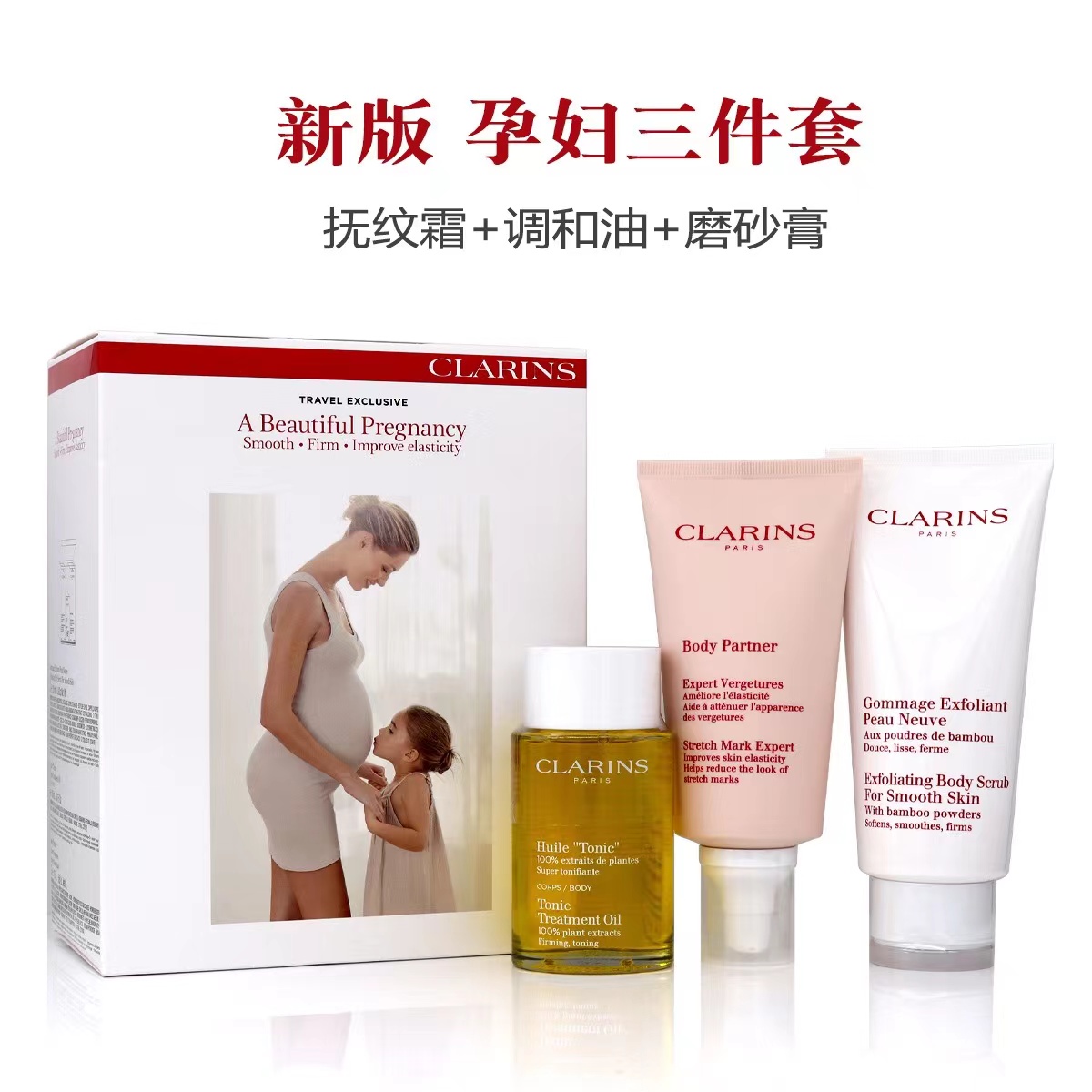 Clarins娇韵诗孕妇三件套-妊娠纹霜+抚纹油+磨砂膏-会员6折